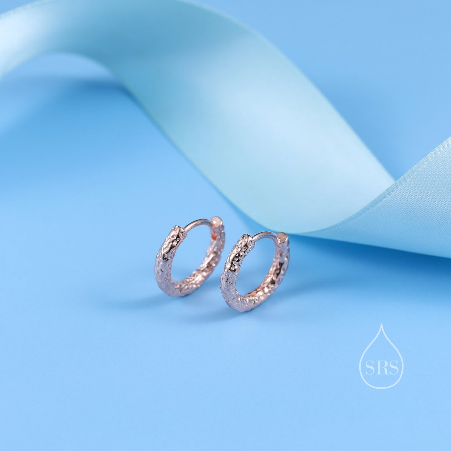 Foil Effect Hoop Earrings, Silver, Gold or Rose Gold, Foil Earrings, Organic Shape Hoops, Hammered Hoops