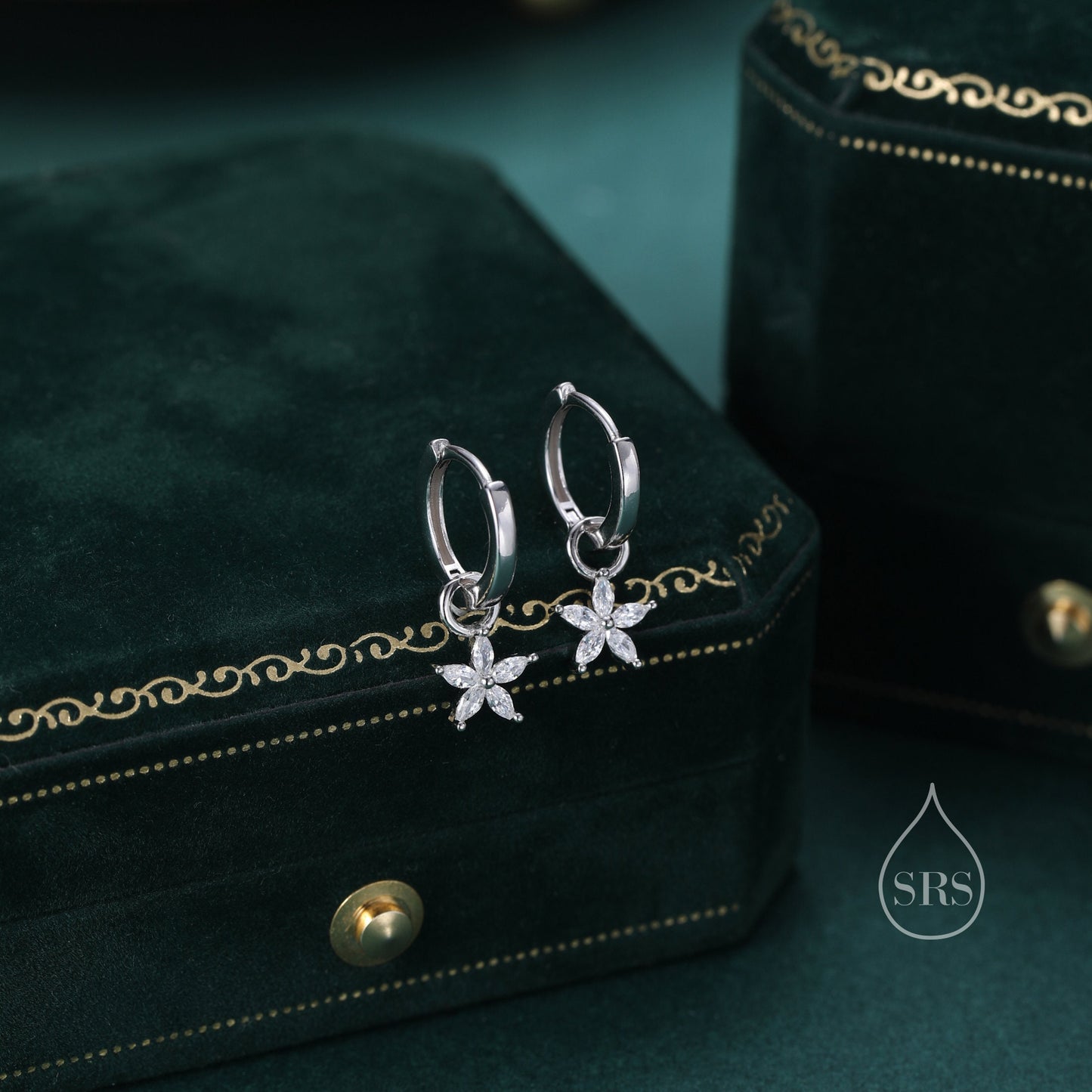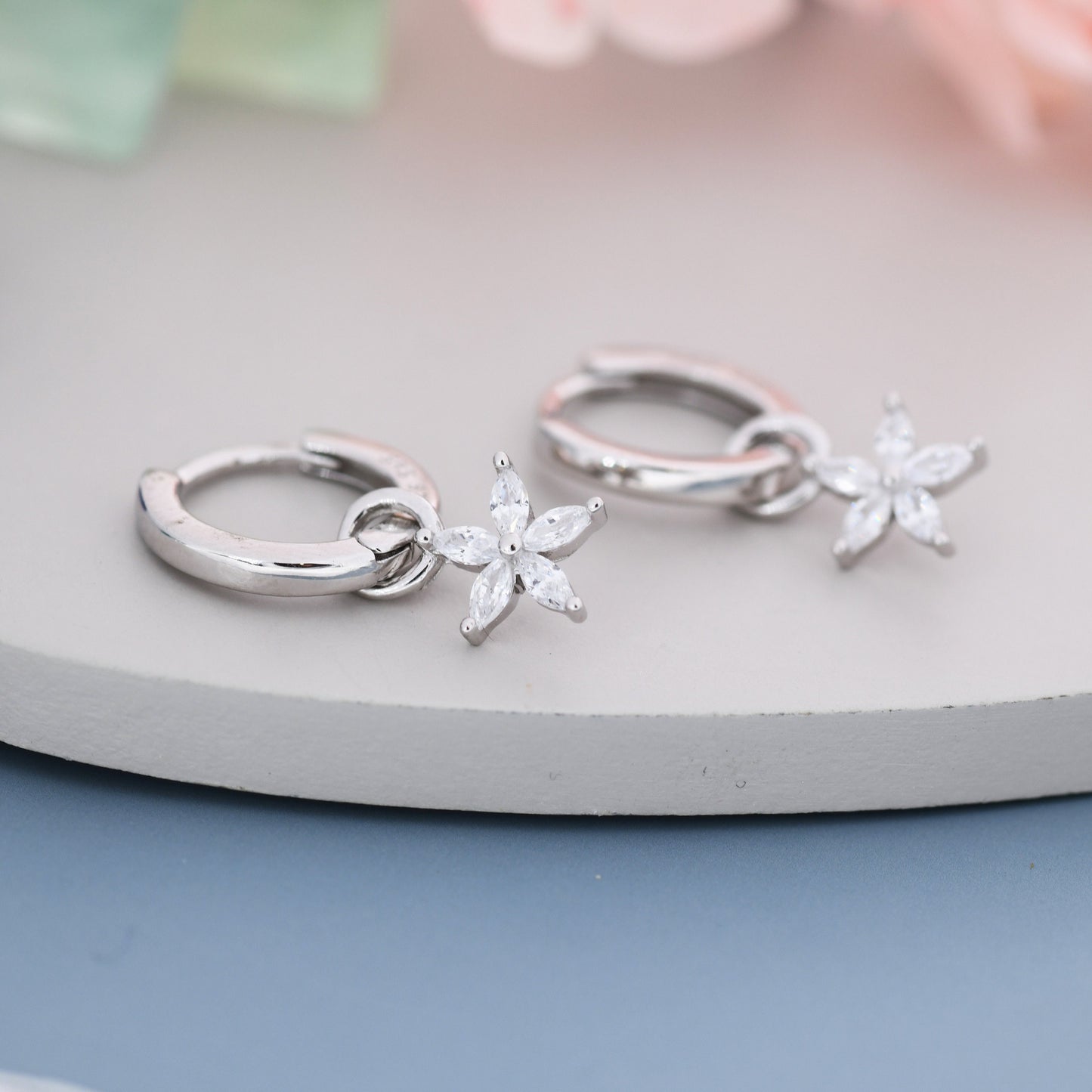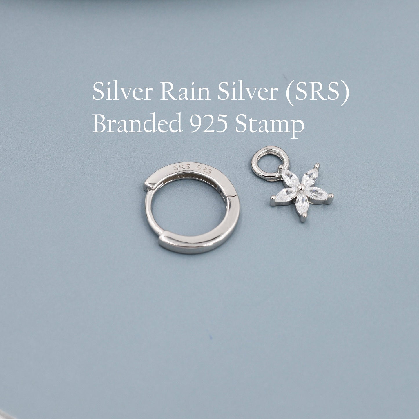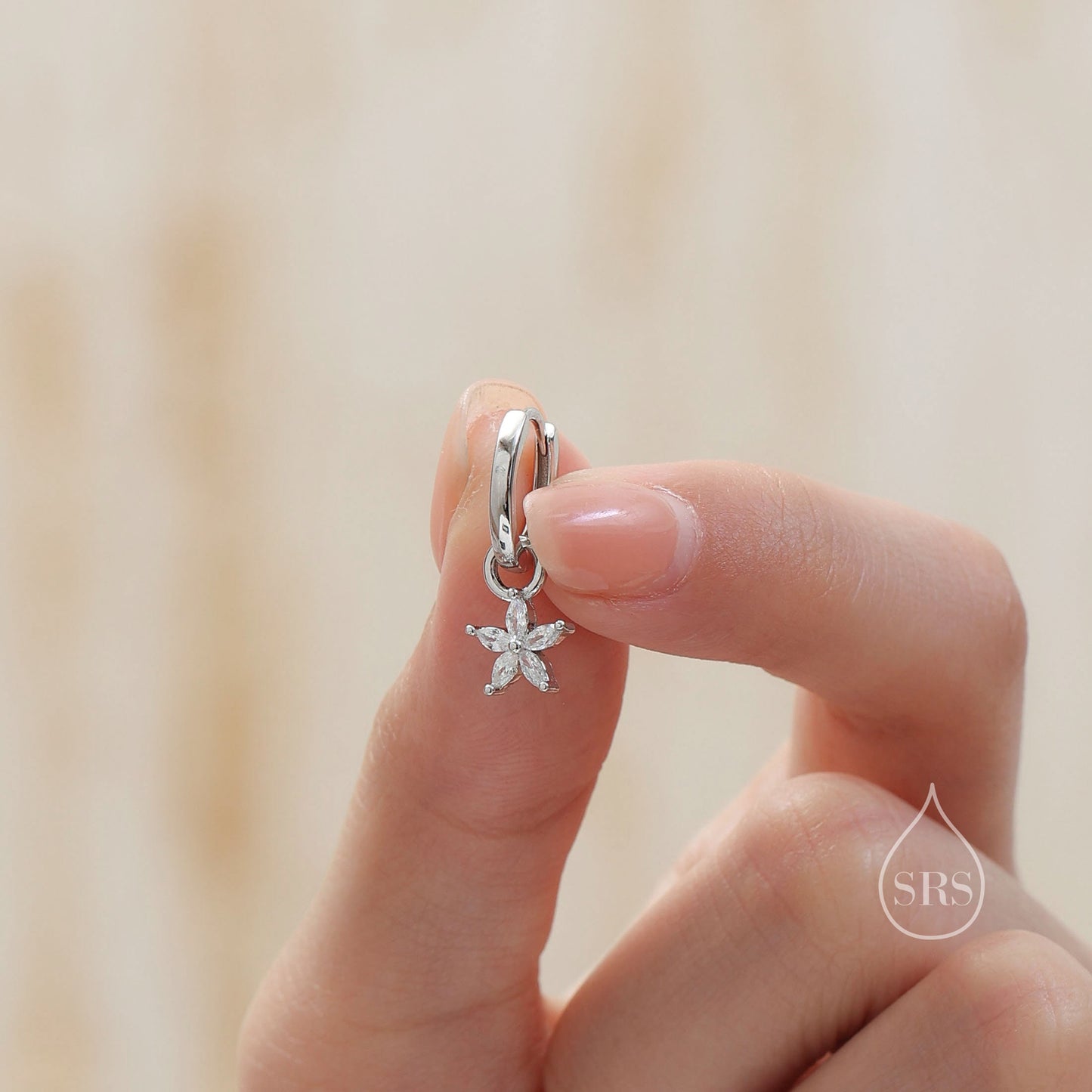 Forget me not Flower CZ Huggie Hoop in Sterling Silver, Silver or Gold, Minimalist Simple Hoop Earrings, Detachable and Interchangeable