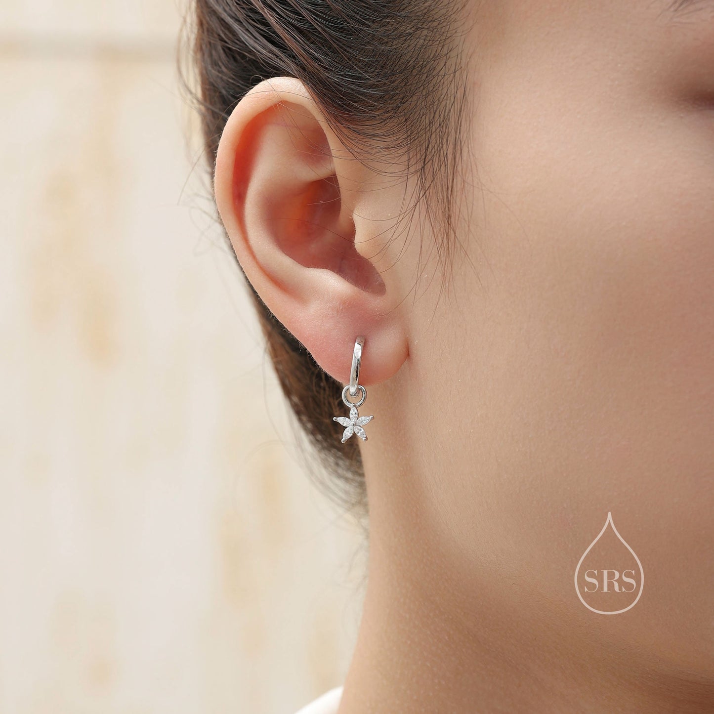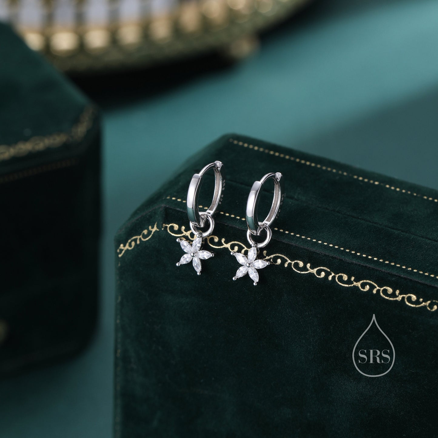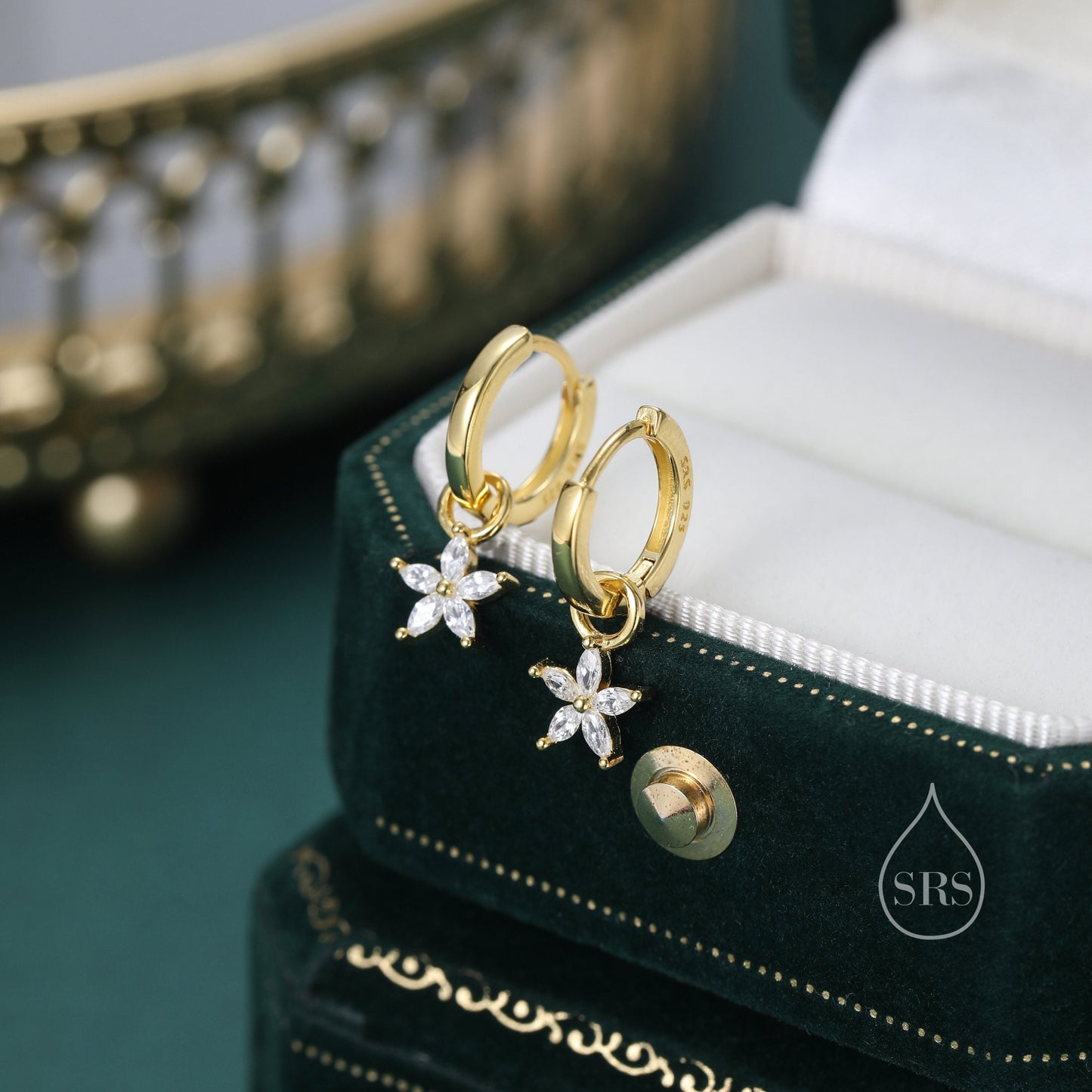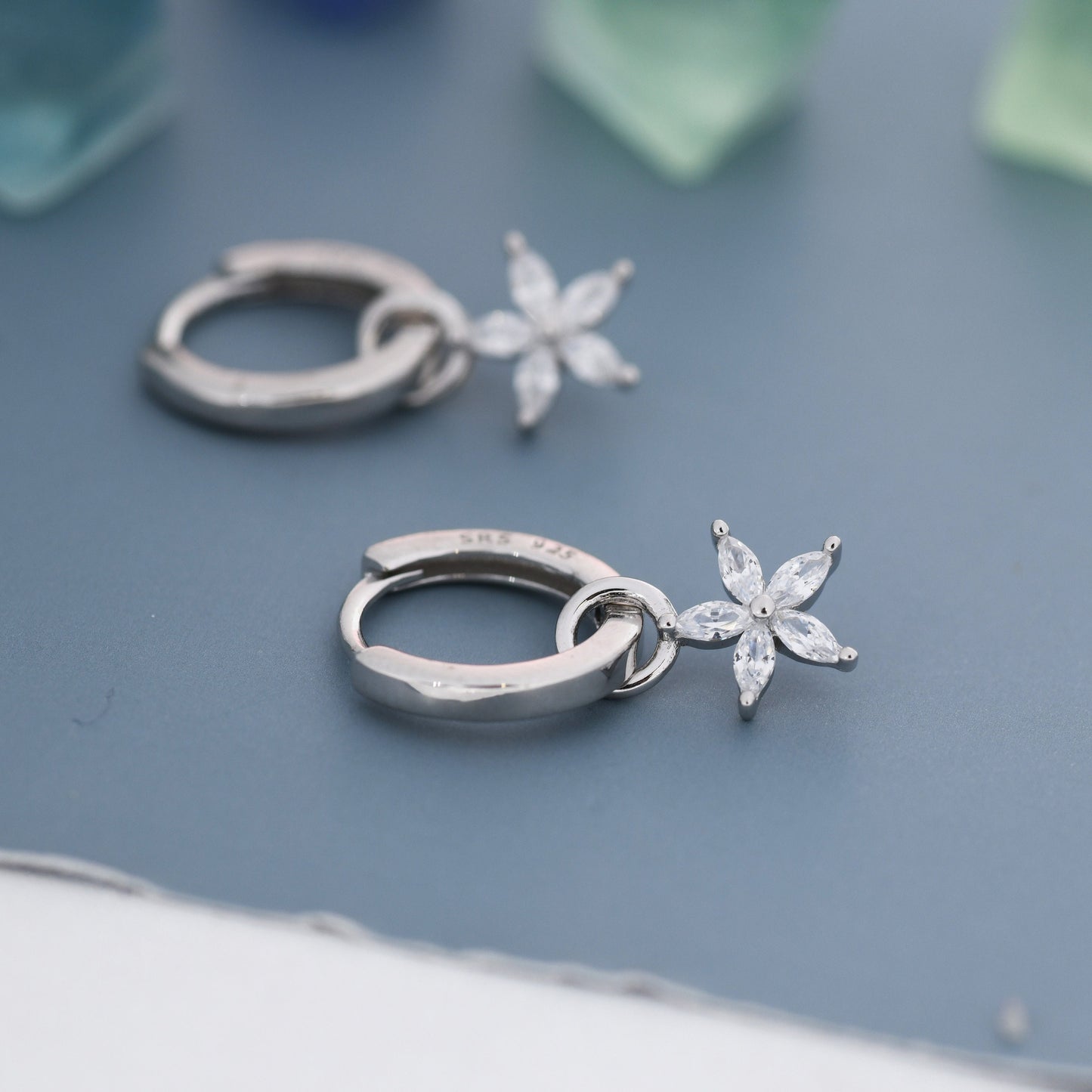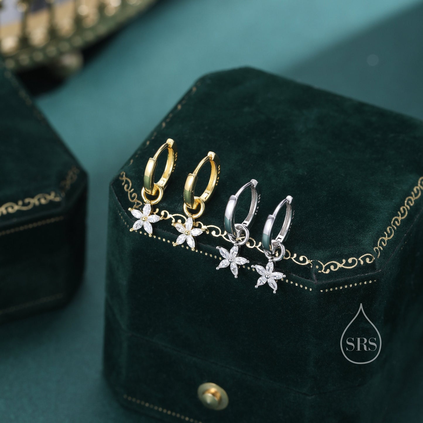 Forget me not Flower CZ Huggie Hoop in Sterling Silver, Silver or Gold, Minimalist Simple Hoop Earrings, Detachable and Interchangeable