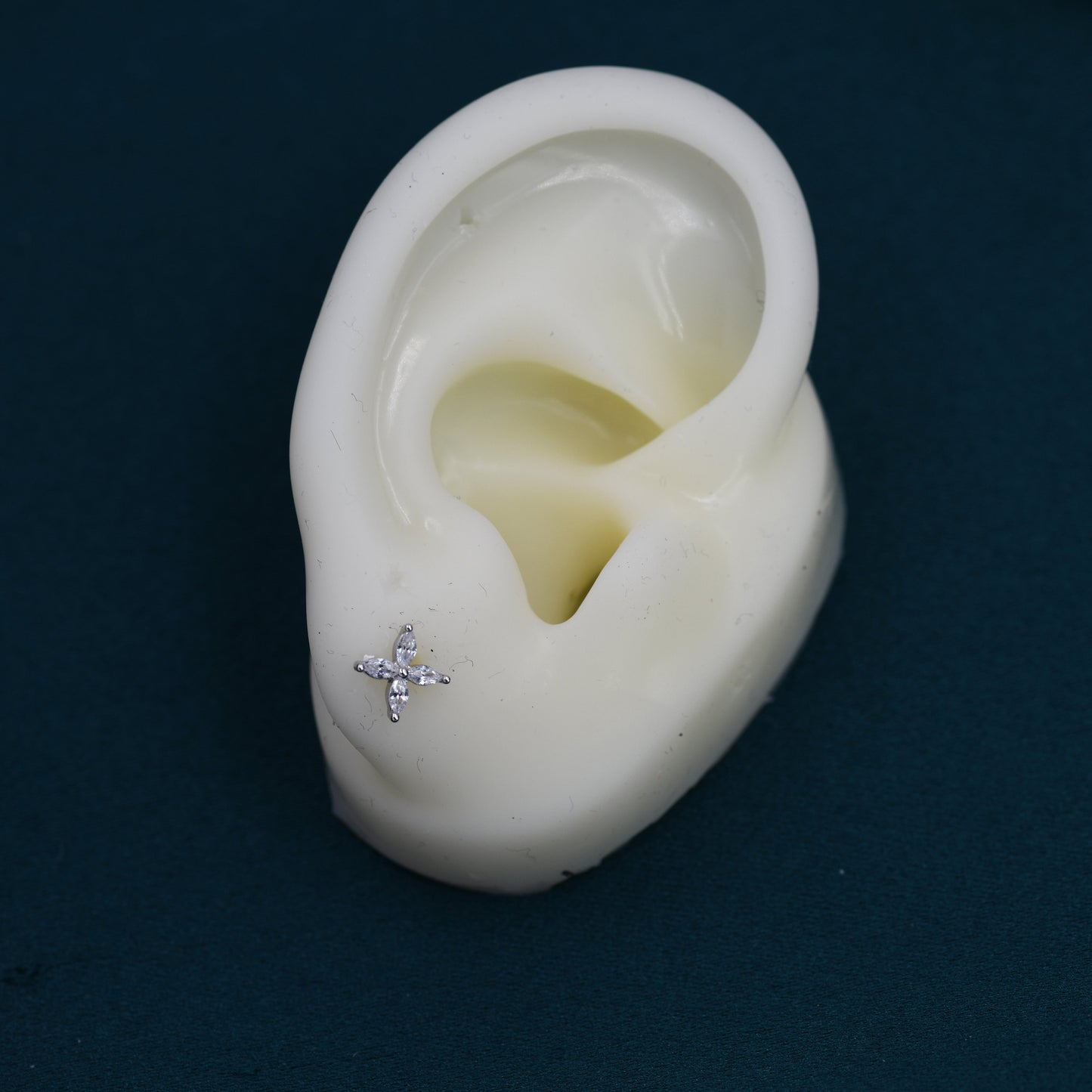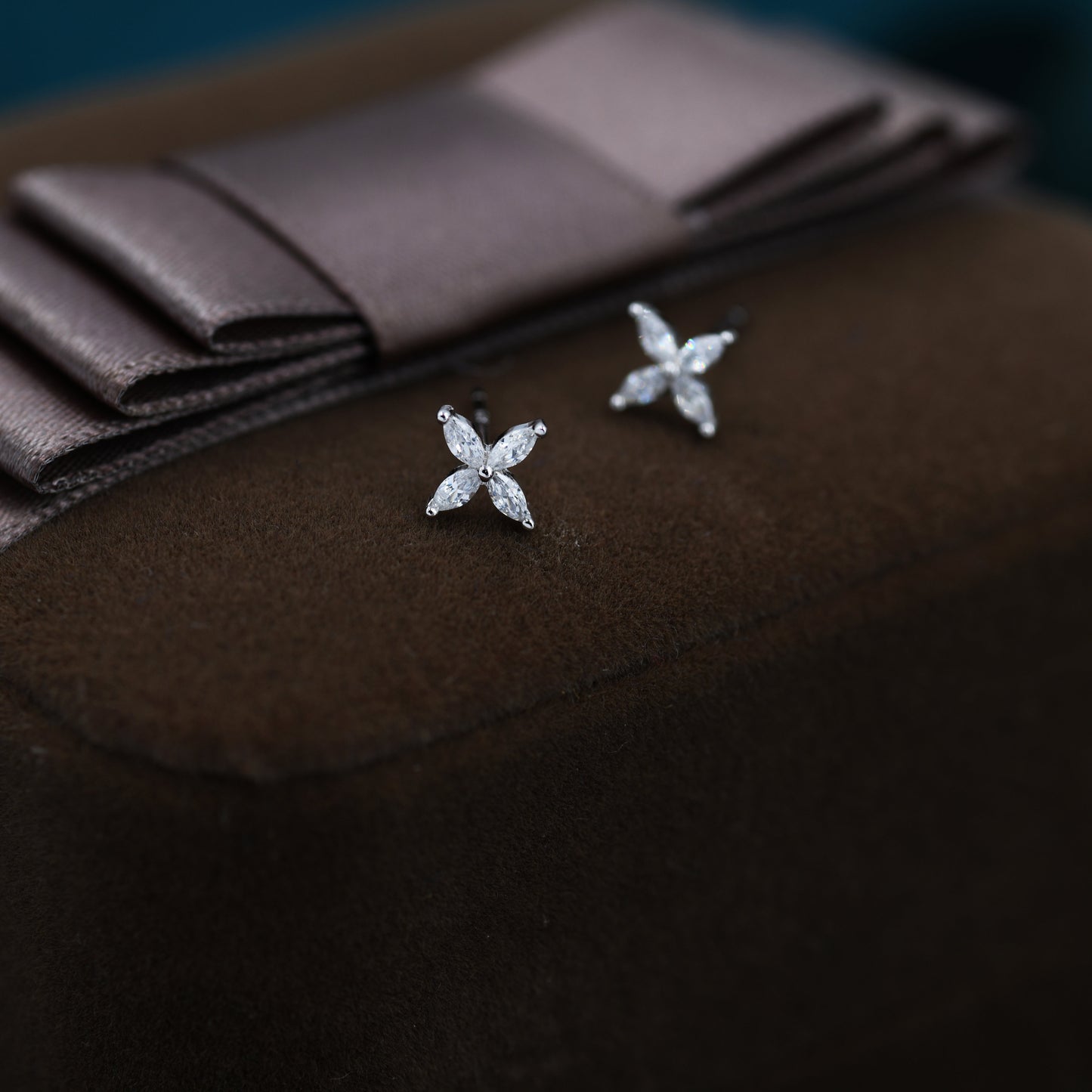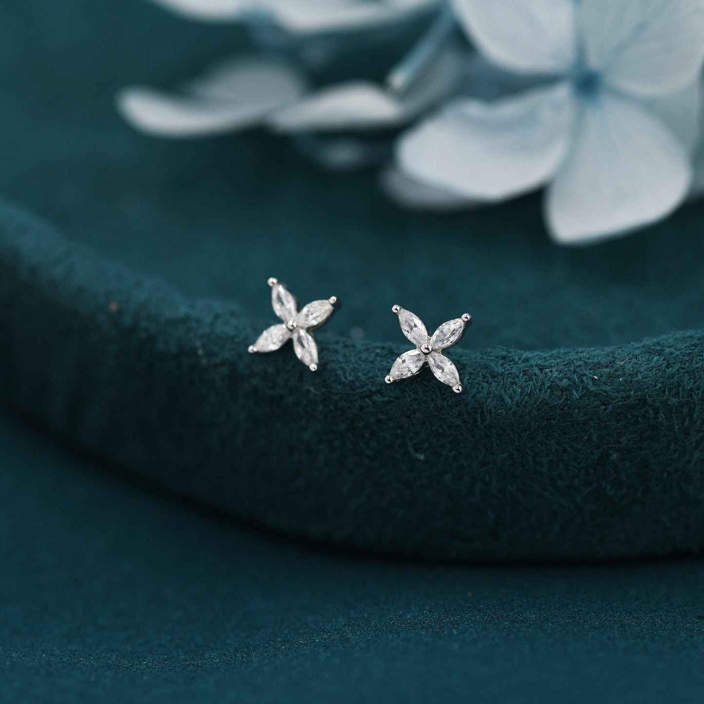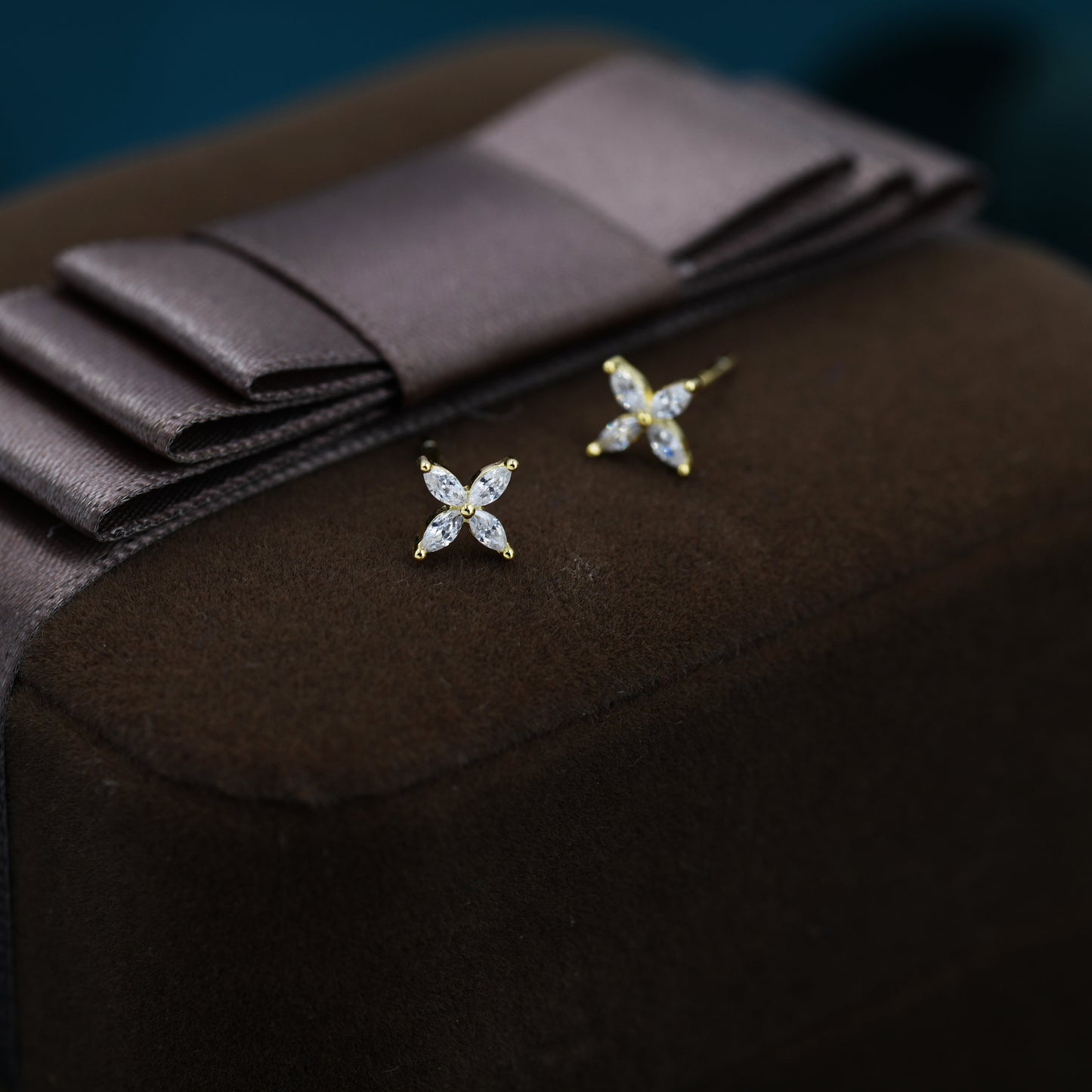 Four Marquise Flower Stud Earrings in Sterling Silver, CZ Flower Earrings, Silver, Gold or Rose Gold, Two Sizes Available