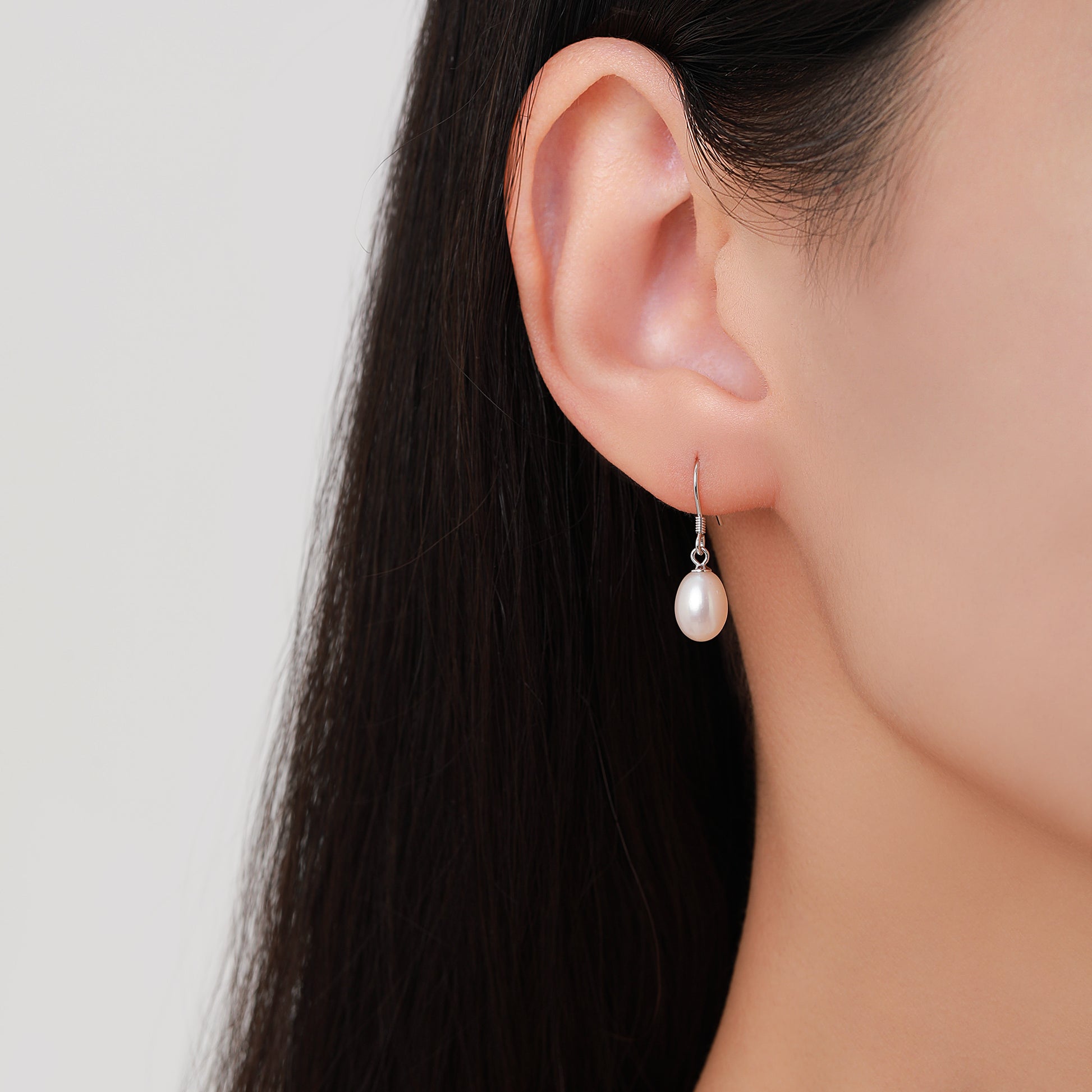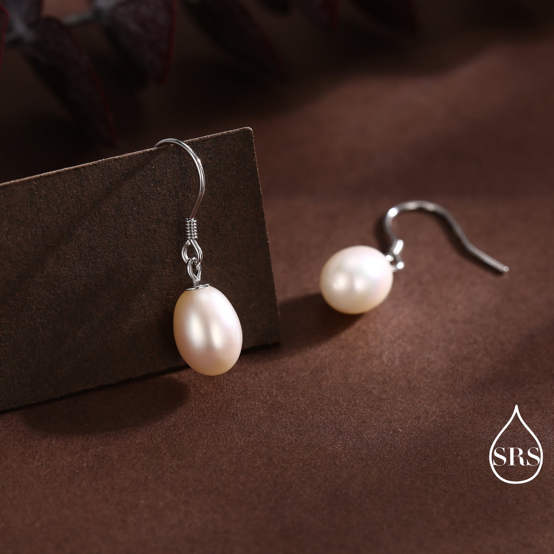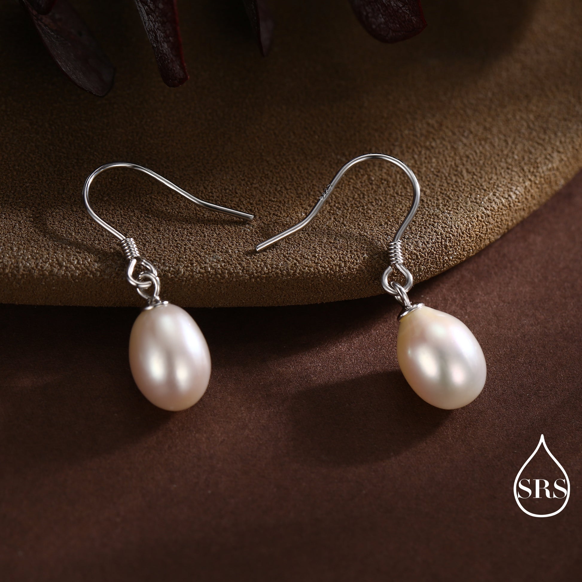Freshwater Pearl Drop Hook Earrings in Sterling Silver, Genuine Oval Pearls, Real Pearl Drop Earrings
