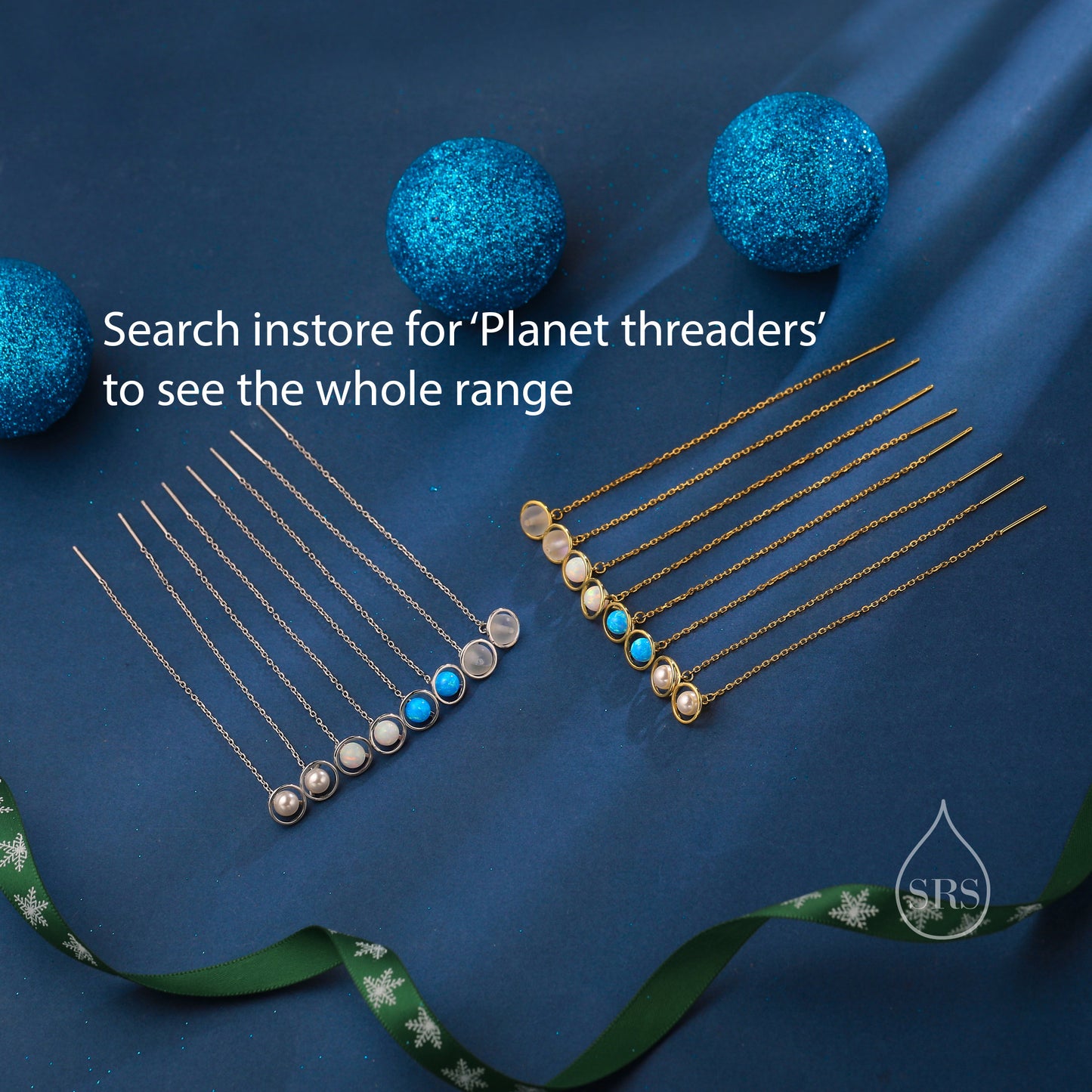 Frosted Moonstone Planet Threader Earrings in Sterling Silver, Silver or Gold, Lab Moonstone Bead Planet Ear Threaders, 9cm long threaders