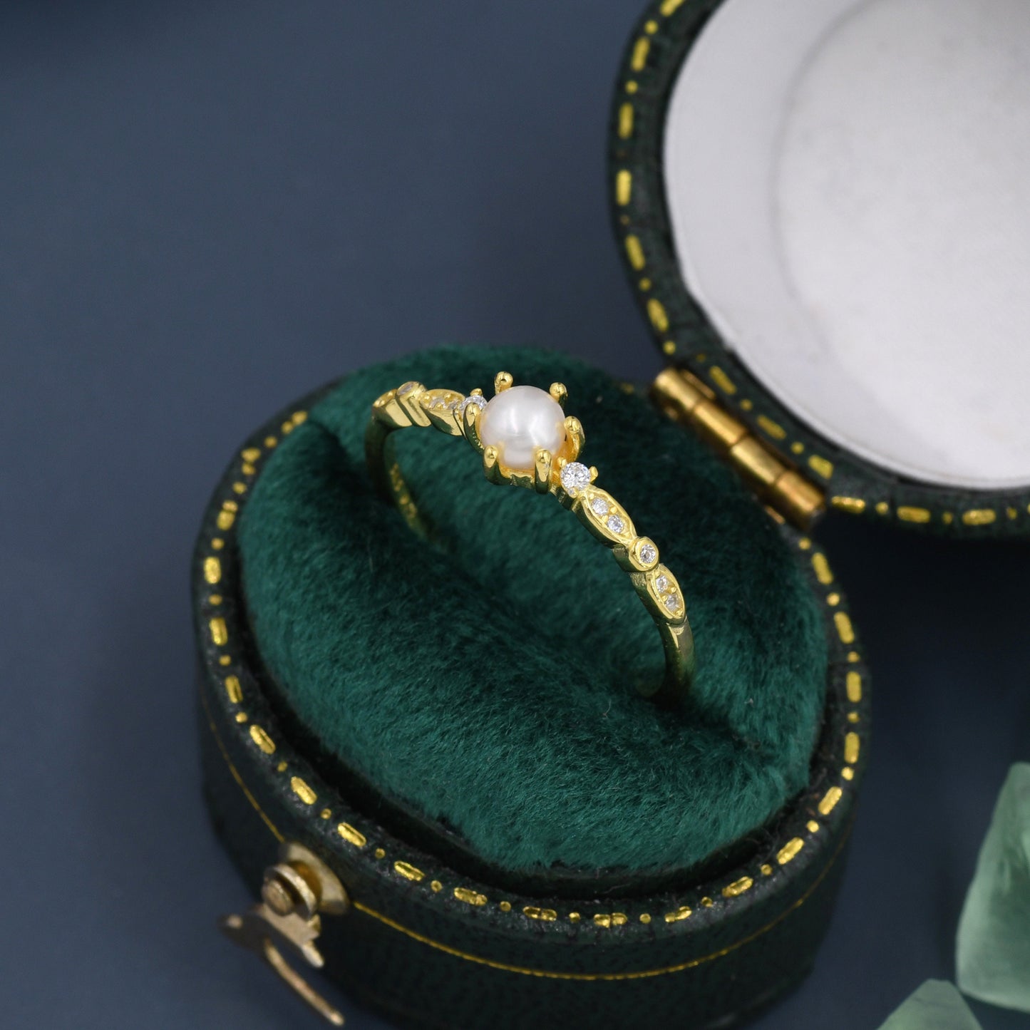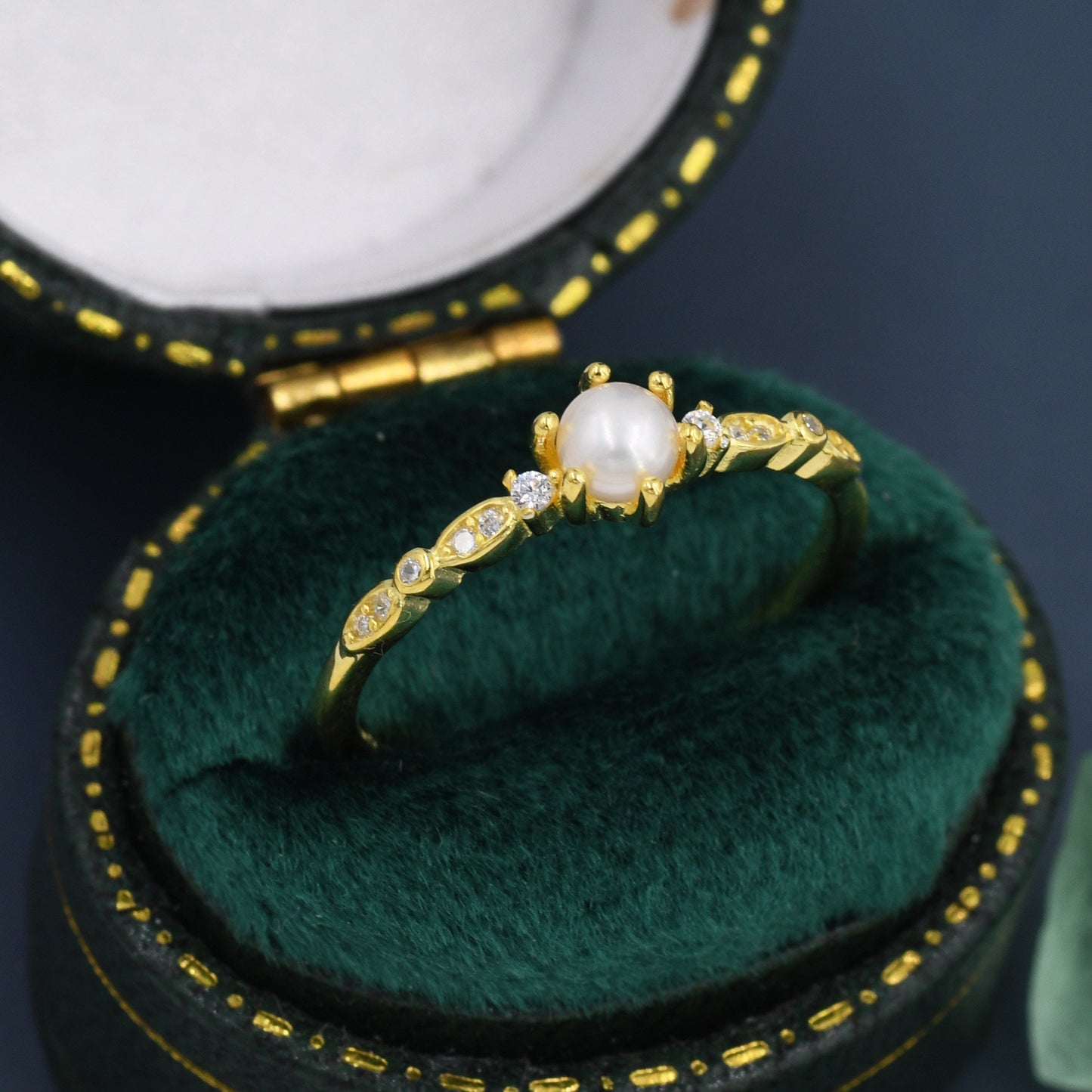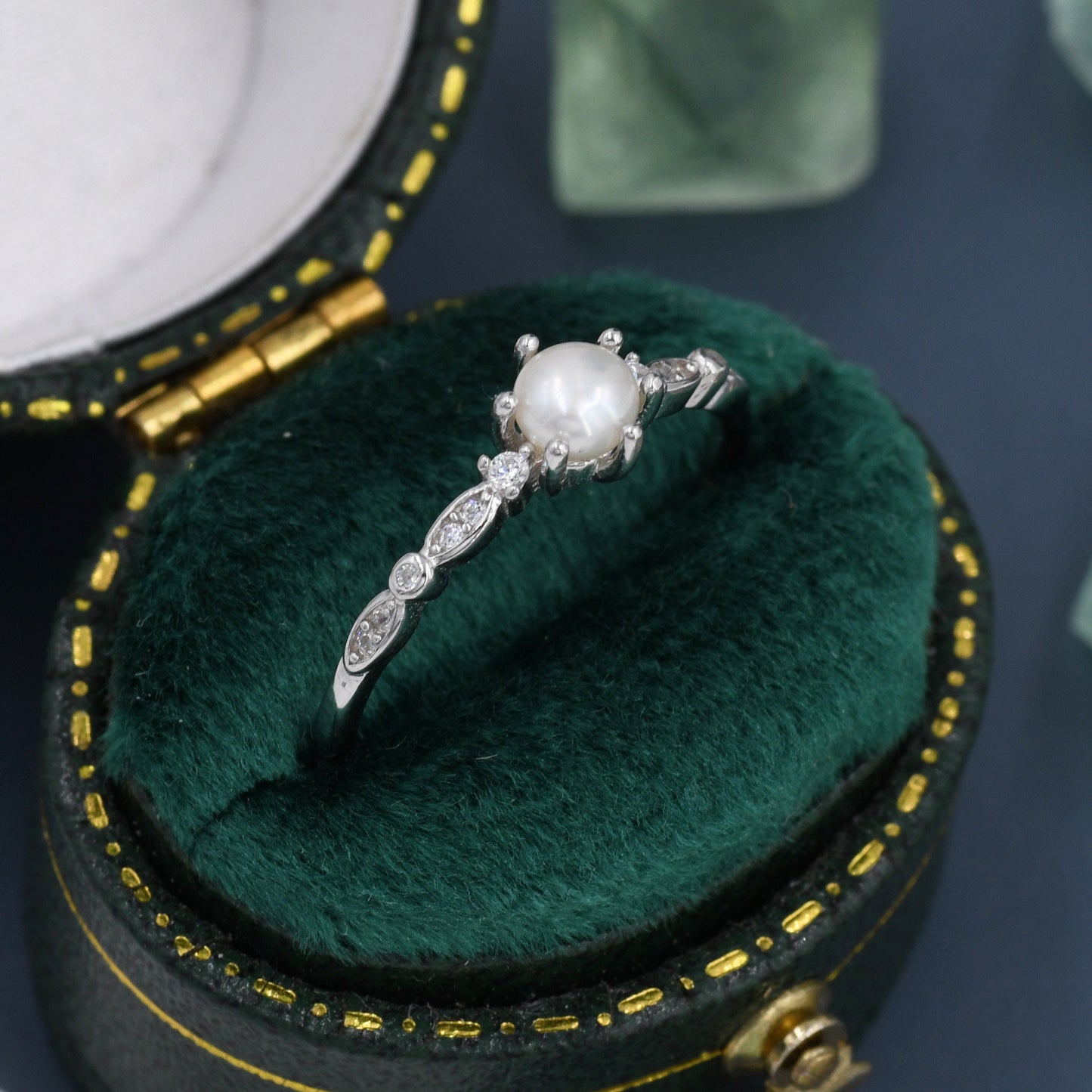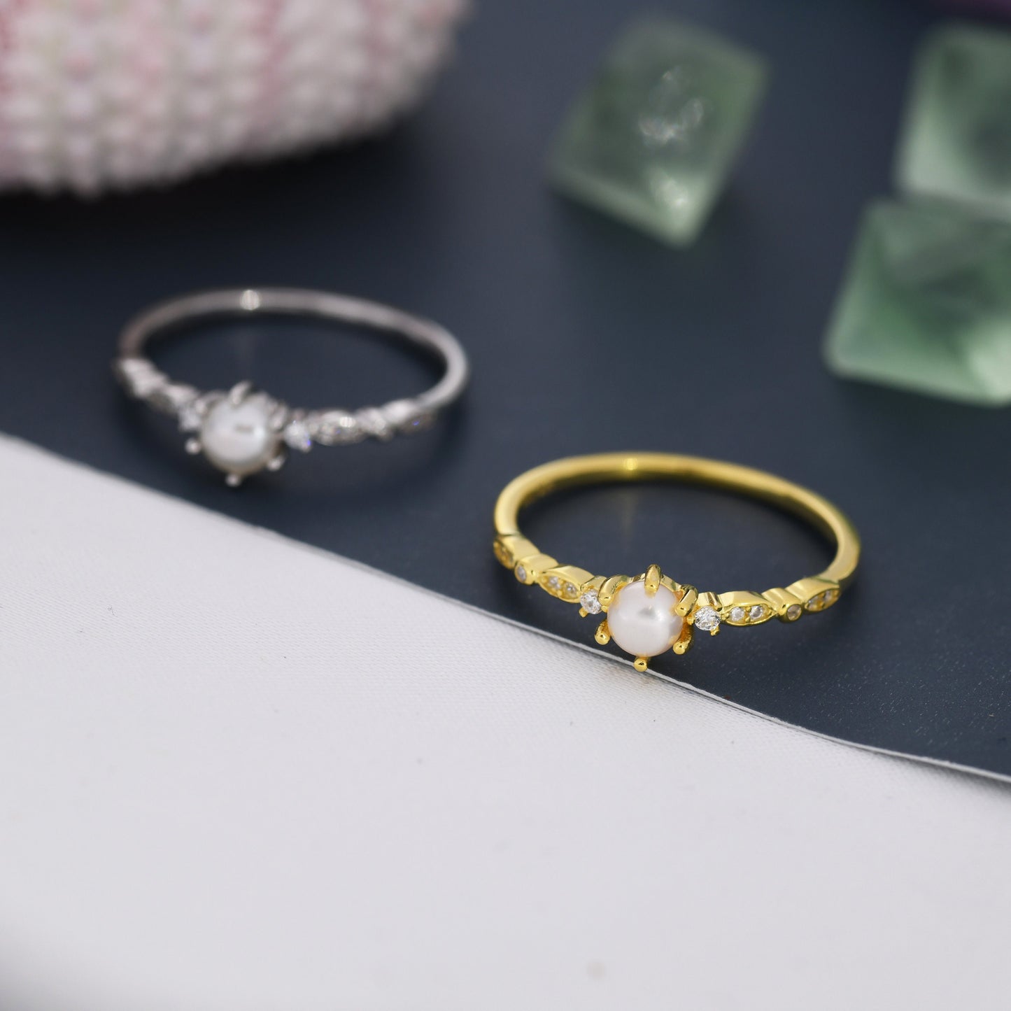 Genuine Freshwater Pearl and CZ Ring in Sterling Silver, Silver, Gold or Rose Gold, Natural Pearl Ring, US 5 - 8, Tiny Pearl Ring,