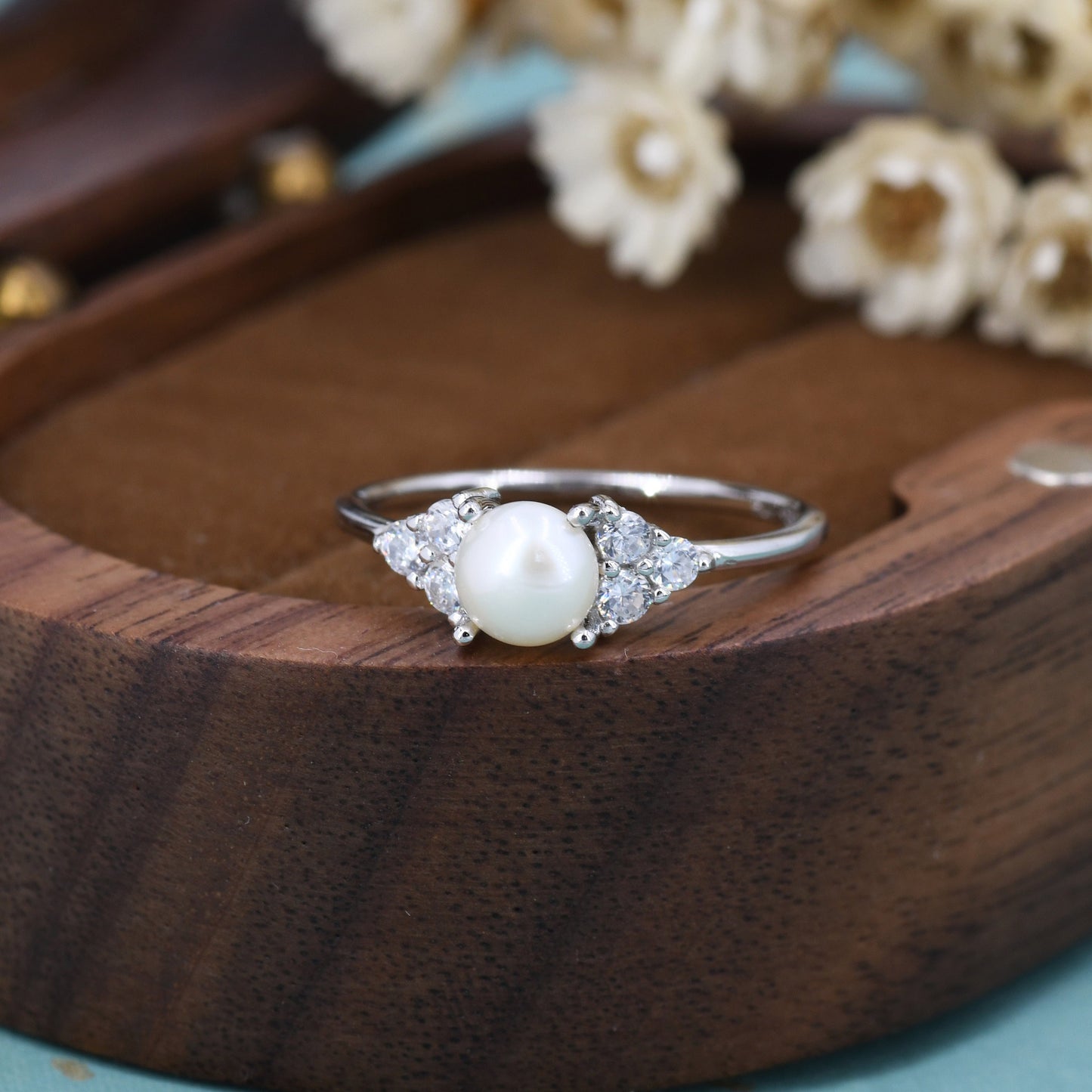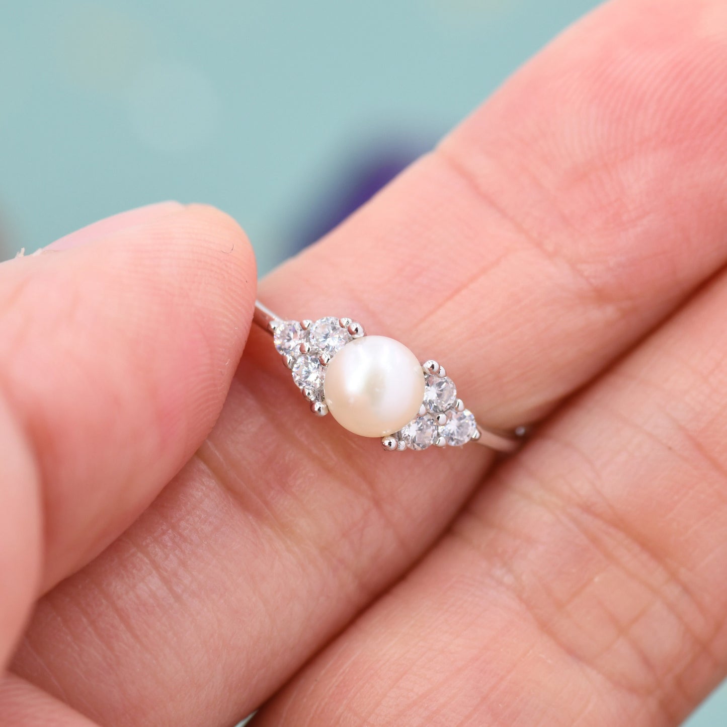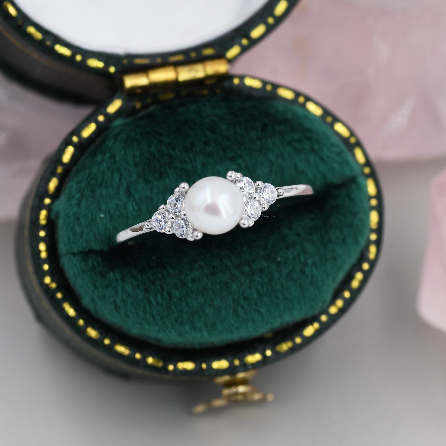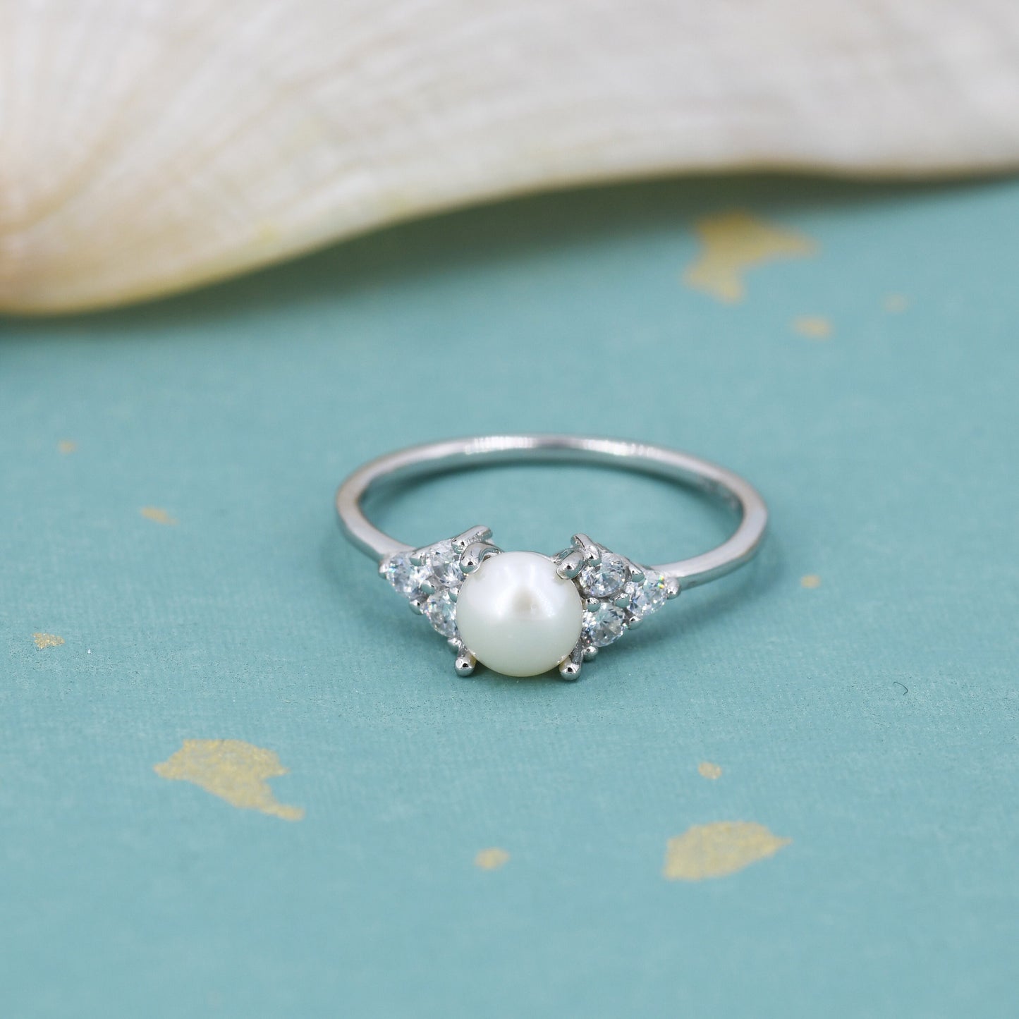 Genuine Freshwater Pearl and CZ Ring in Sterling Silver, Silver, Gold or Rose Gold, Natural Pearl Ring, US 5 - 8