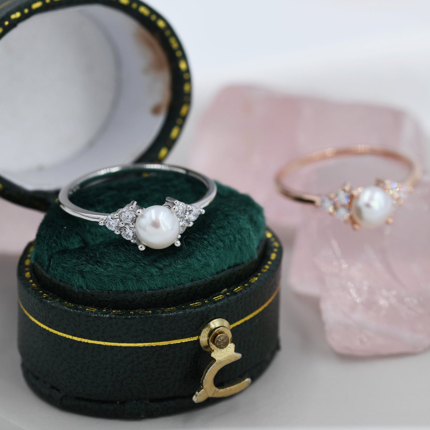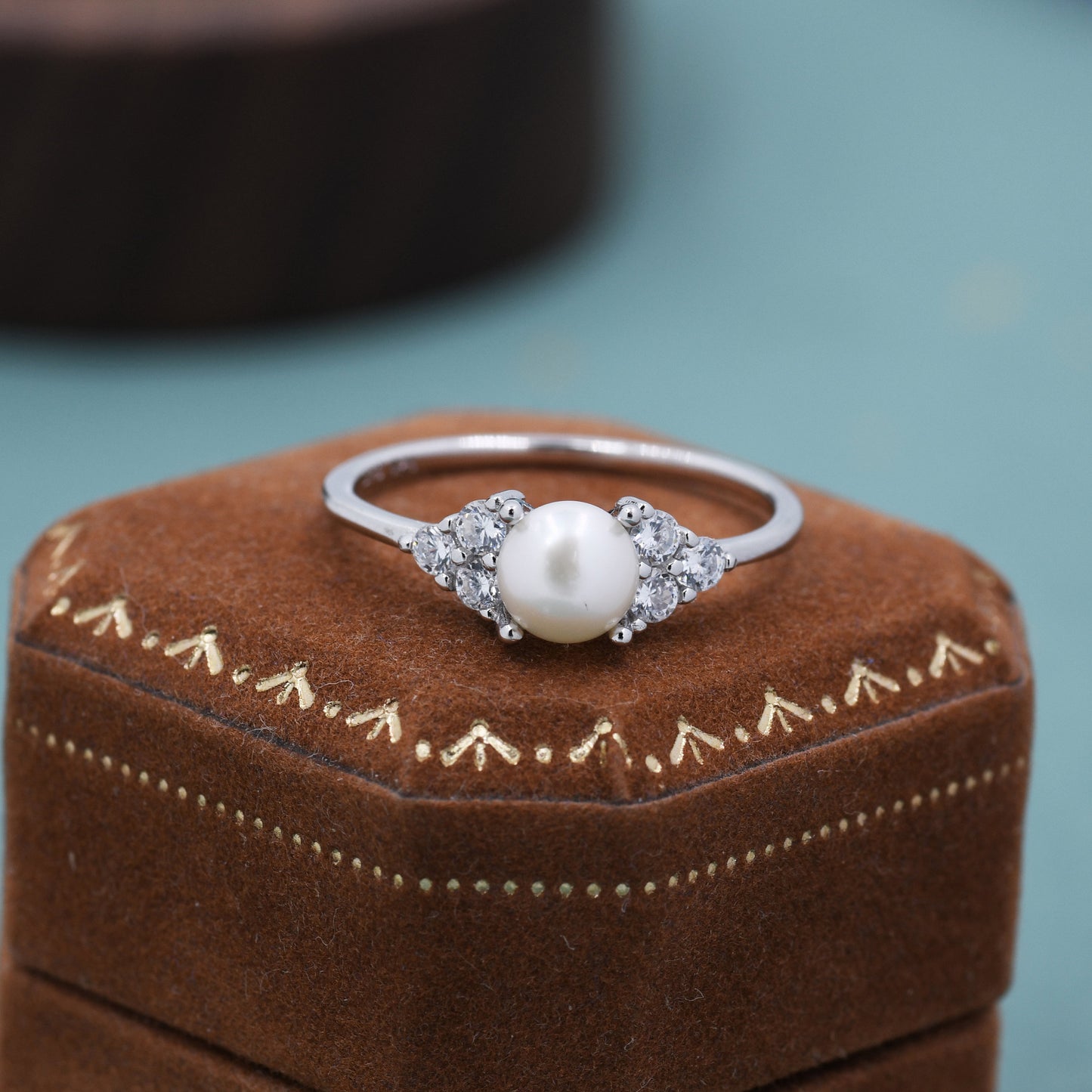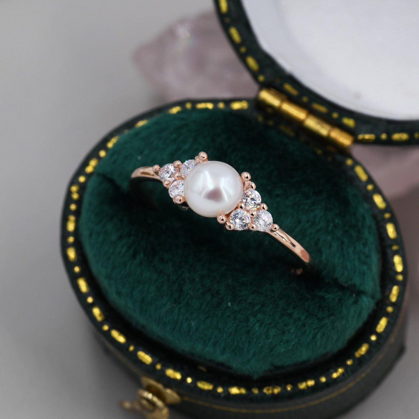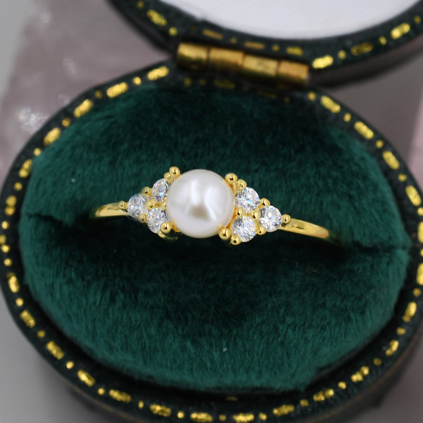 Genuine Freshwater Pearl and CZ Ring in Sterling Silver, Silver, Gold or Rose Gold, Natural Pearl Ring, US 5 - 8