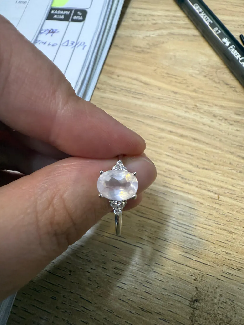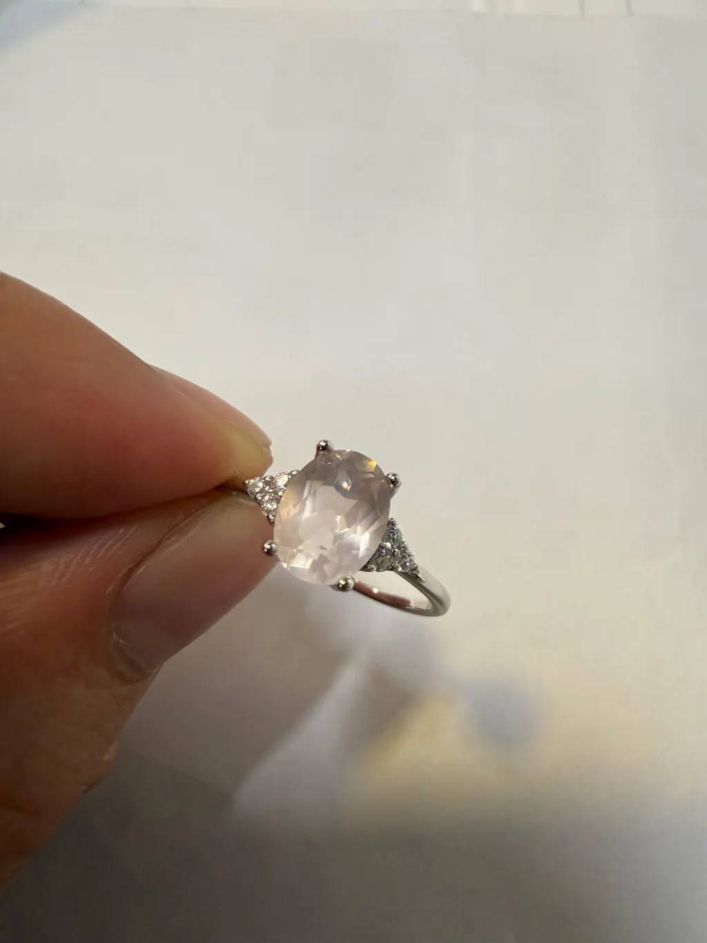 Genuine Oval Rose Quartz Ring in Sterling Silver, Natural Rose Quartz Ring, Three CZ, Pink Quartz Crystal, Vintage Inspired Design, US 5 - 8