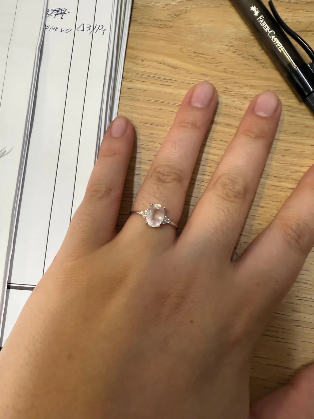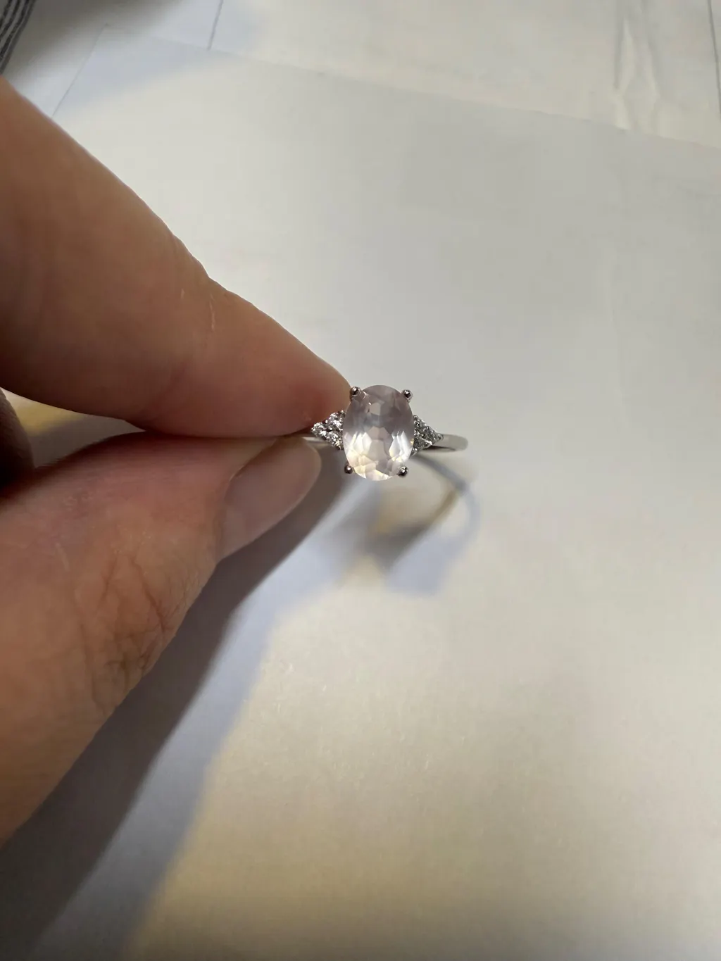 Band is 1.2mm thick. Stonel is 6 x 8mm. Genuine rose quartz, natural and untreated!