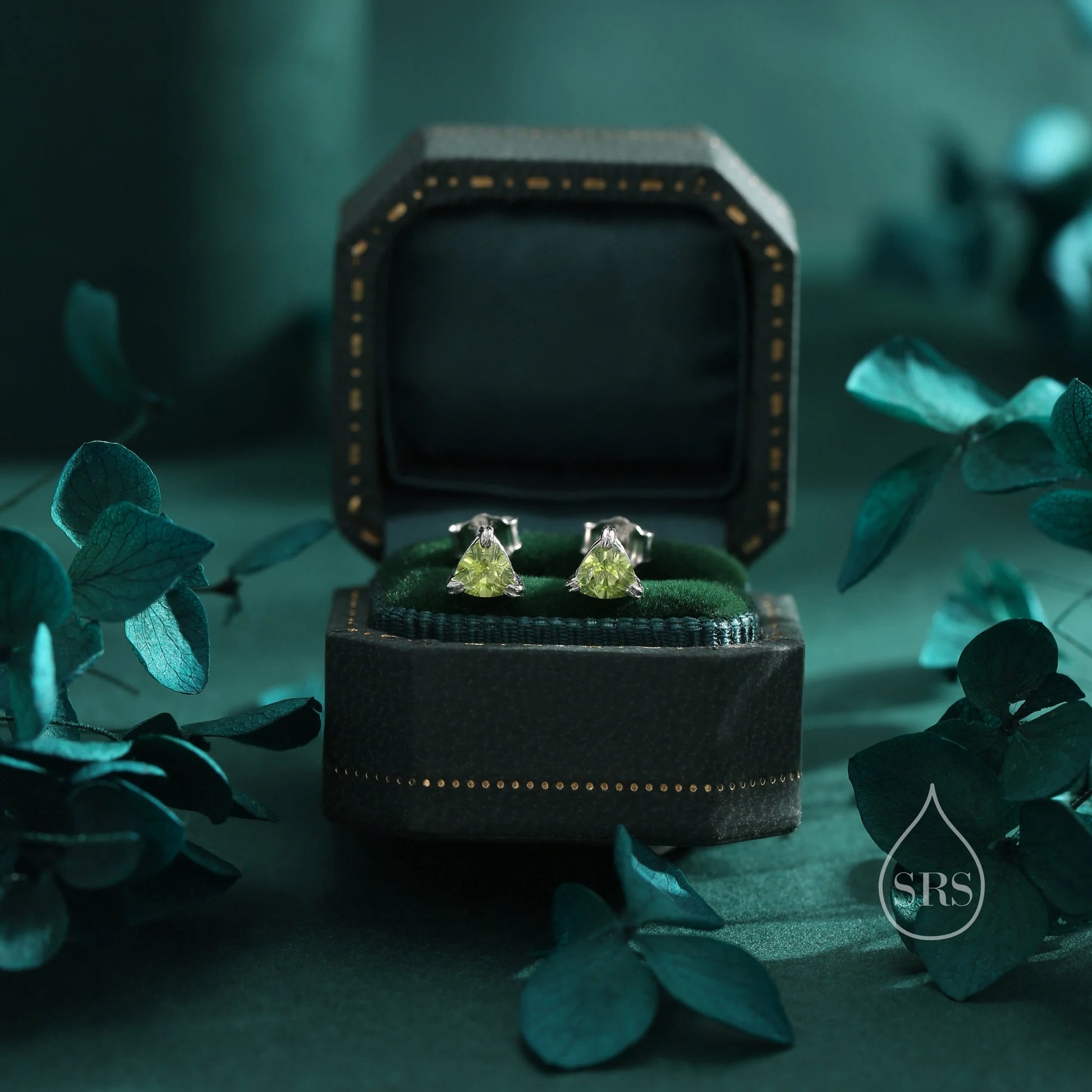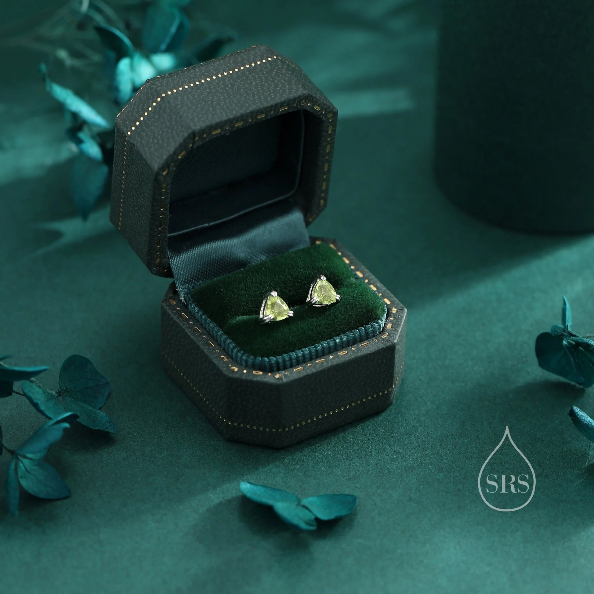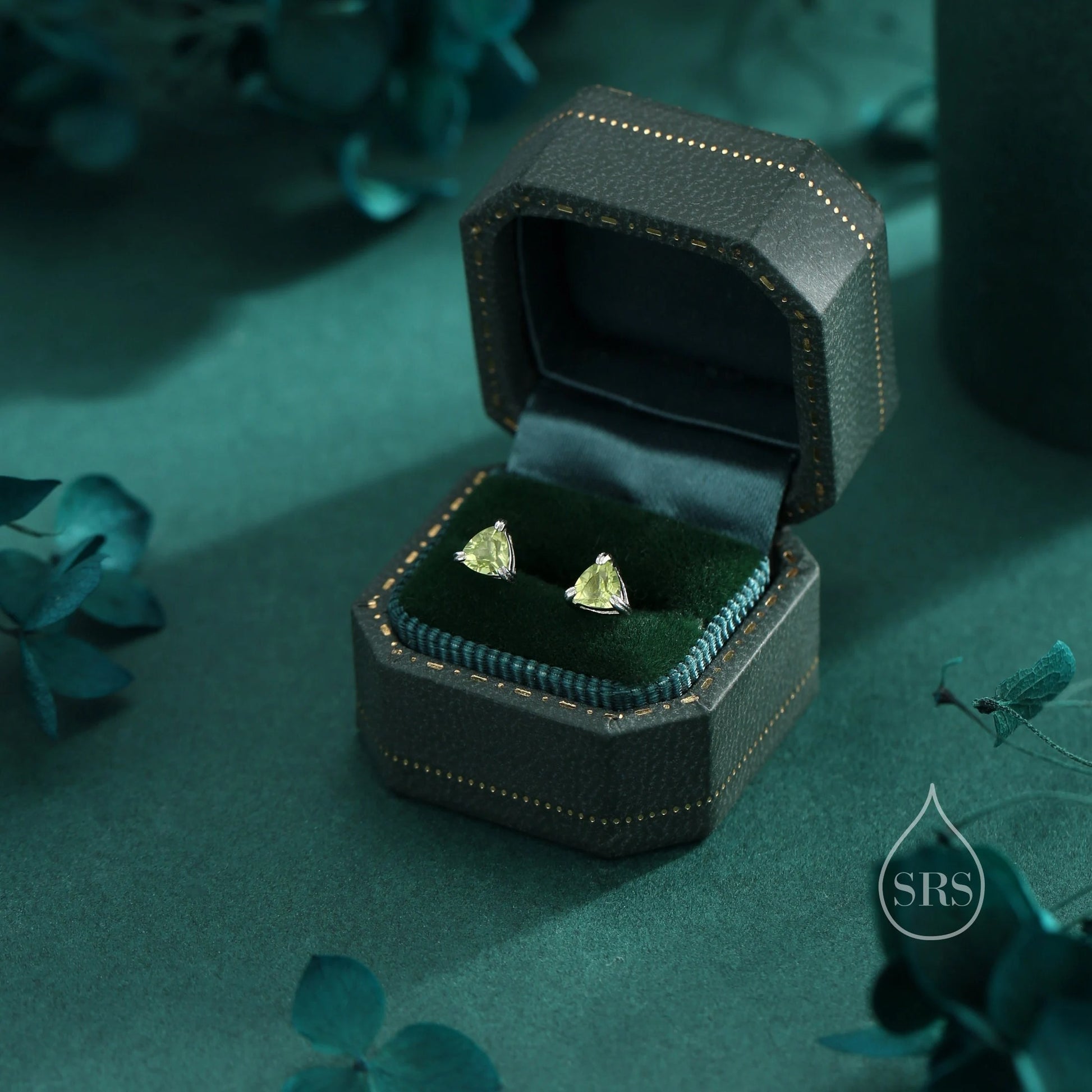 Genuine Peridot Stud Earrings in Sterling Silver, Silver or Gold, Trillion Cut Natural Green Peridot Earrings, Double Pronged
