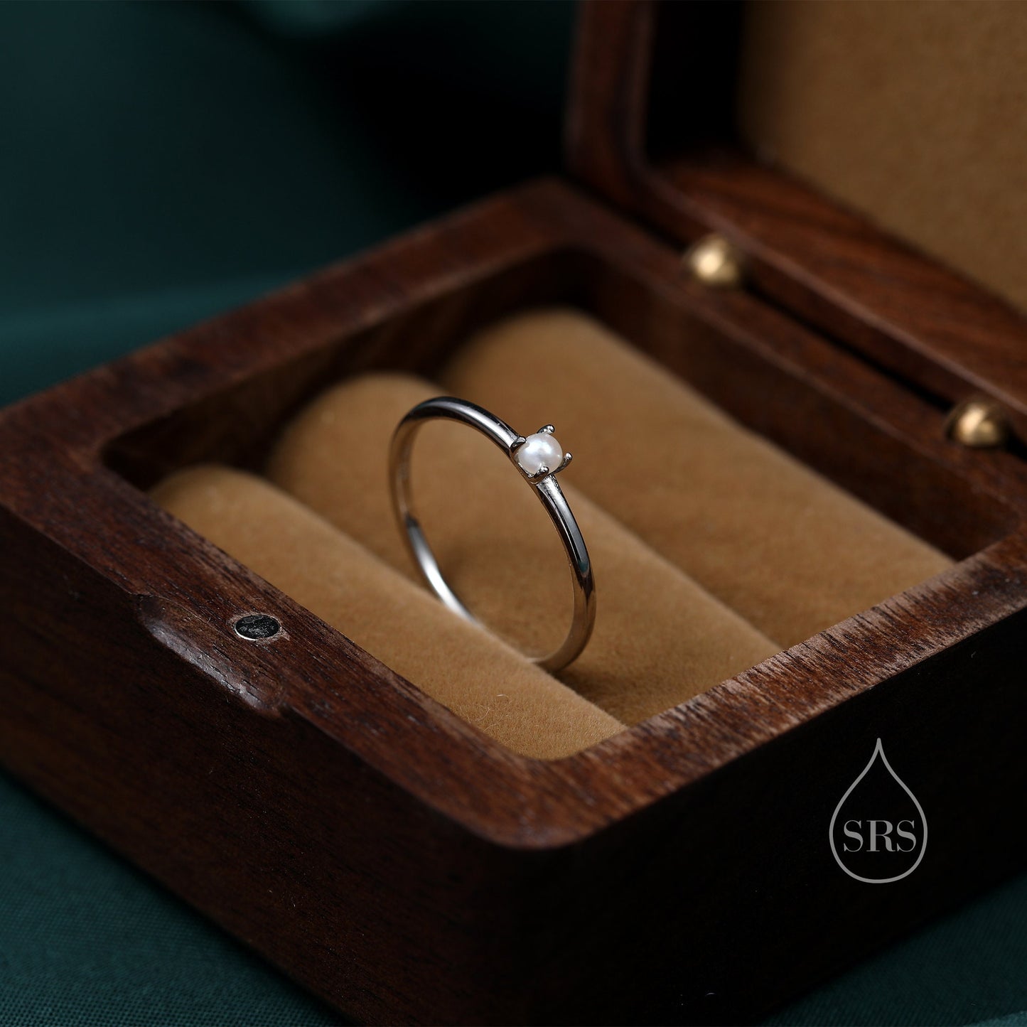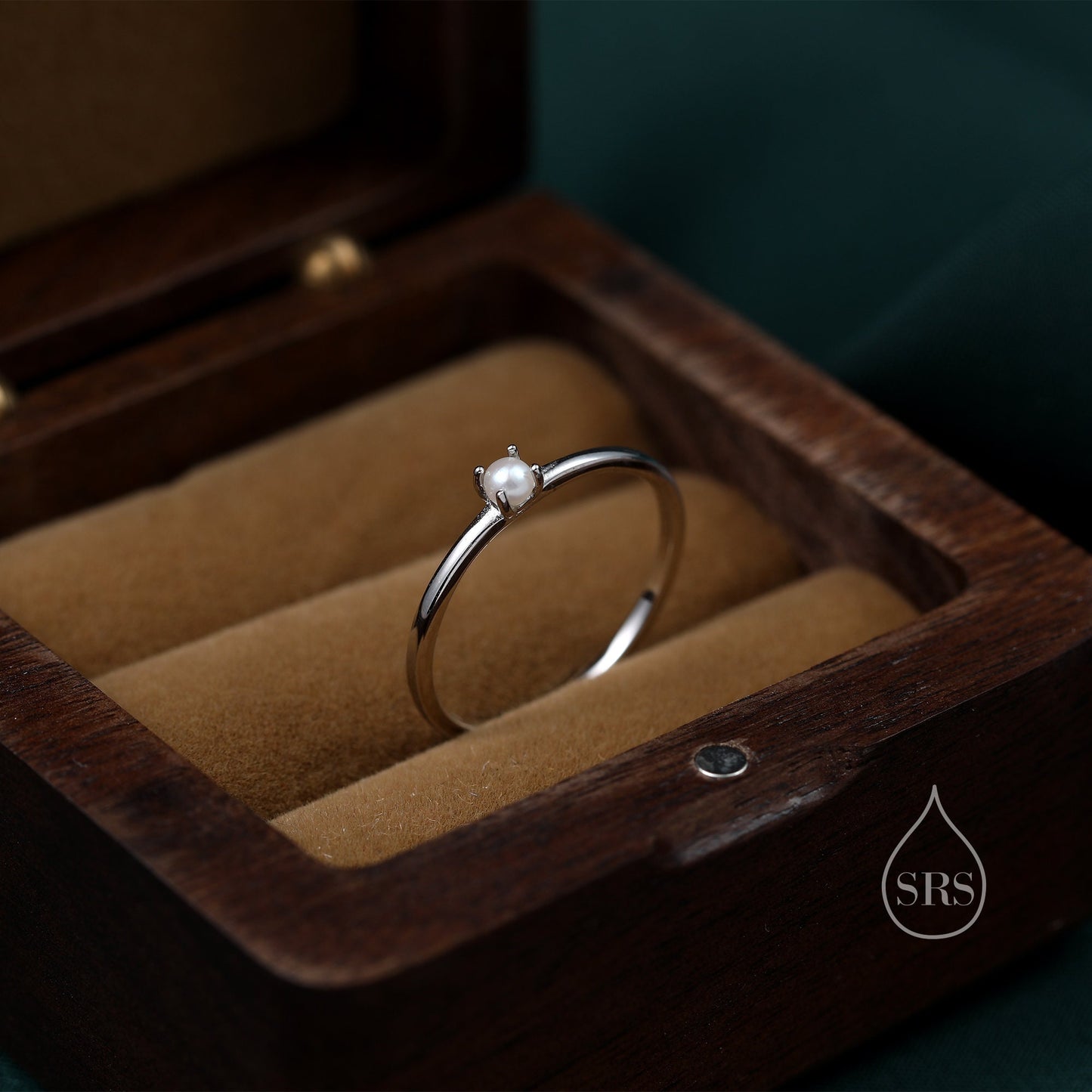 Band is 1.2mm. The pearl measure 4.5mm. Available in four sizes: US 5 6 7 8.