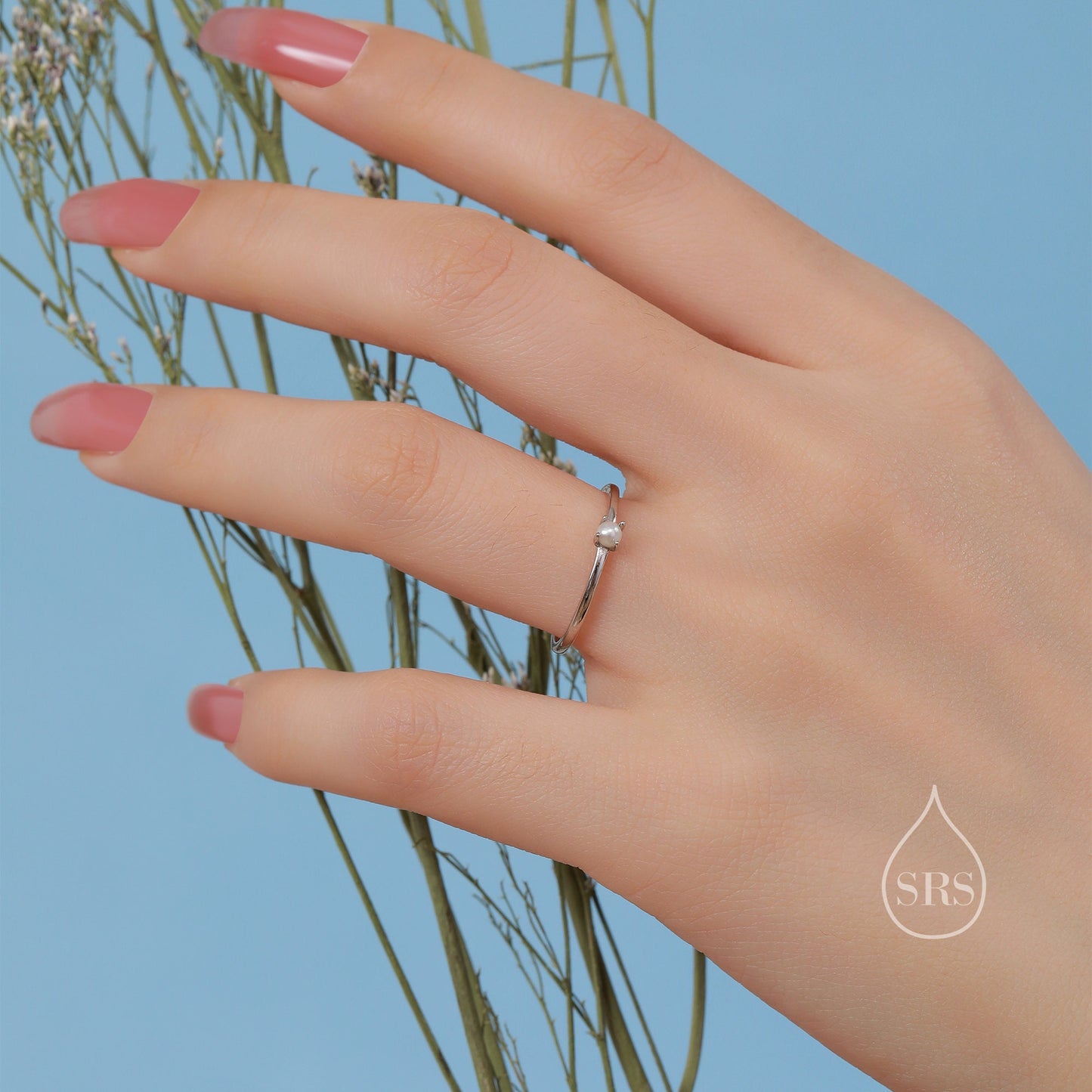 Genuine Tiny Freshwater Pearl Ring in Sterling Silver, Natural Small Pearl Ring, Real Pearl Ring in US 5 - 8