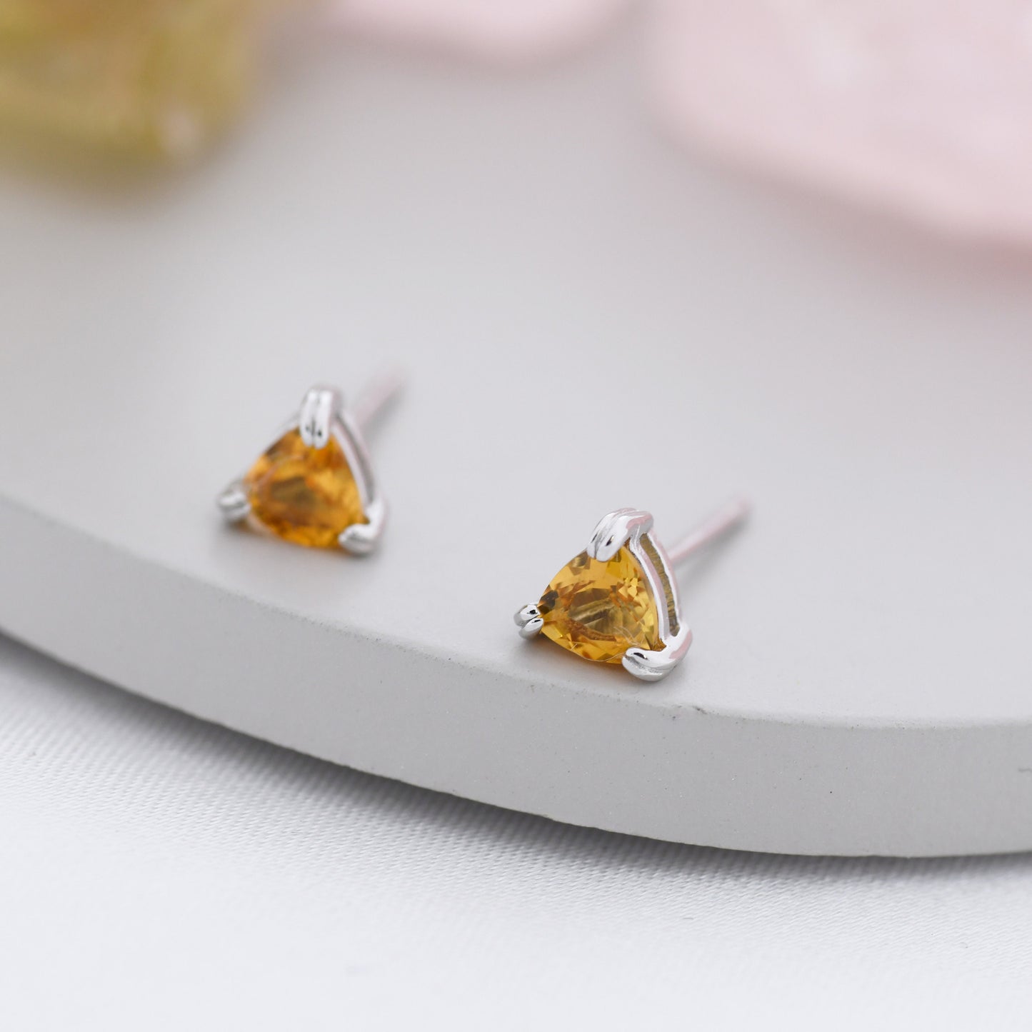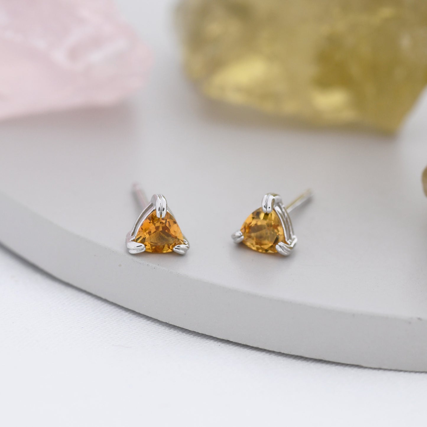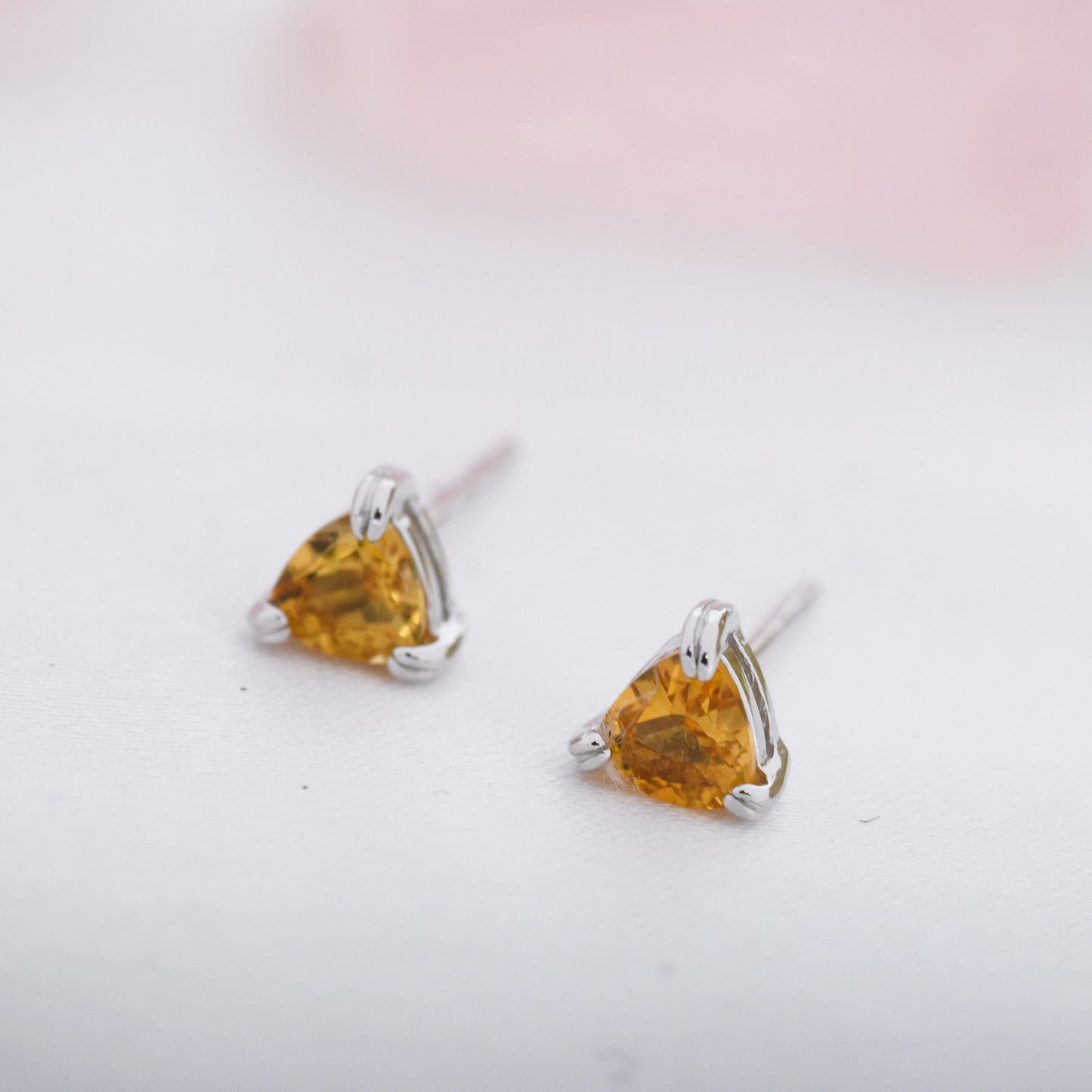 Genuine Yellow Citrine Crystal Stud Earrings in Sterling Silver, Silver or Gold, Trillion Cut Citrine Earrings, Double Pronged