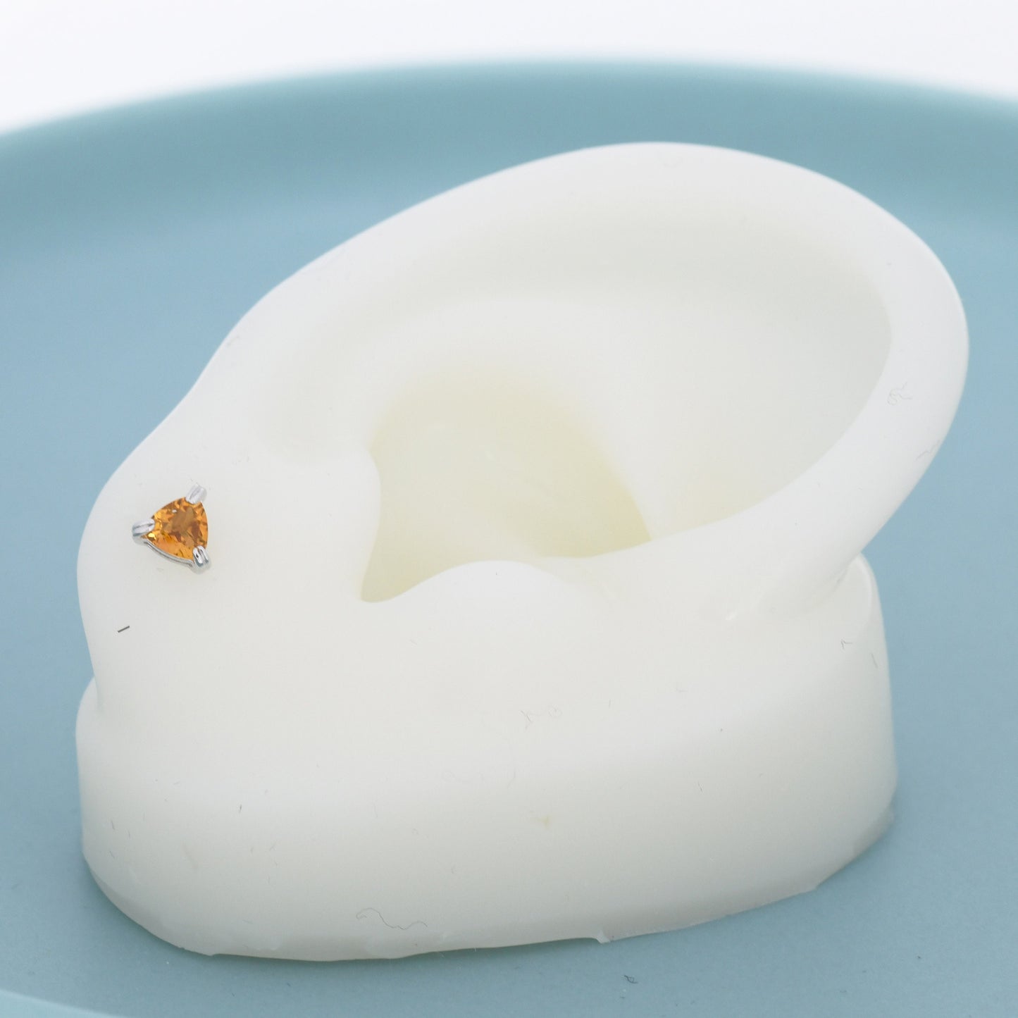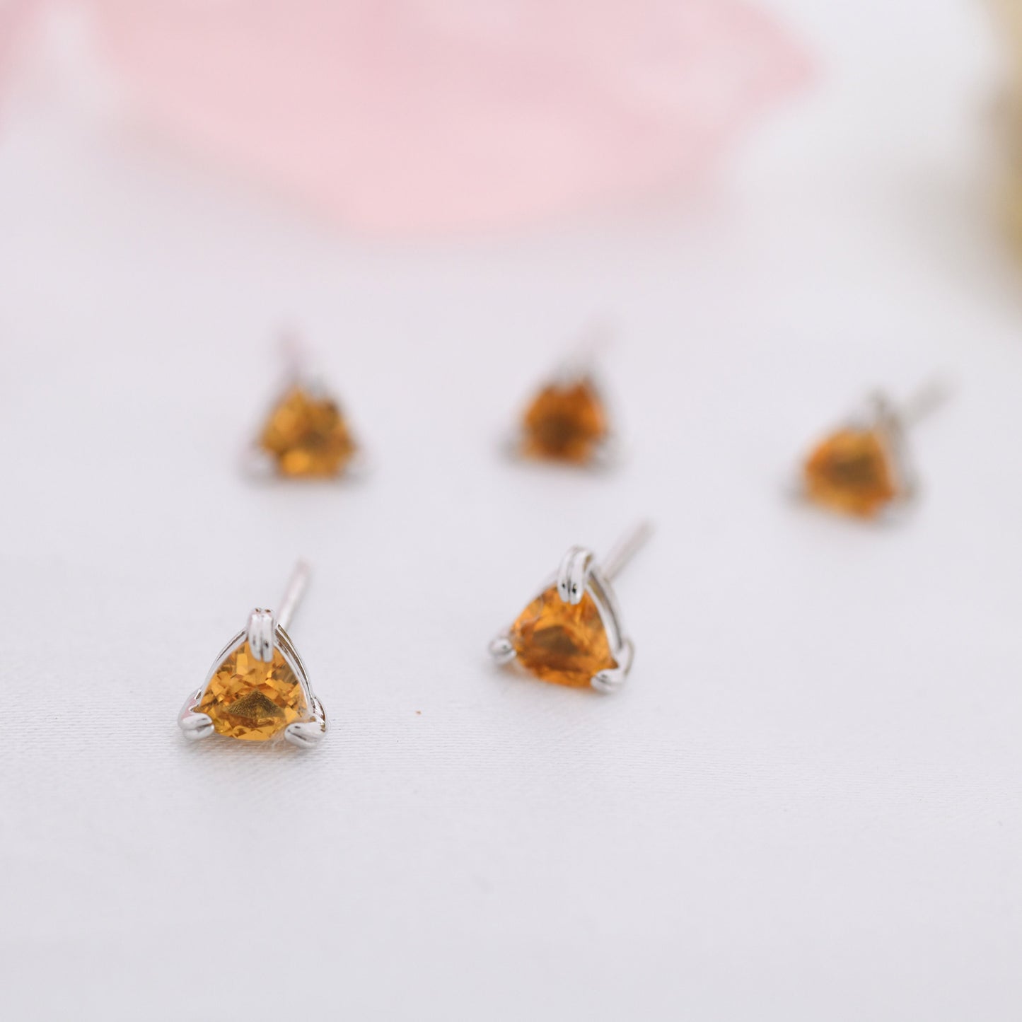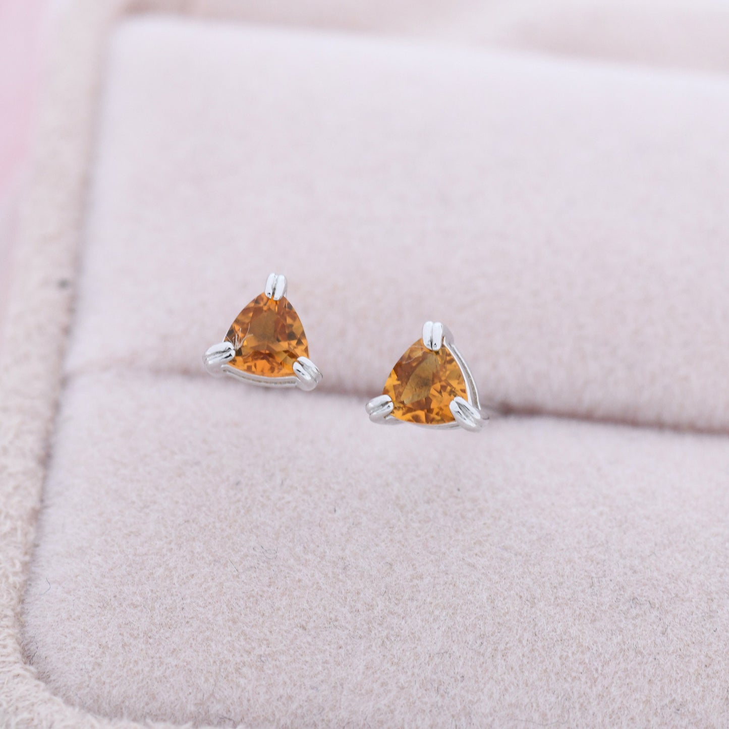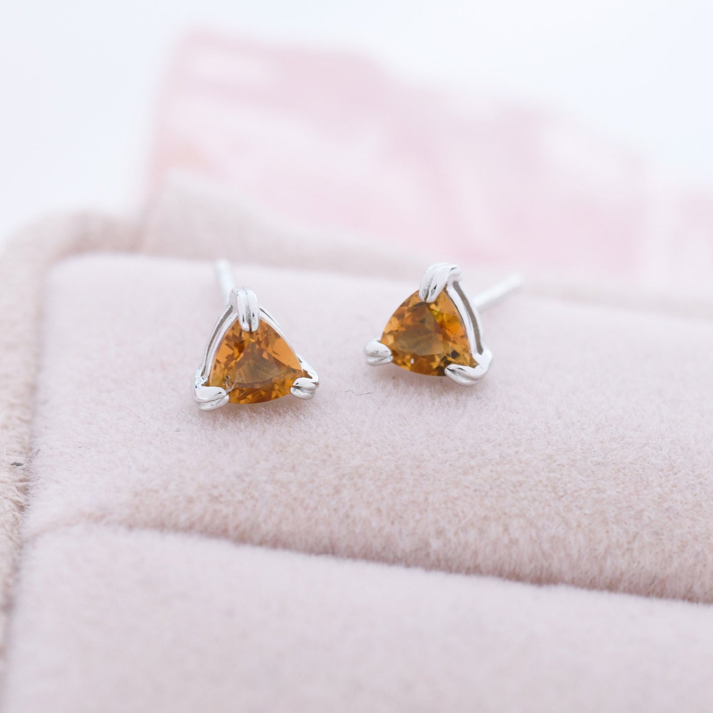 Genuine Yellow Citrine Crystal Stud Earrings in Sterling Silver, Silver or Gold, Trillion Cut Citrine Earrings, Double Pronged