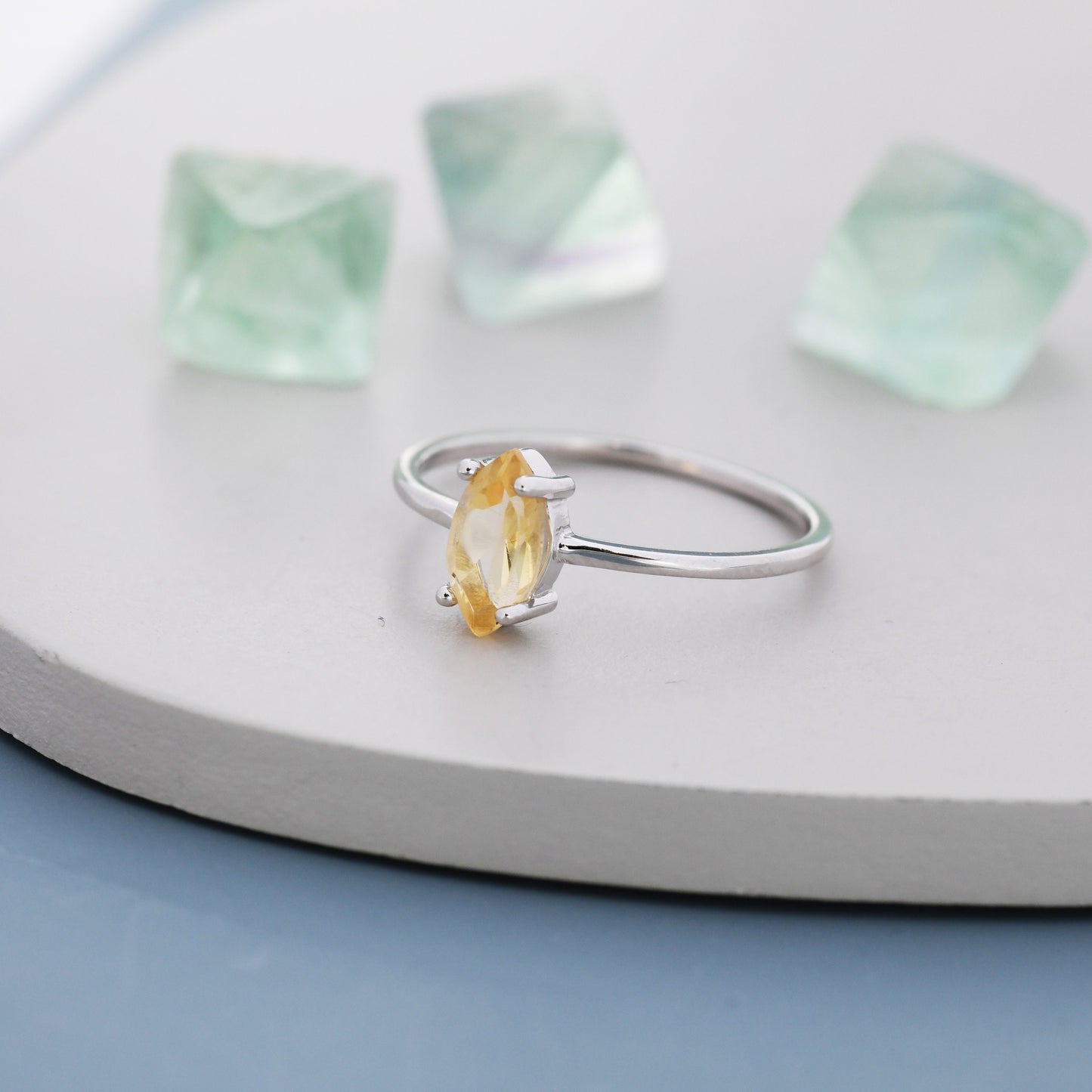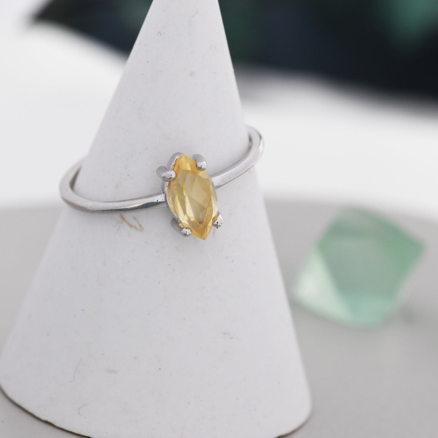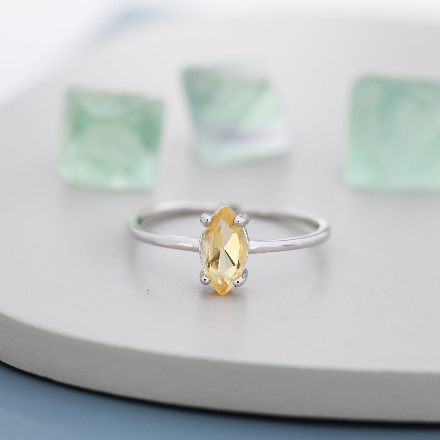 Genuine Yellow Citrine Ring in Sterling Silver, Natural Marquise Cut Citrine Stone Ring, Stacking Rings, US 5-8