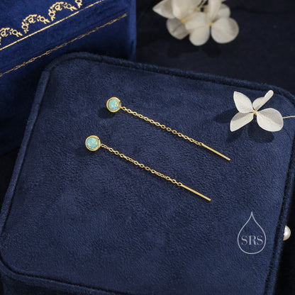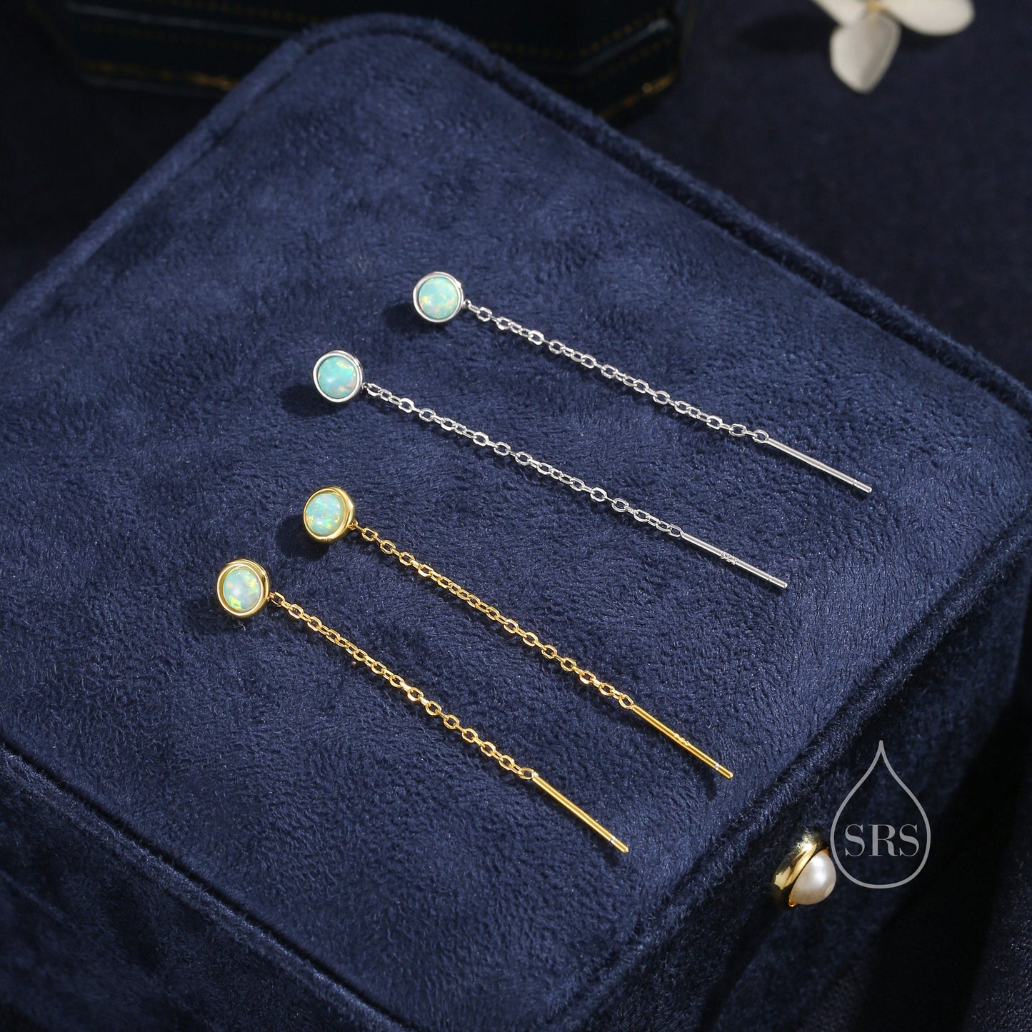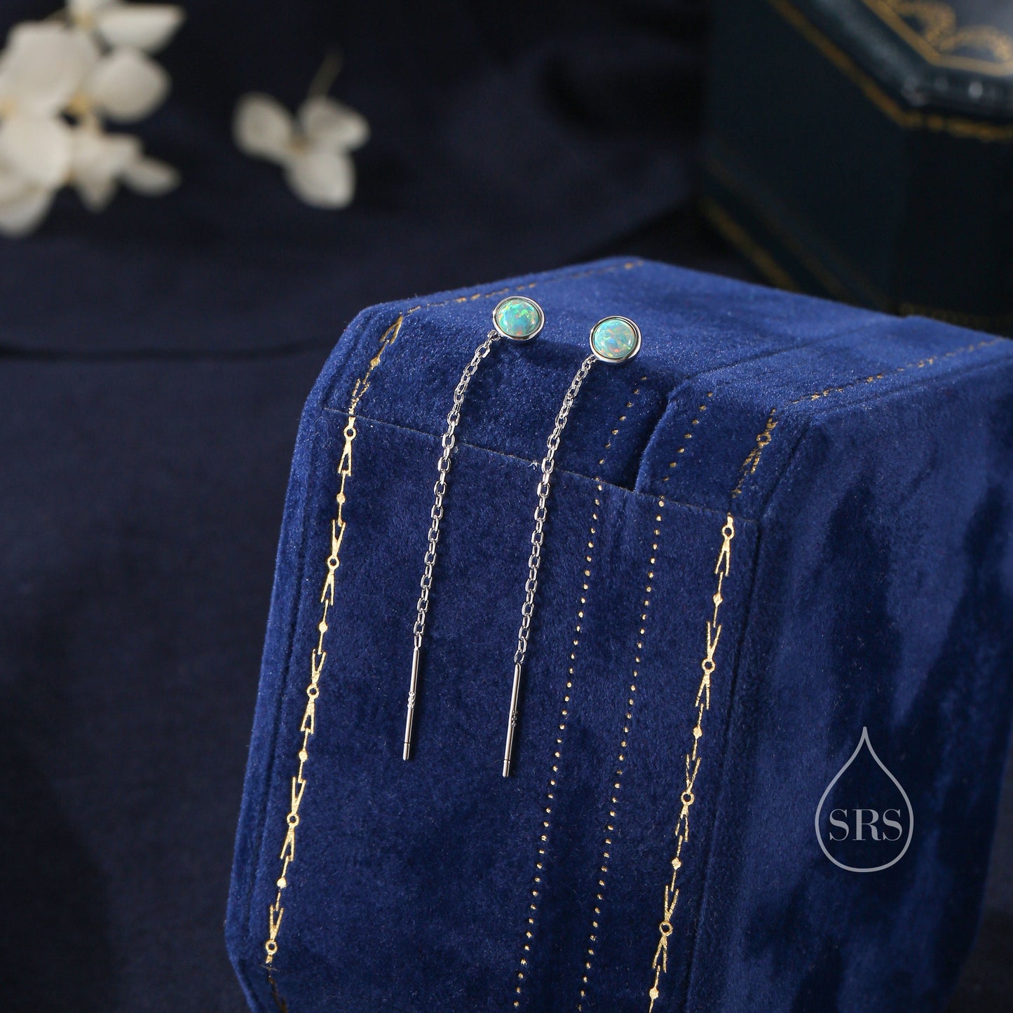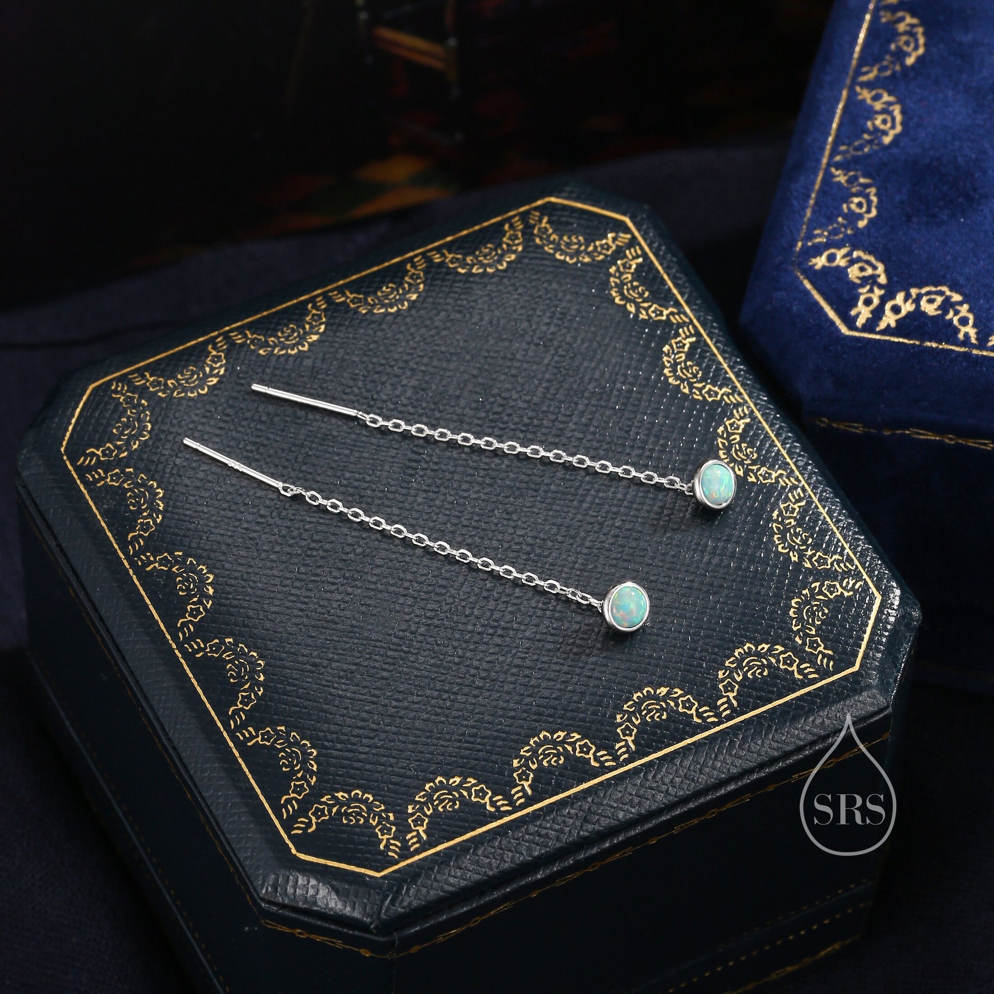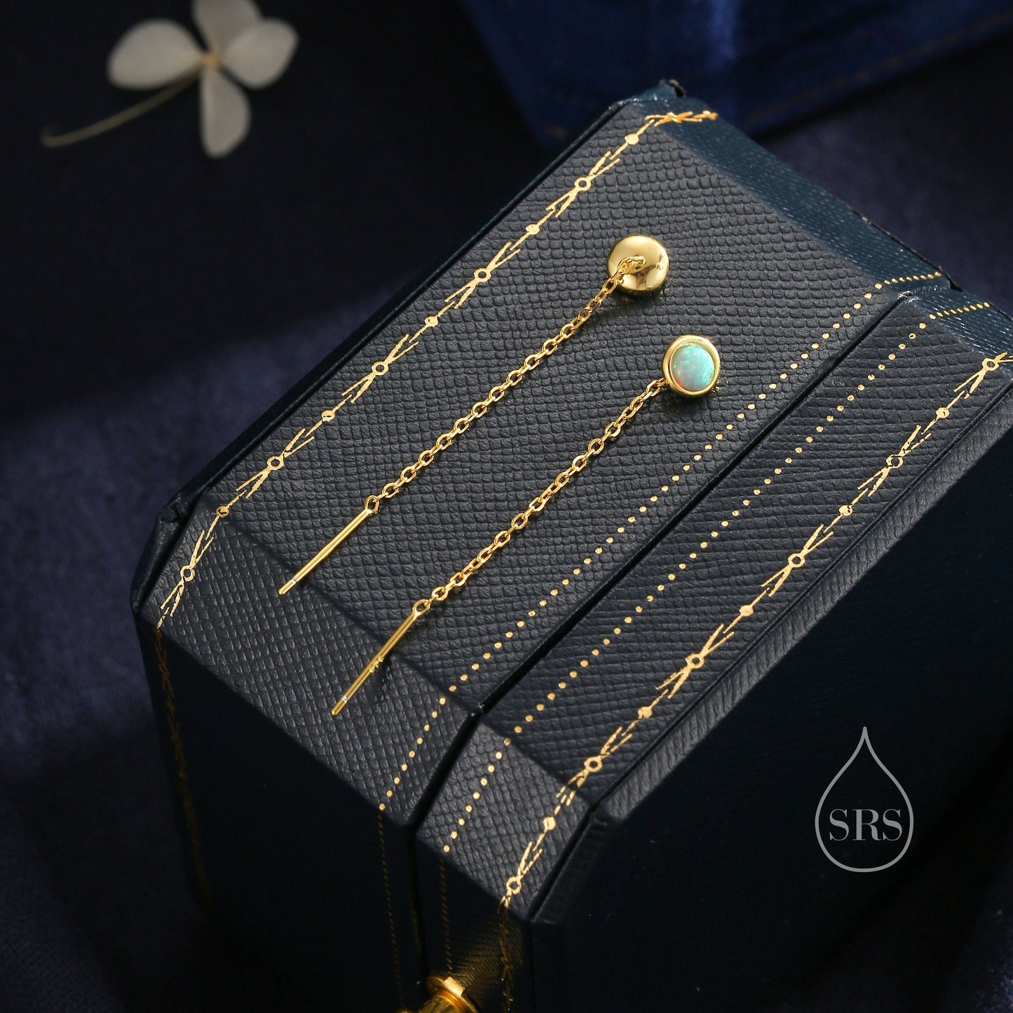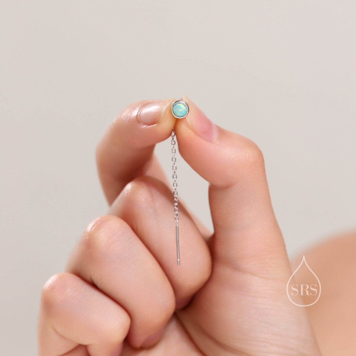 Green Opal Dot Threader Earrings in Sterling Silver, Lab Opal Ear Threaders, Silver or Gold, Green Opal Threaders, Chain Earrings