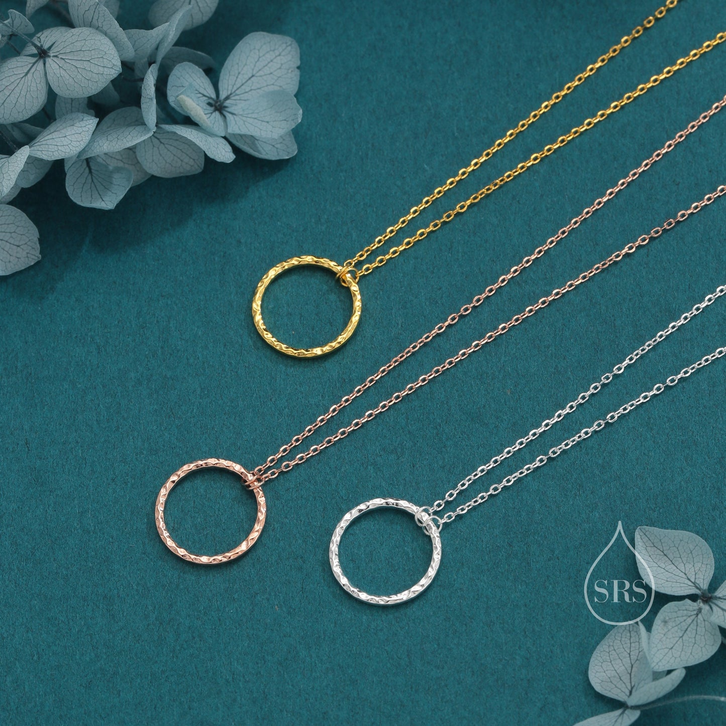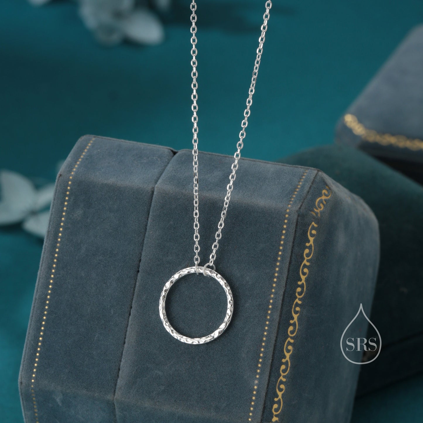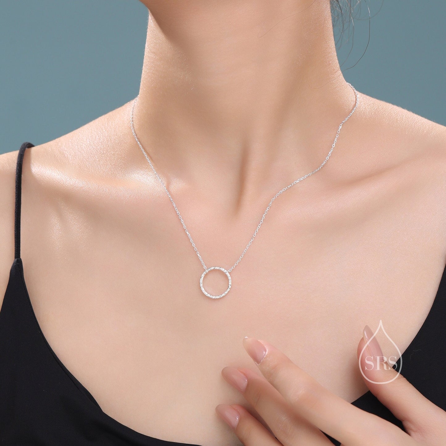 Hammered Circle Pendant Necklace in Sterling Silver, Silver or Gold or Rose Gold, Delicate Textured Circle Geometric Necklace