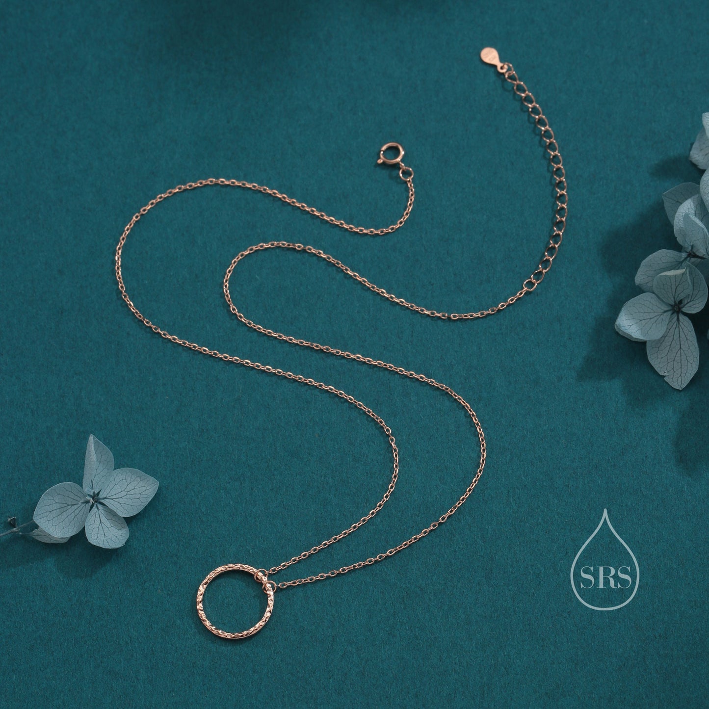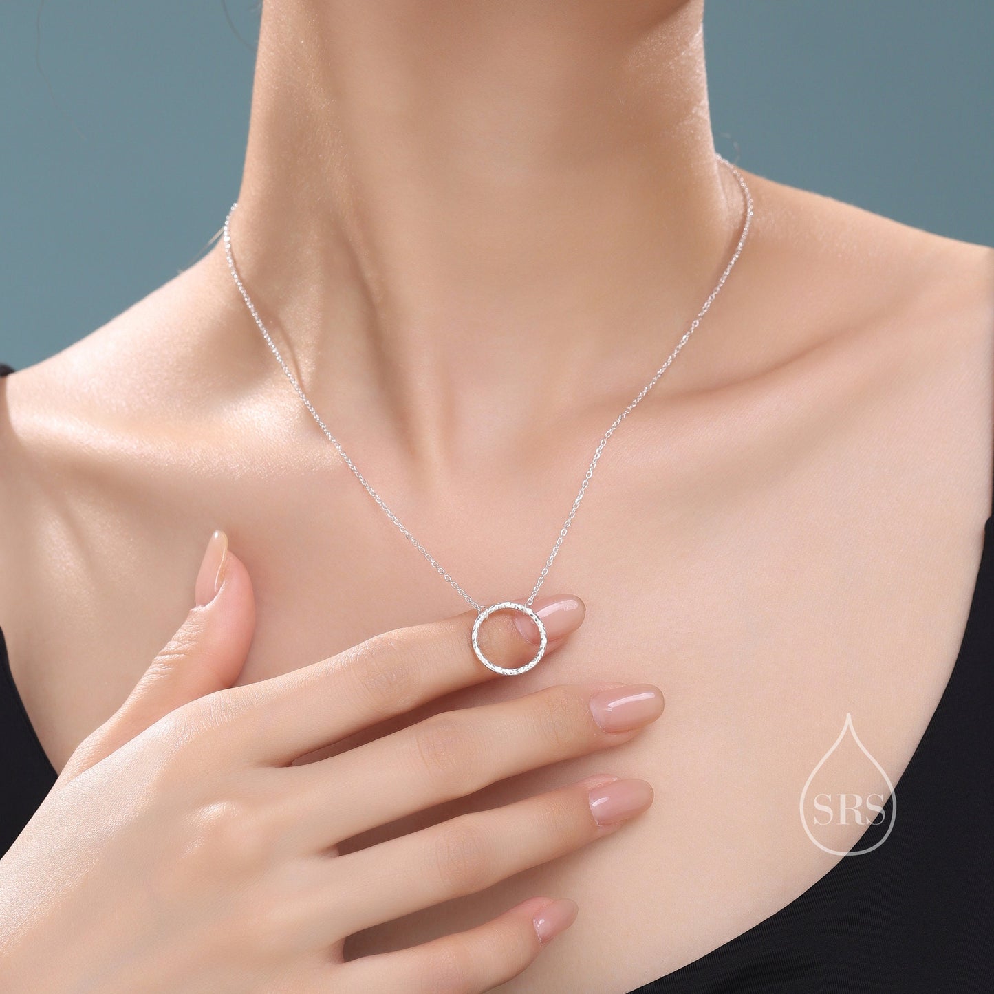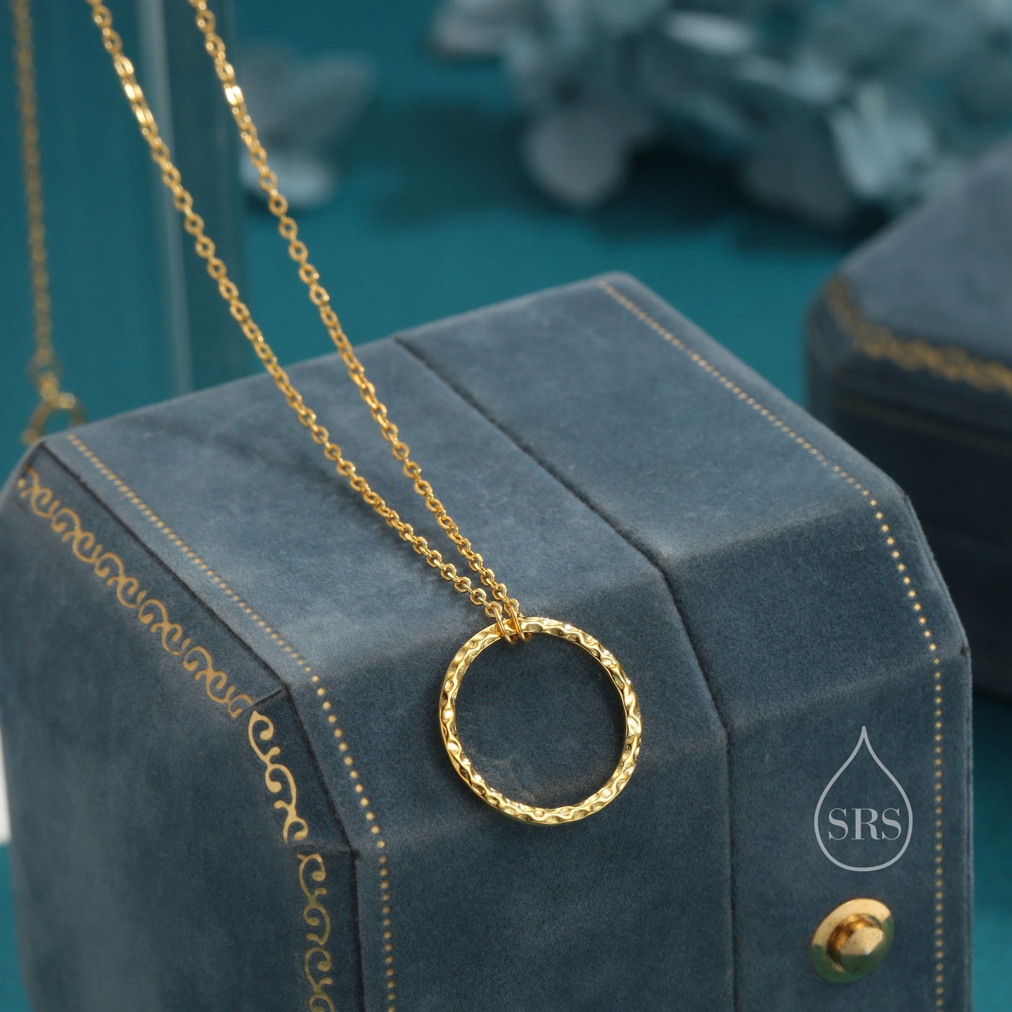 Hammered Circle Pendant Necklace in Sterling Silver, Silver or Gold or Rose Gold, Delicate Textured Circle Geometric Necklace