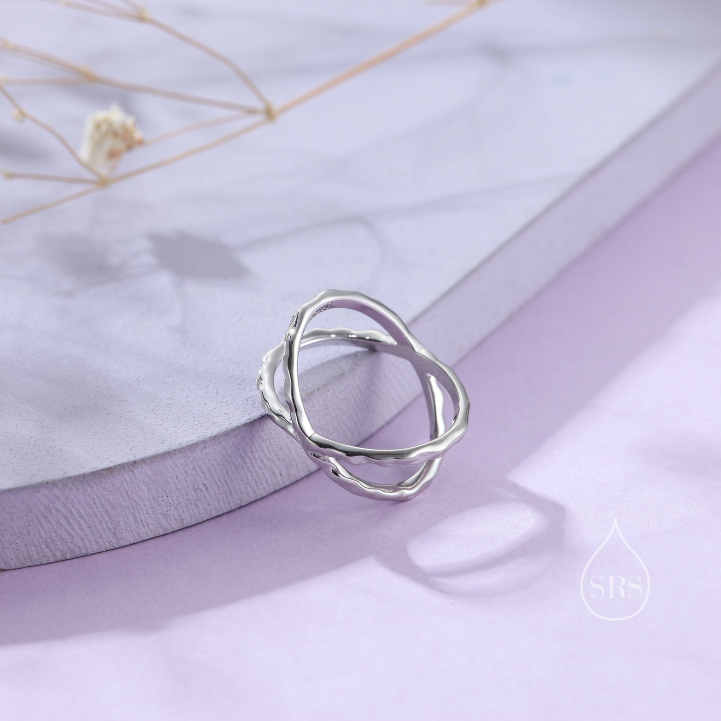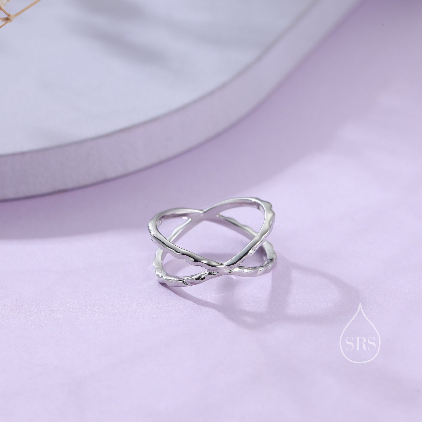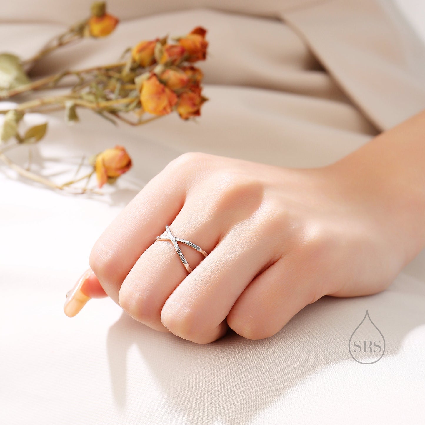Hammered Cross Ring in Sterling Silver Cross Ring, X Ring, Crossover Ring, Geometric and Minimalist Ring, Size US 4.5 - 7.5