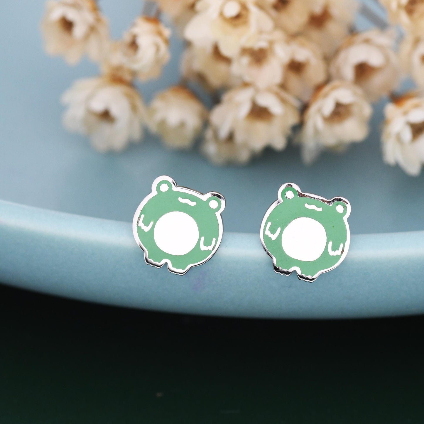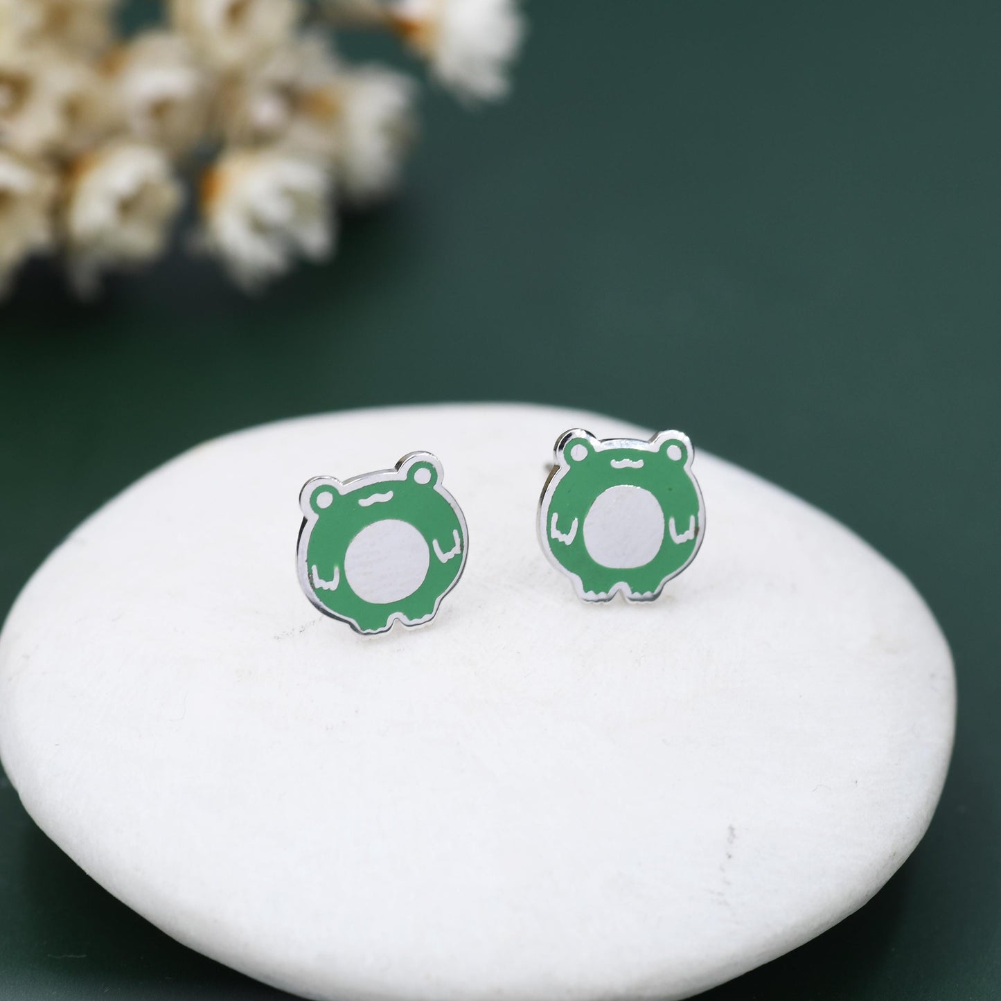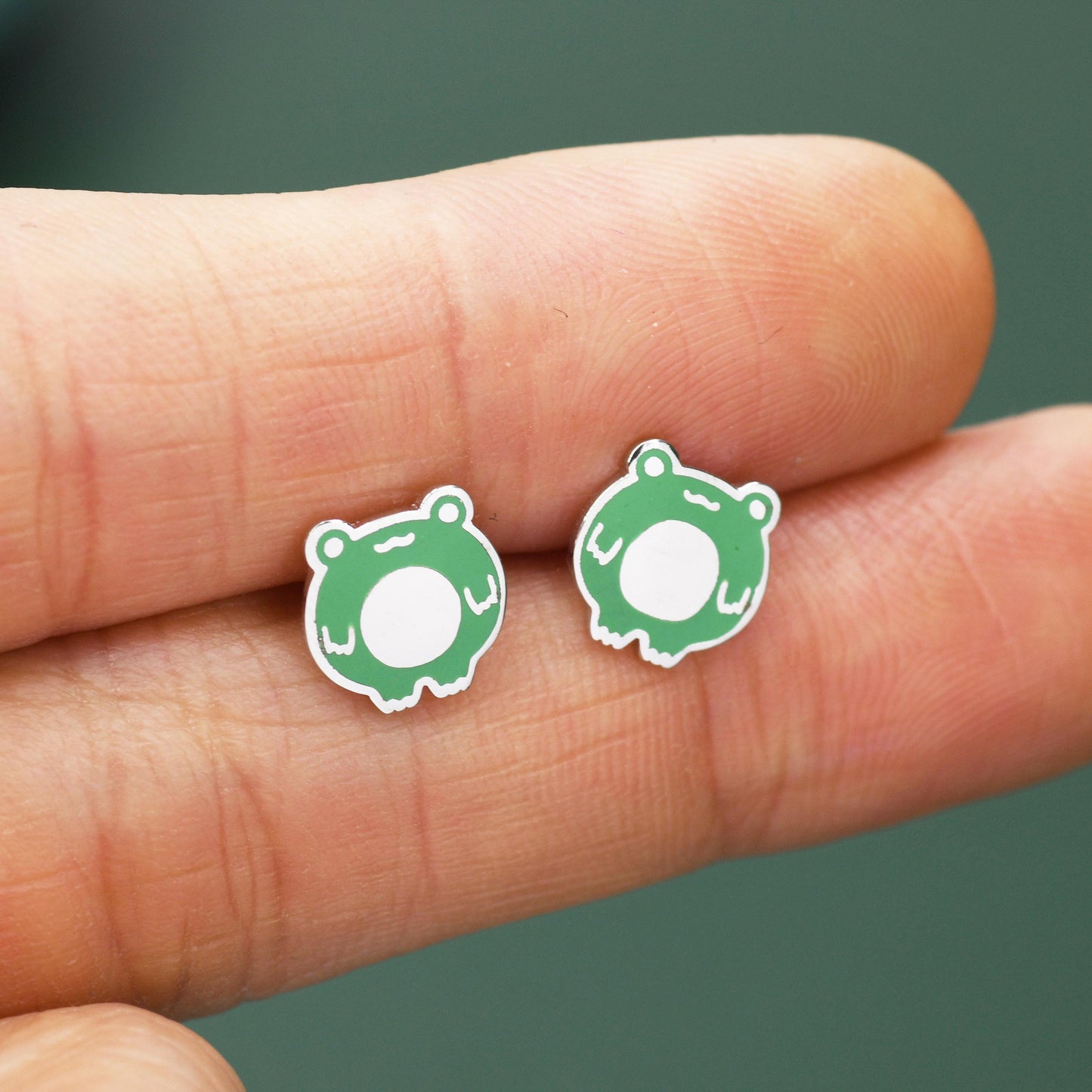 Hand Painted Enamel Frog Stud Earrings in Sterling Silver, Kawaii Frog Earrings, Green Frog Earrings, Nature Inspired