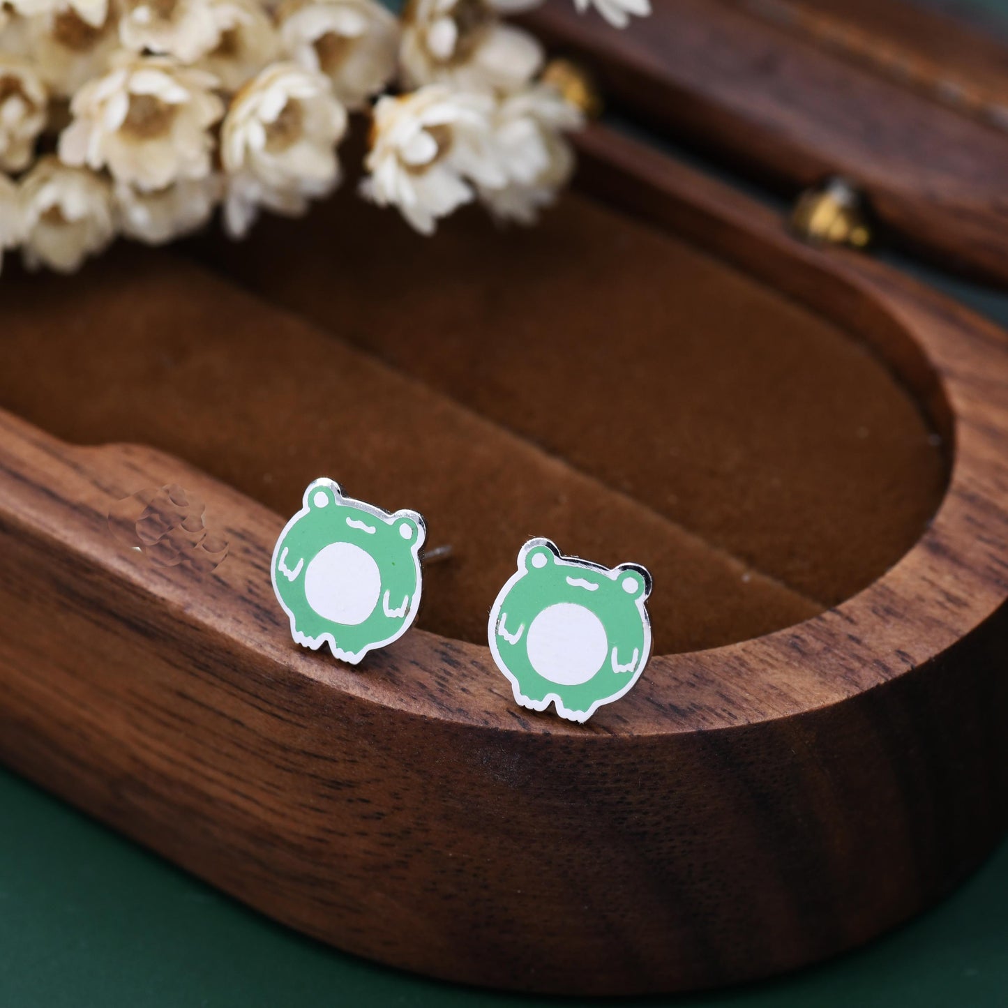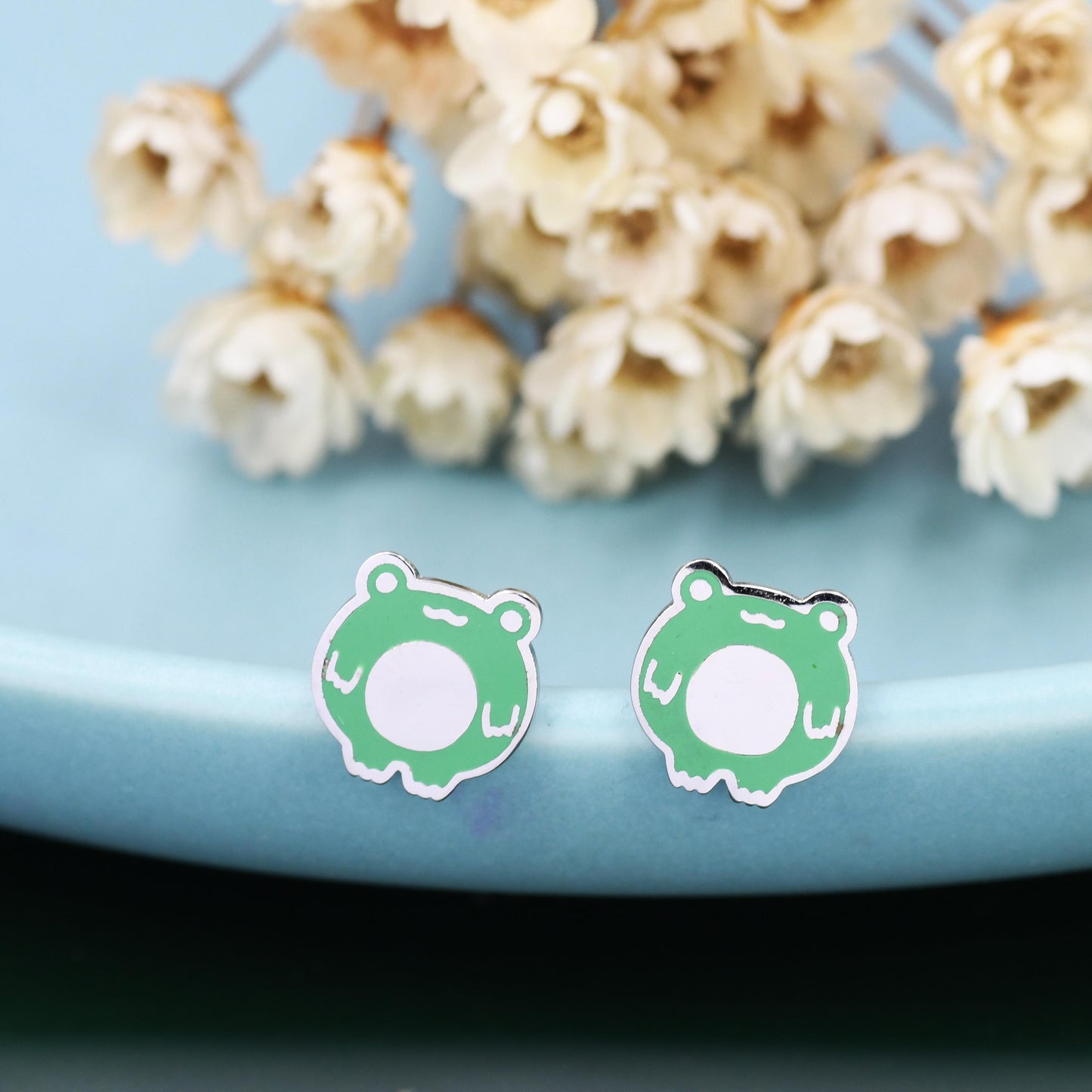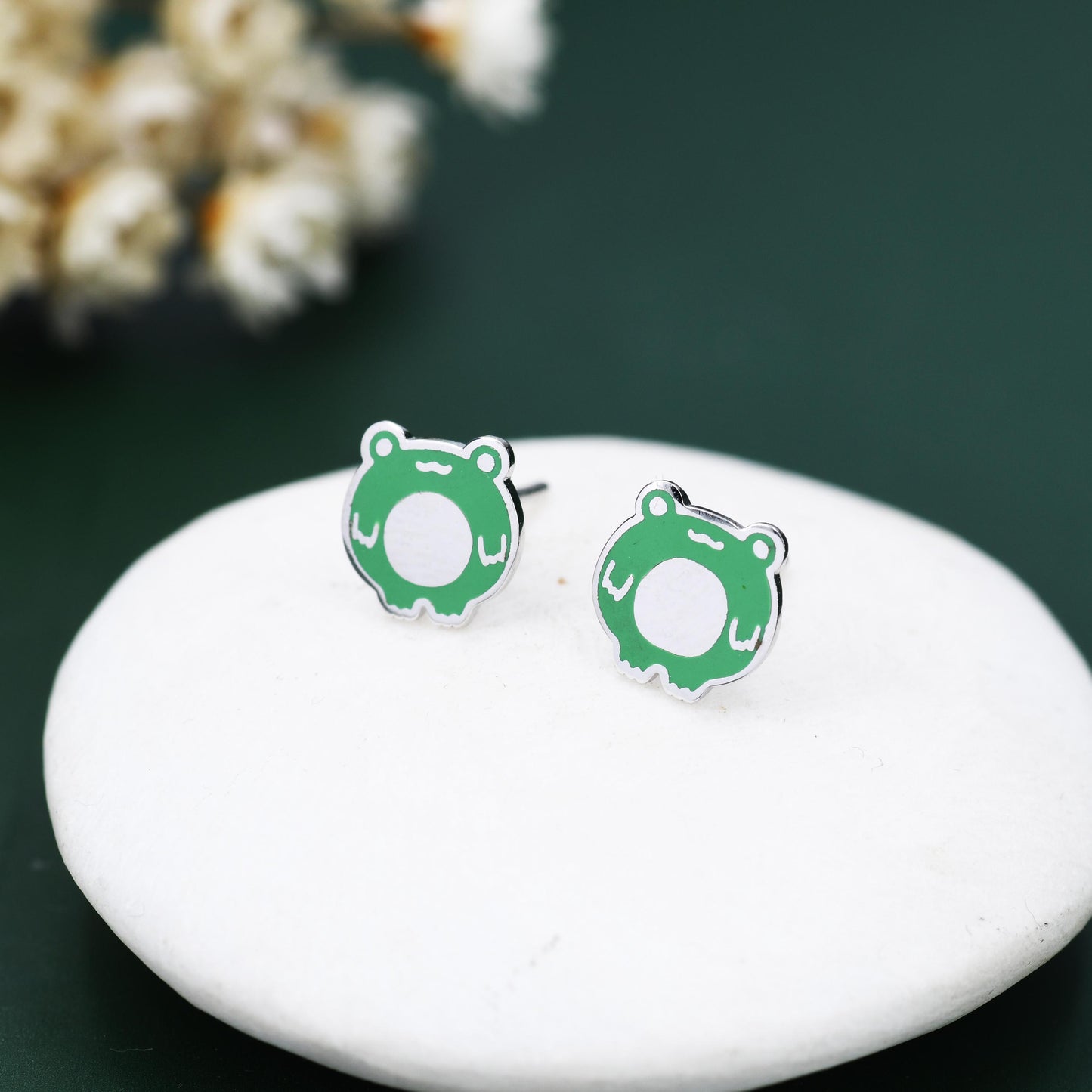 Hand Painted Enamel Frog Stud Earrings in Sterling Silver, Kawaii Frog Earrings, Green Frog Earrings, Nature Inspired