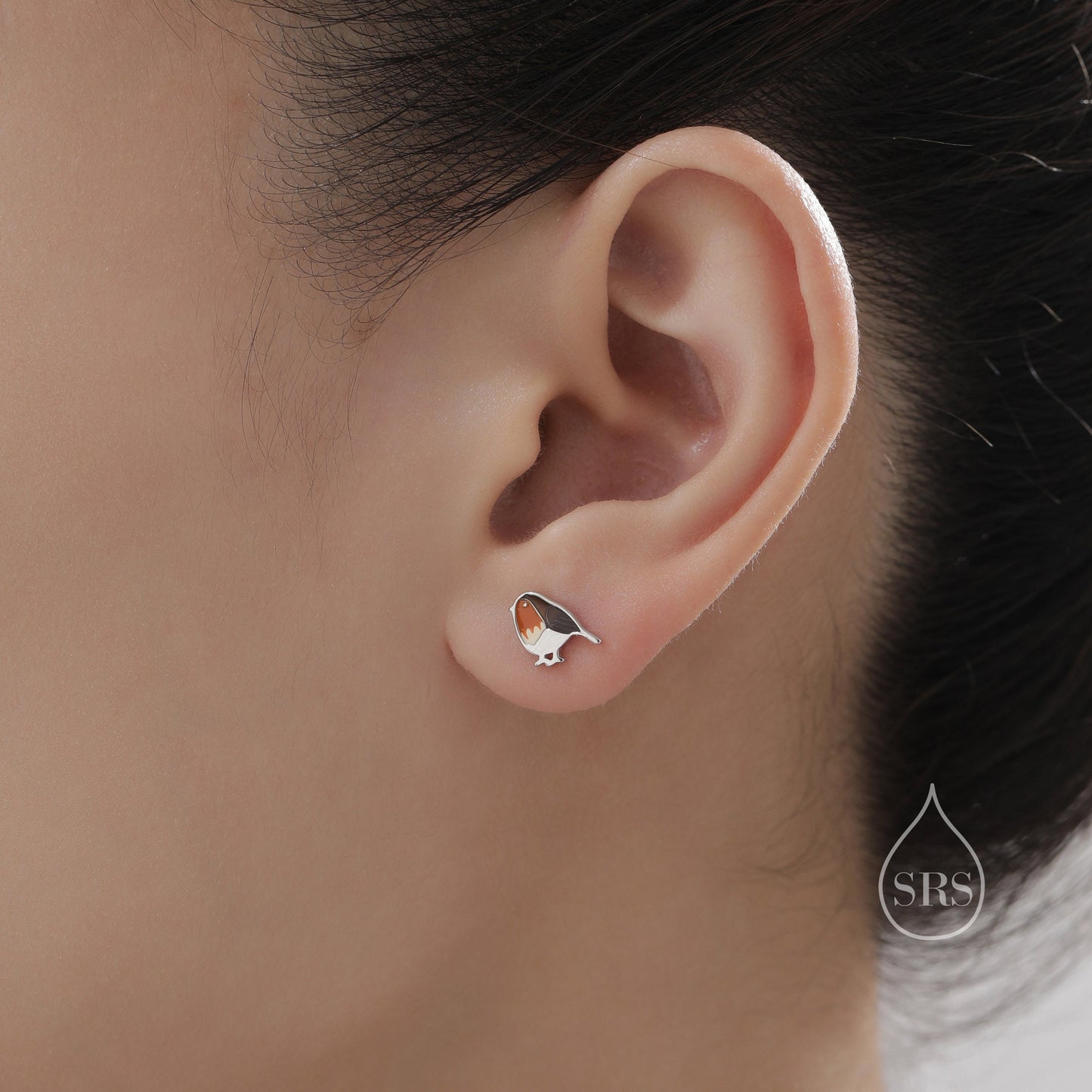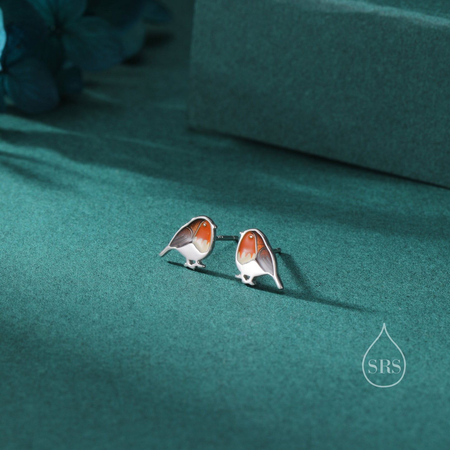Hand Painted Robin Bird Stud Earrings in Sterling Silver, British Bird Earrings, Nature Inspired Animal Earrings