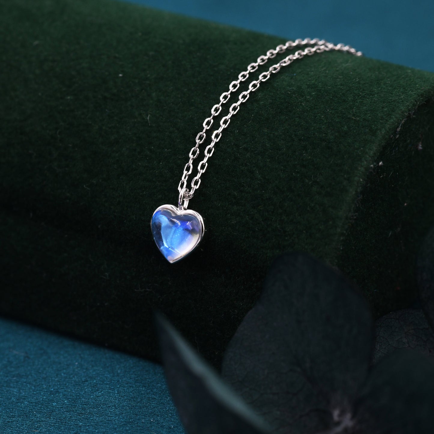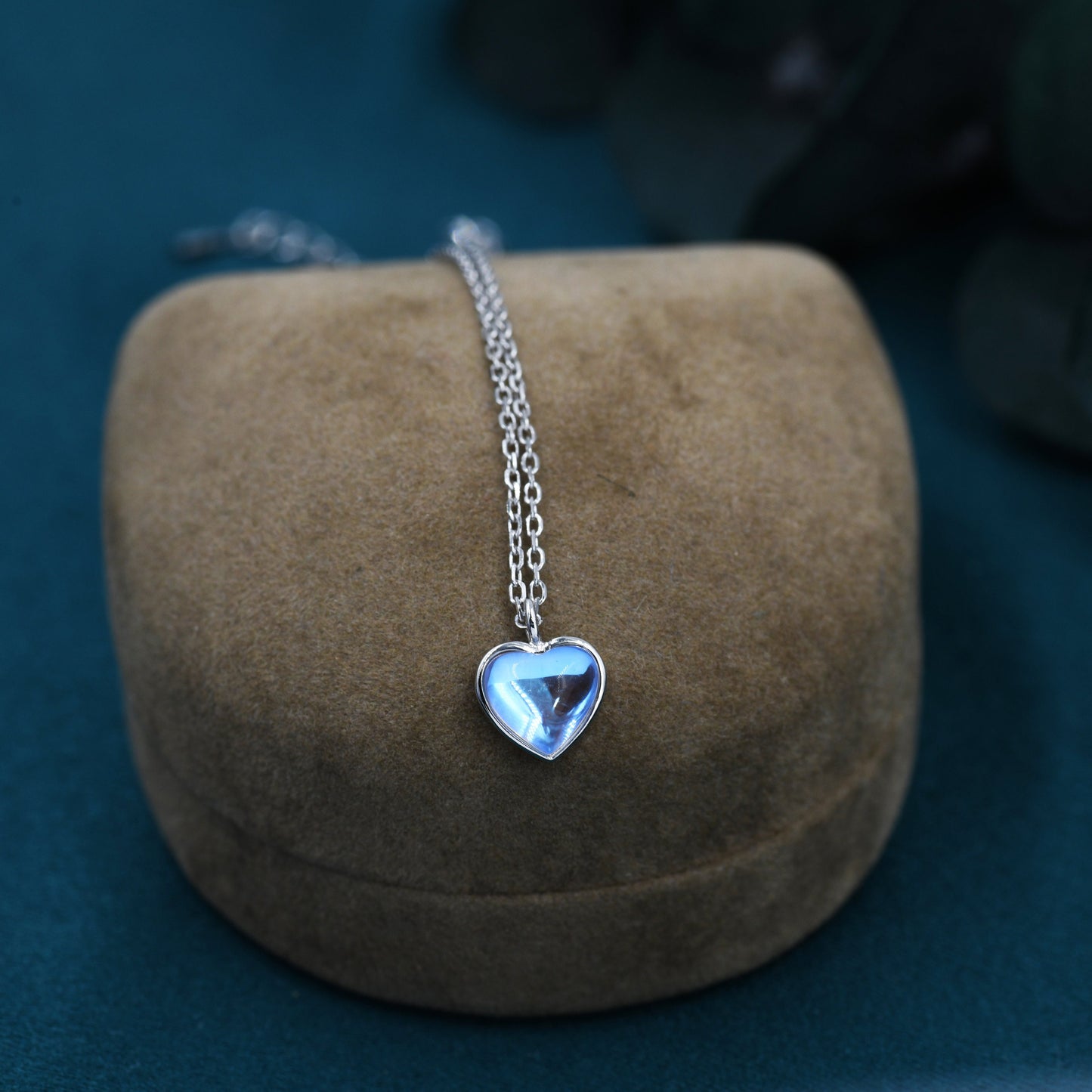 Heart Moonstone Pendant Necklace in Sterling Silver, Moonstone Necklace, Heart Shape Moonstone Necklace, Aurora Crystal, AB Crystal