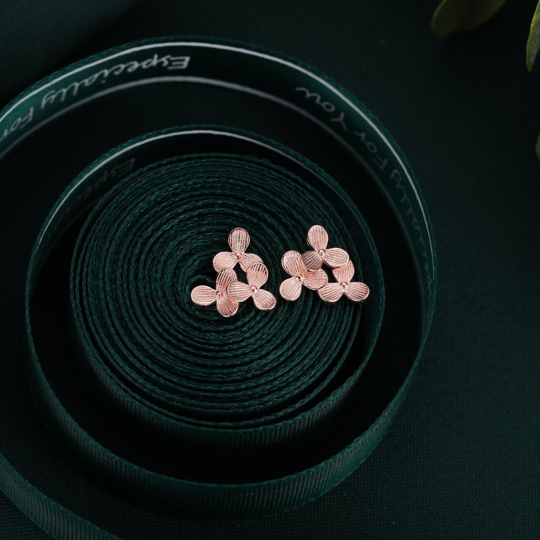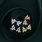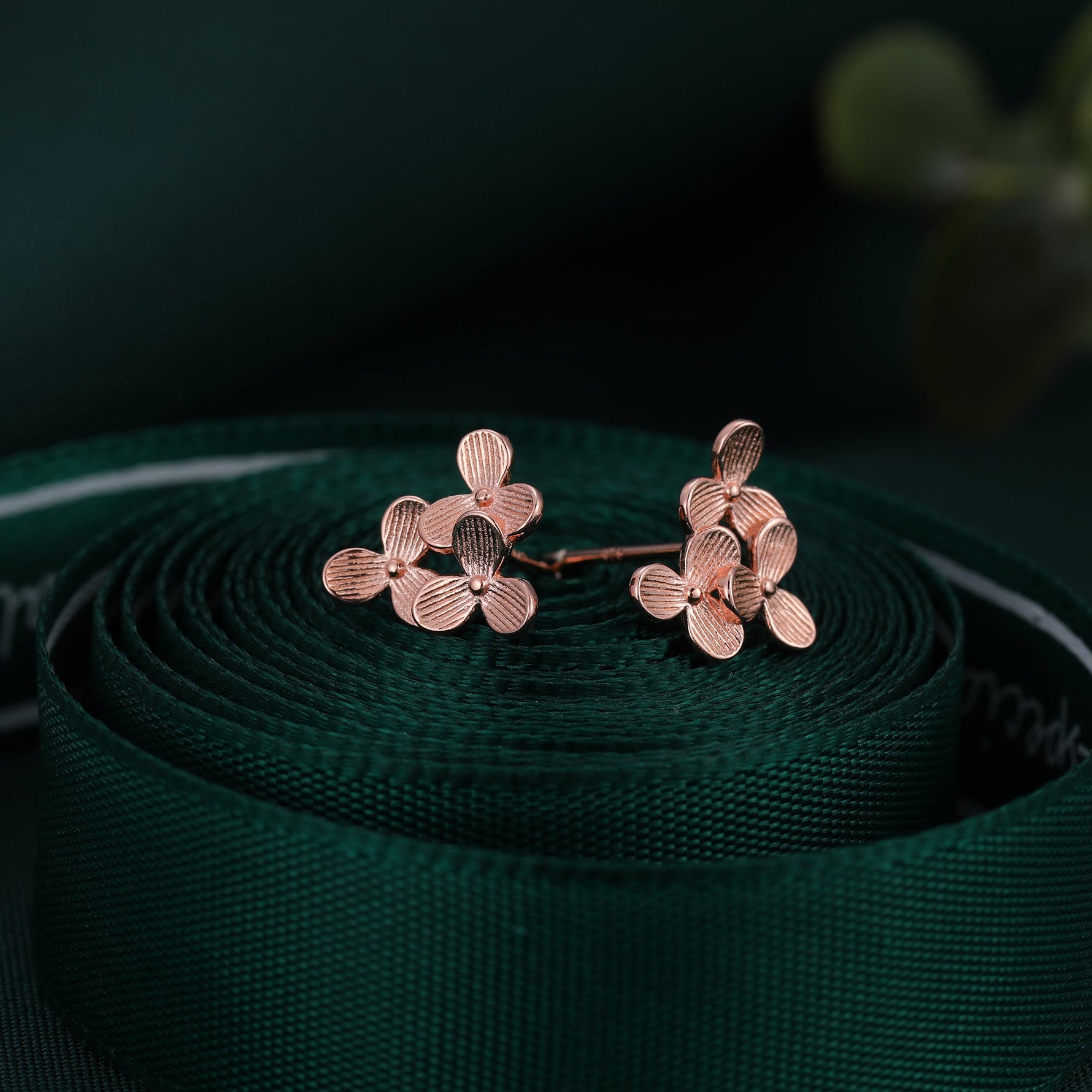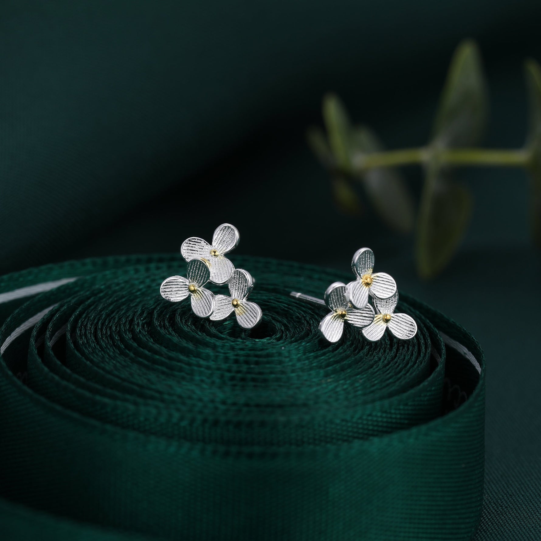 A dainty pair of earrings featuring the design of three Hydrangea flowers.