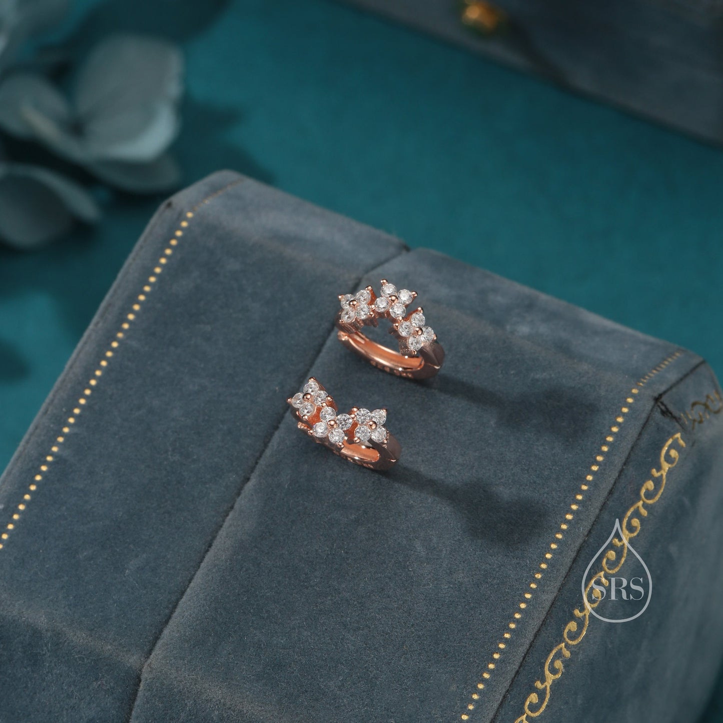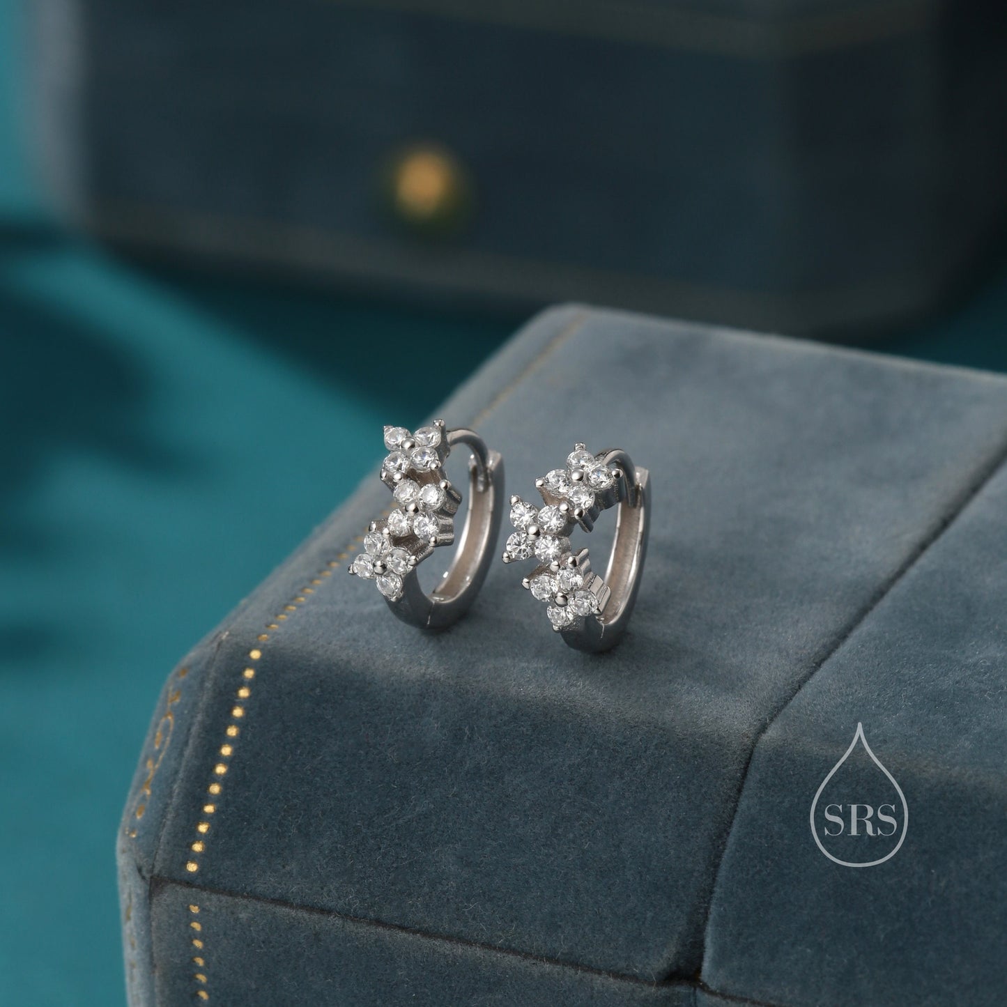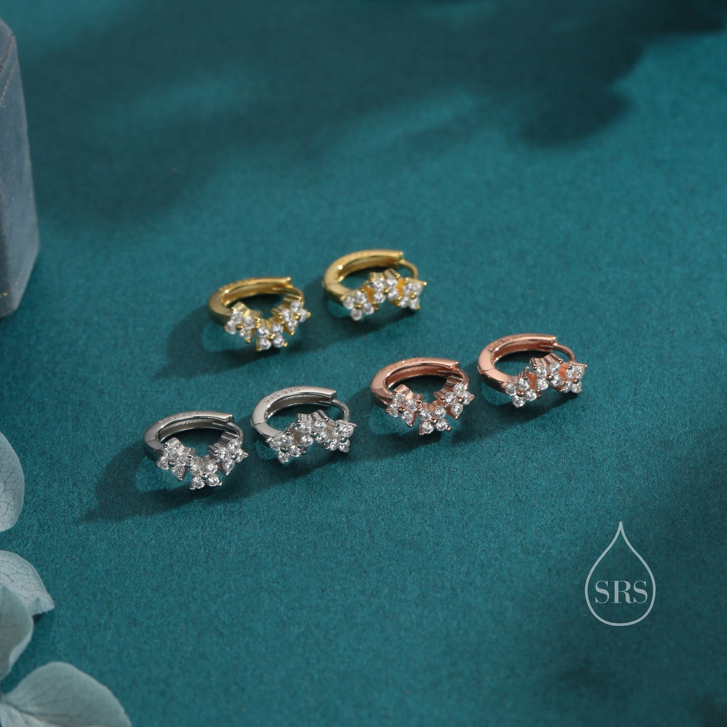 Hydrangea Flower Bouquet CZ Huggie Hoop Earrings in Sterling Silver, Silver or Gold or Rose Gold, CZ Hoops, Flower Hoops, Dainty CZ Hoops