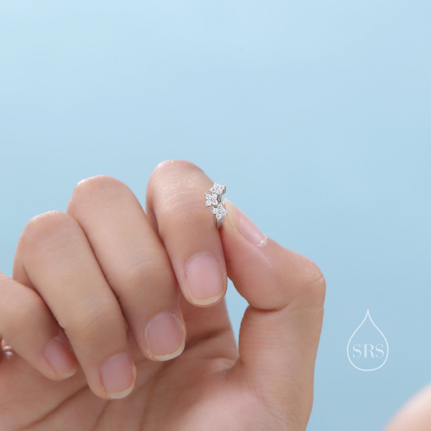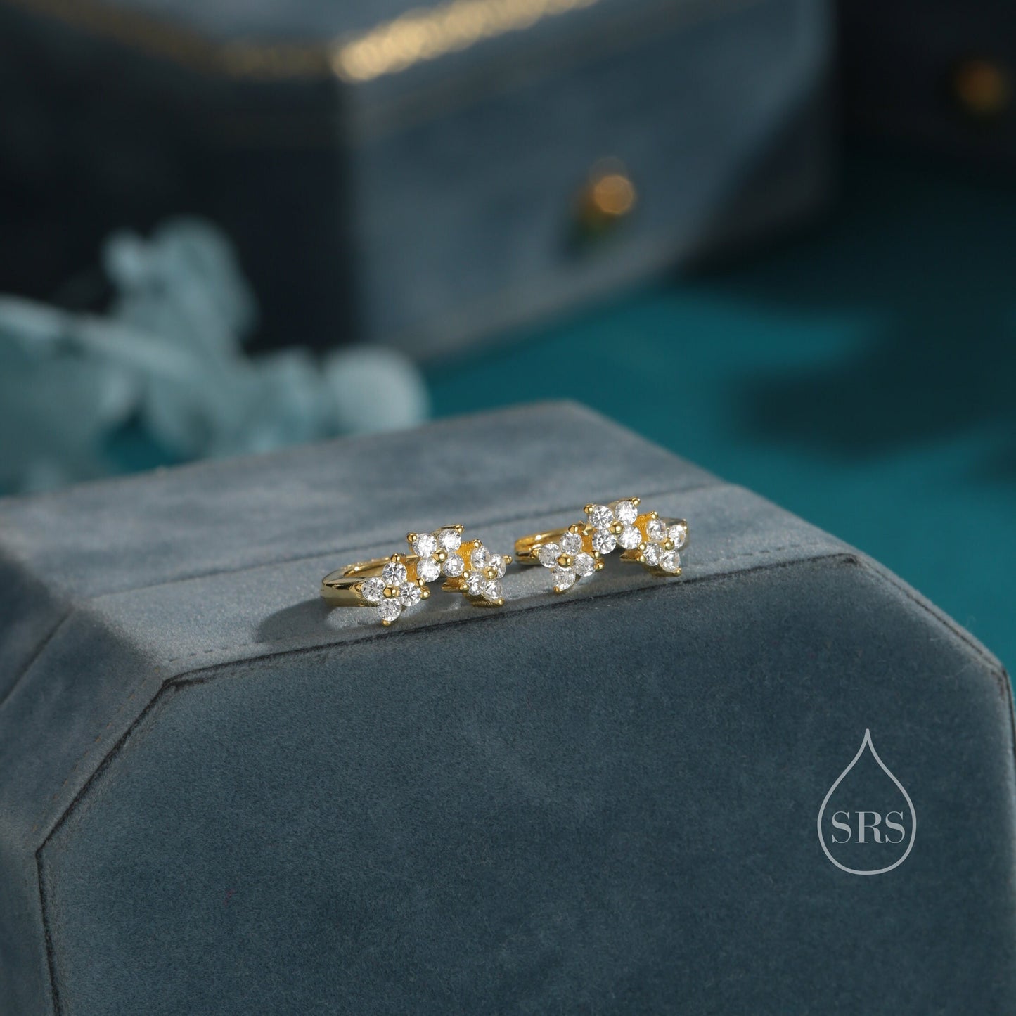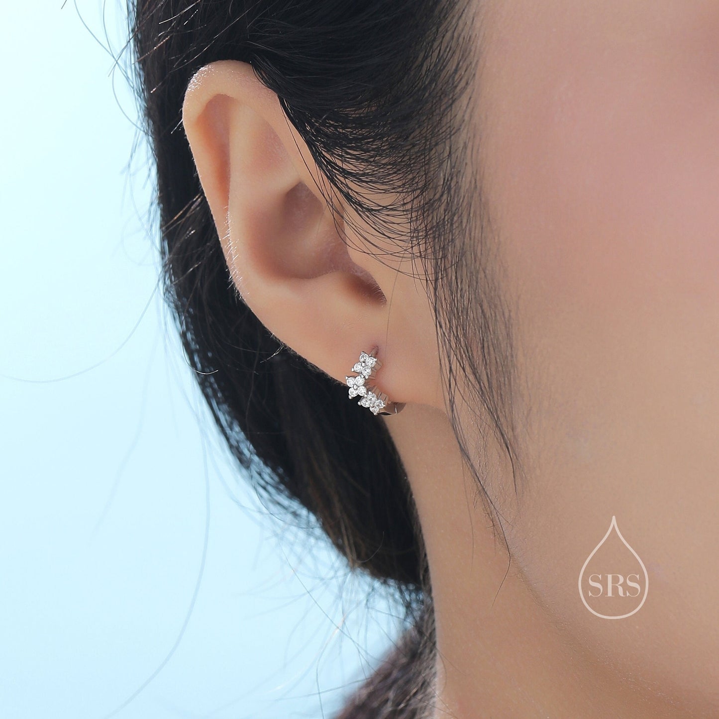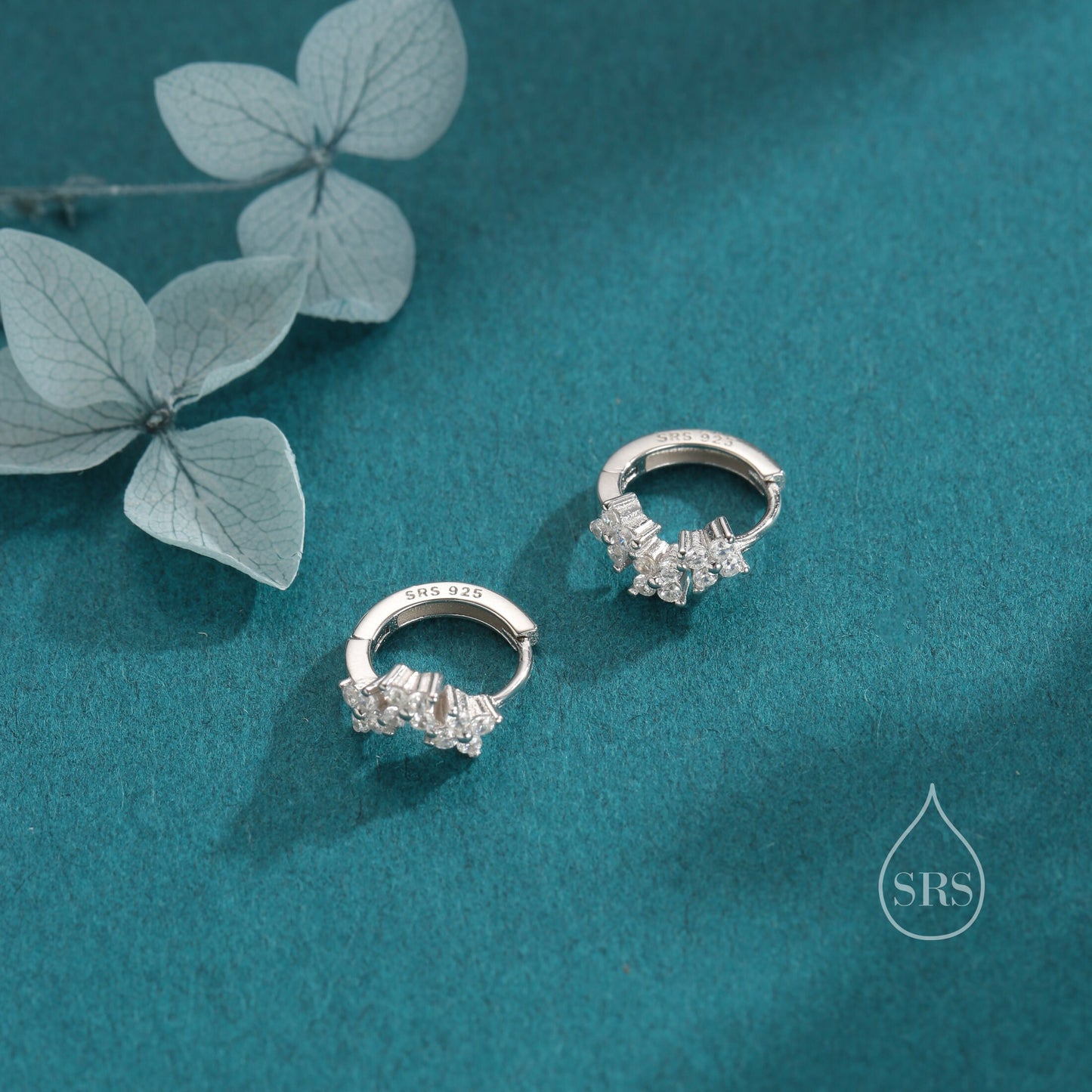 Hydrangea Flower Bouquet CZ Huggie Hoop Earrings in Sterling Silver, Silver or Gold or Rose Gold, CZ Hoops, Flower Hoops, Dainty CZ Hoops