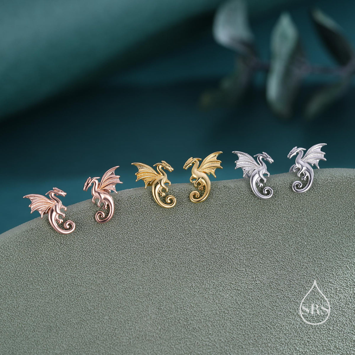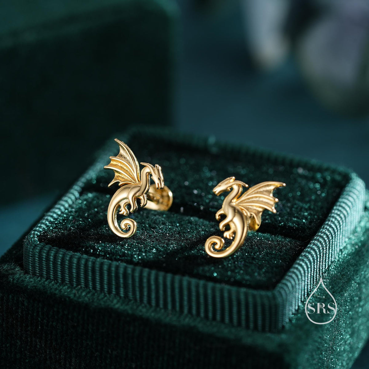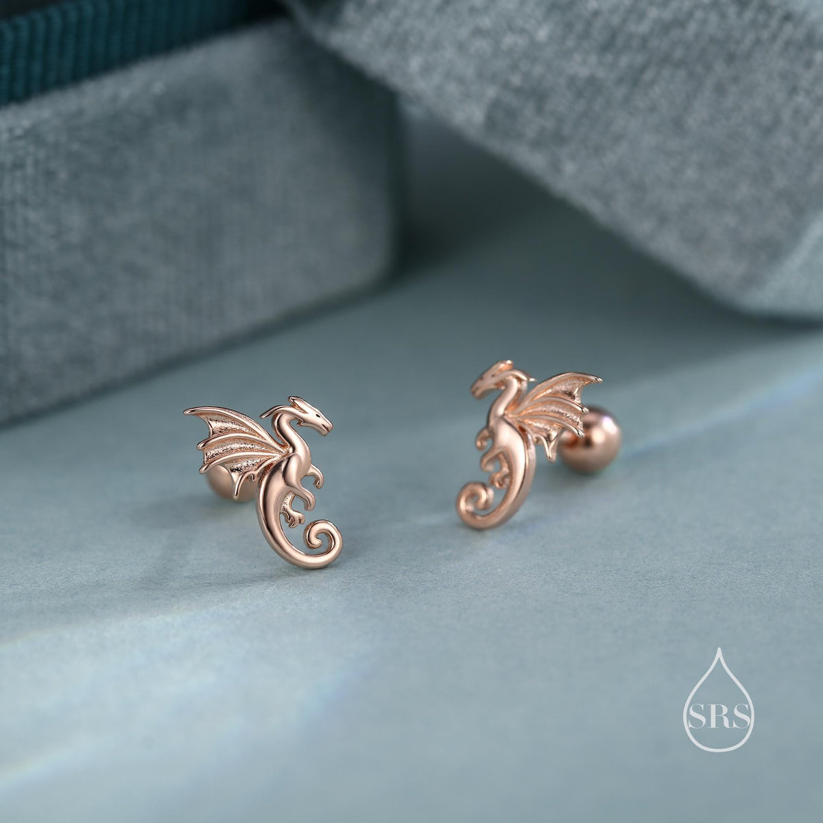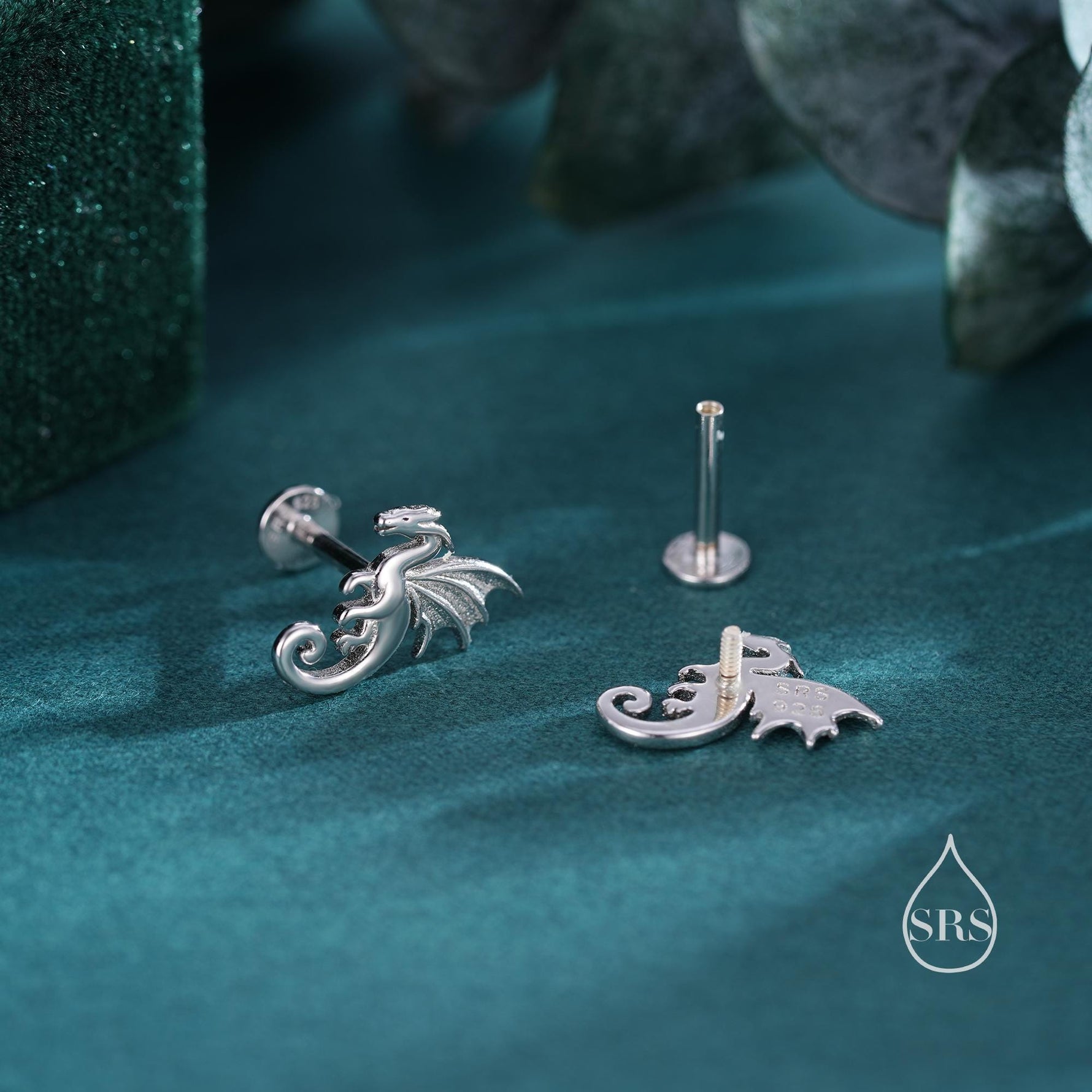 Internally Threaded Dragon Flat Back Earrings in Sterling Silver, Also available in Screw Back Stud Earrings Gold or Rose Gold
