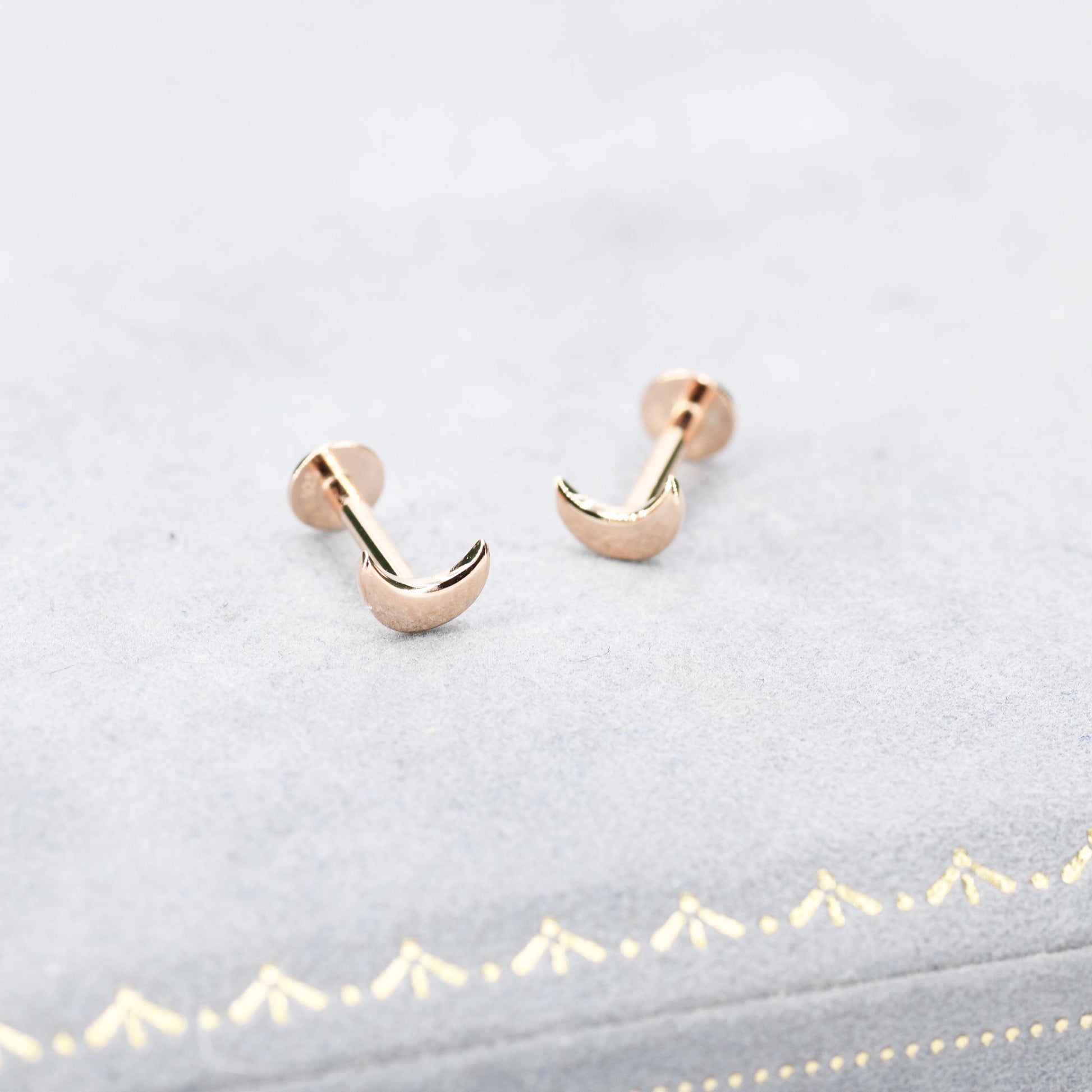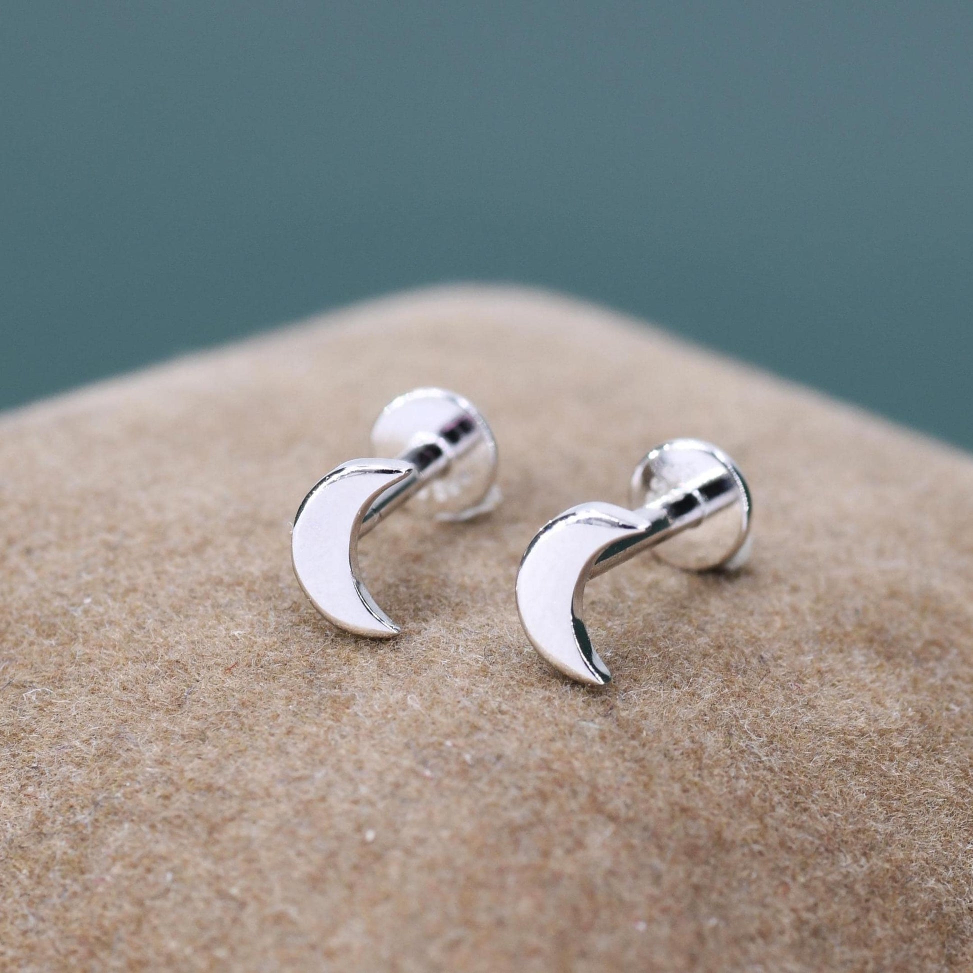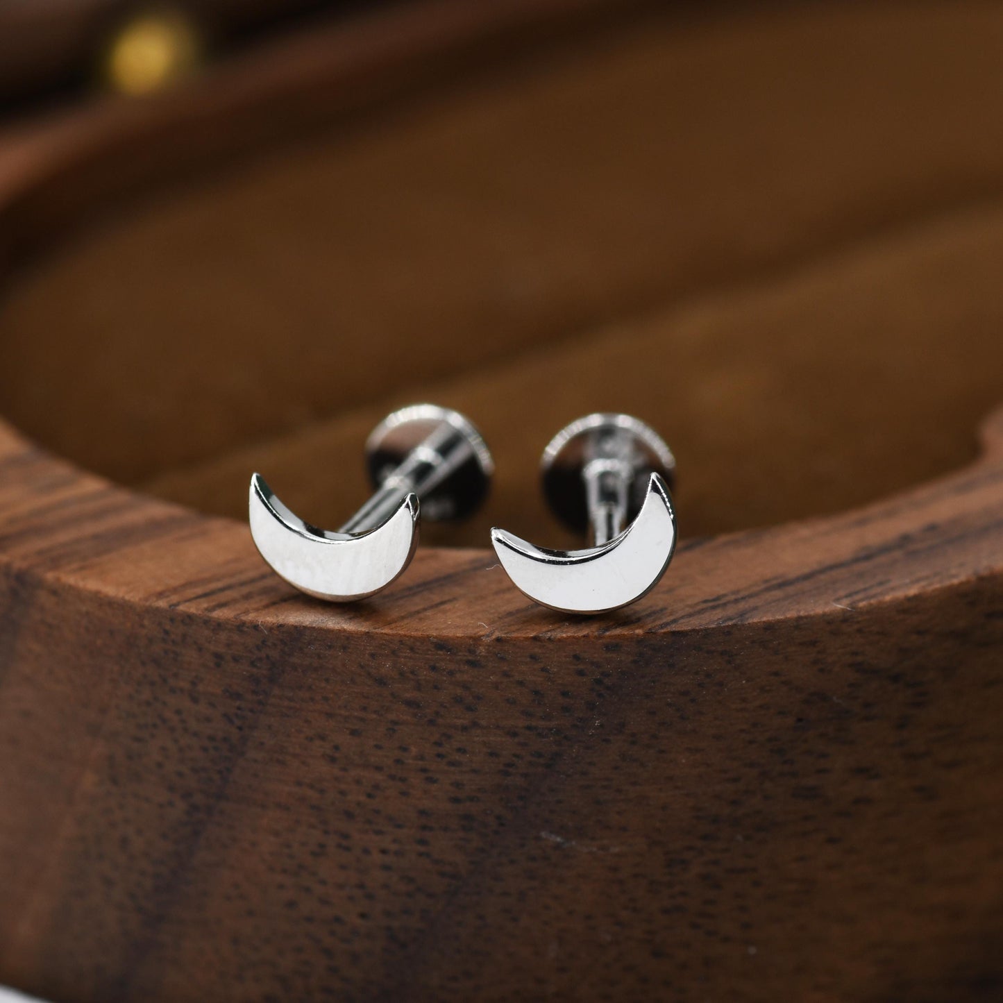 Internally Threaded Flat Back Moon Earrings in Sterling Silver, Silver or Gold or Rose Gold, Also available with Butterfly Backs