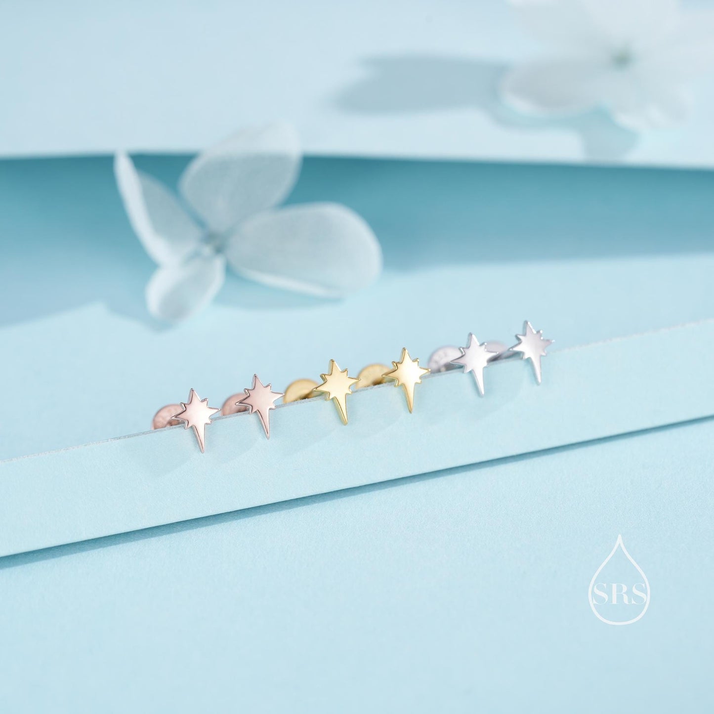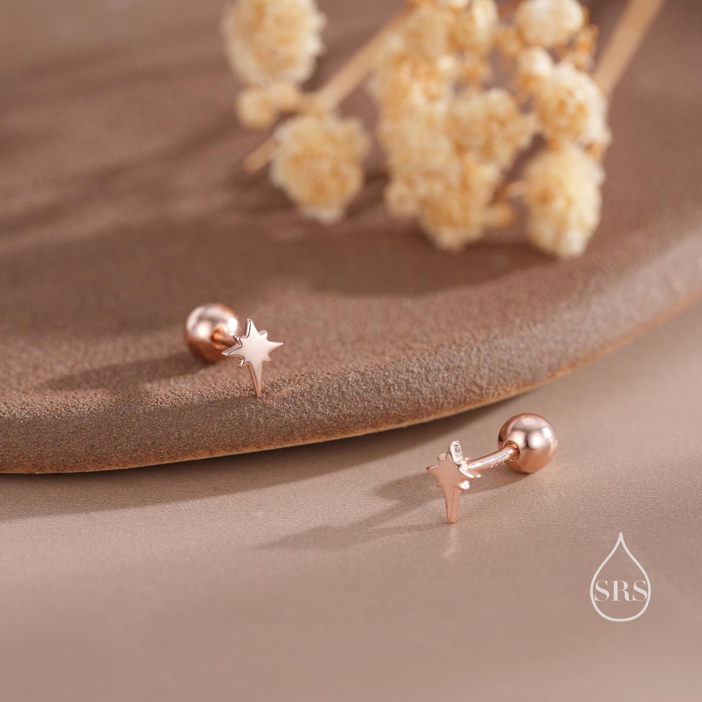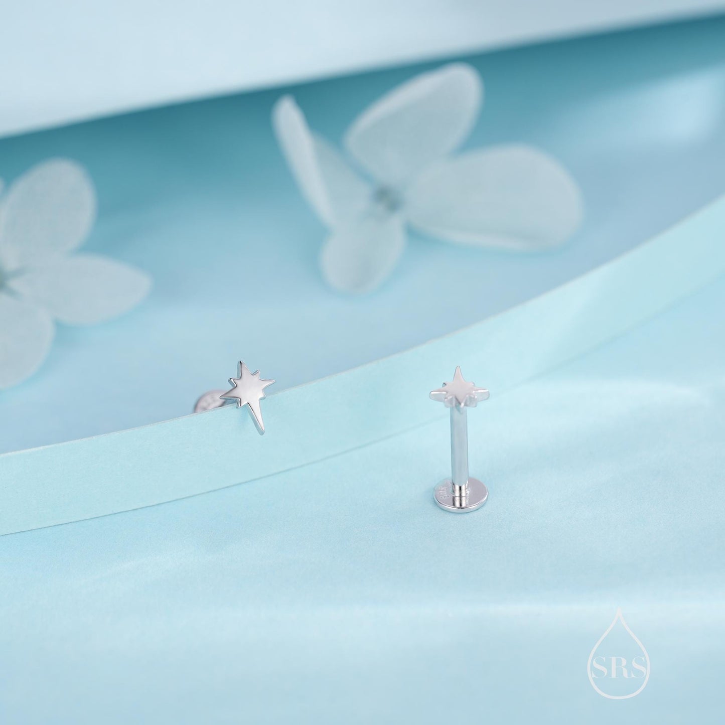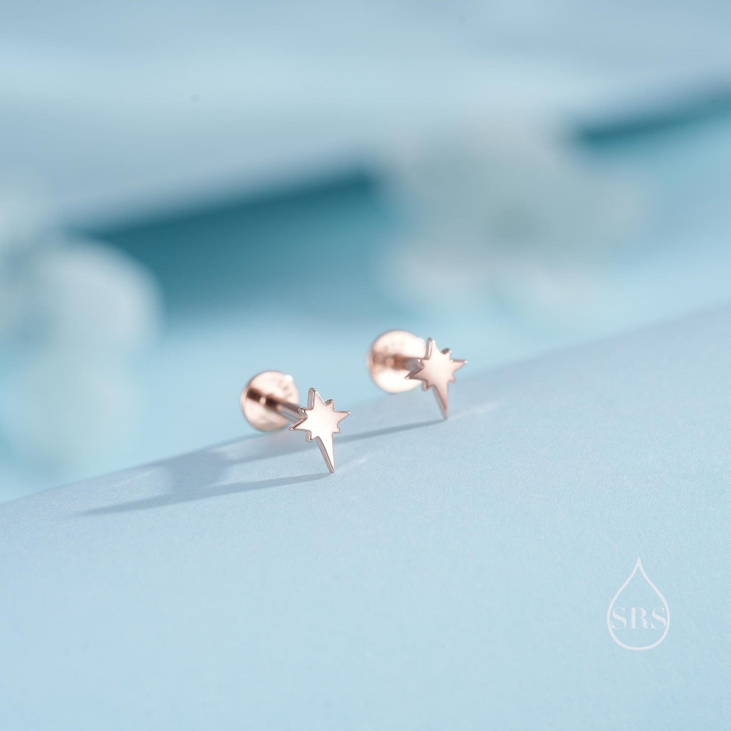 Internally Threaded Starburst Flat Back/ Screw Back / Stud Earrings in Sterling Silver, Silver, Gold or Rose Gold, Sunburst Star Earrings