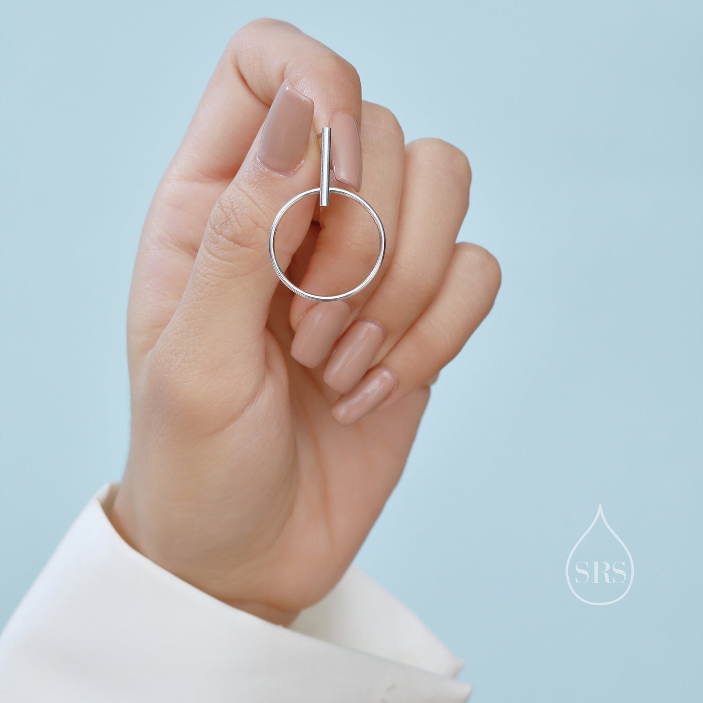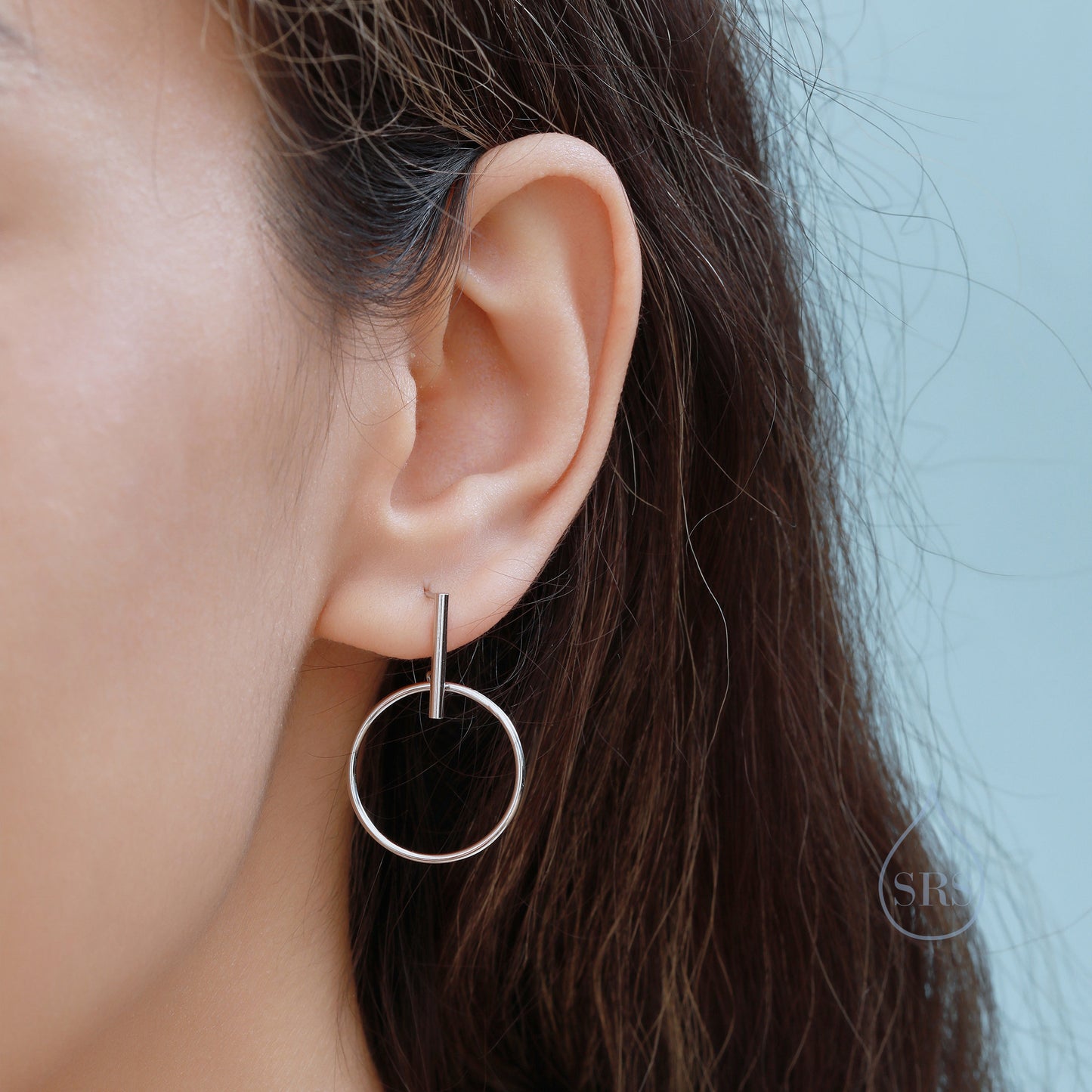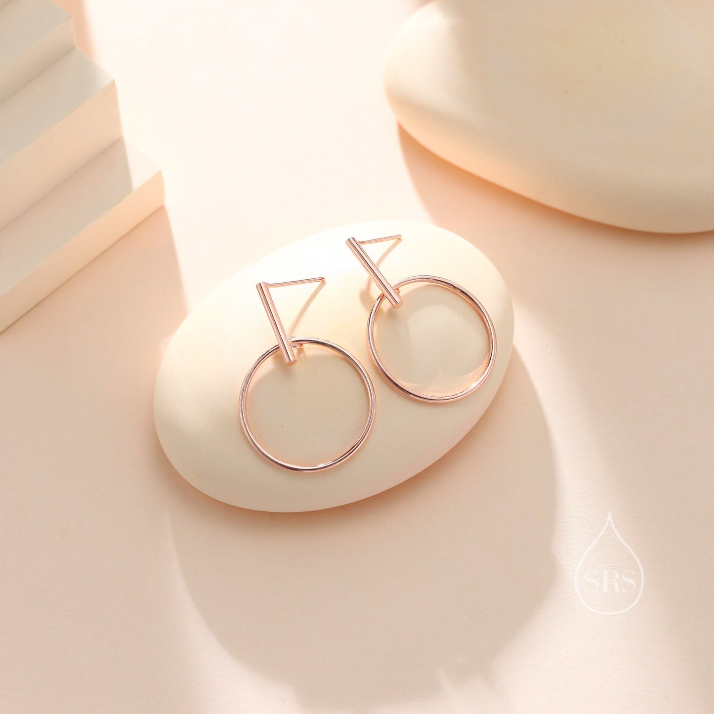 Large Dangle Circle and Bar Stud Earrings in Sterling Silver, Silver, Gold or Rose Gold, Geometric Circle Dangle Earrings