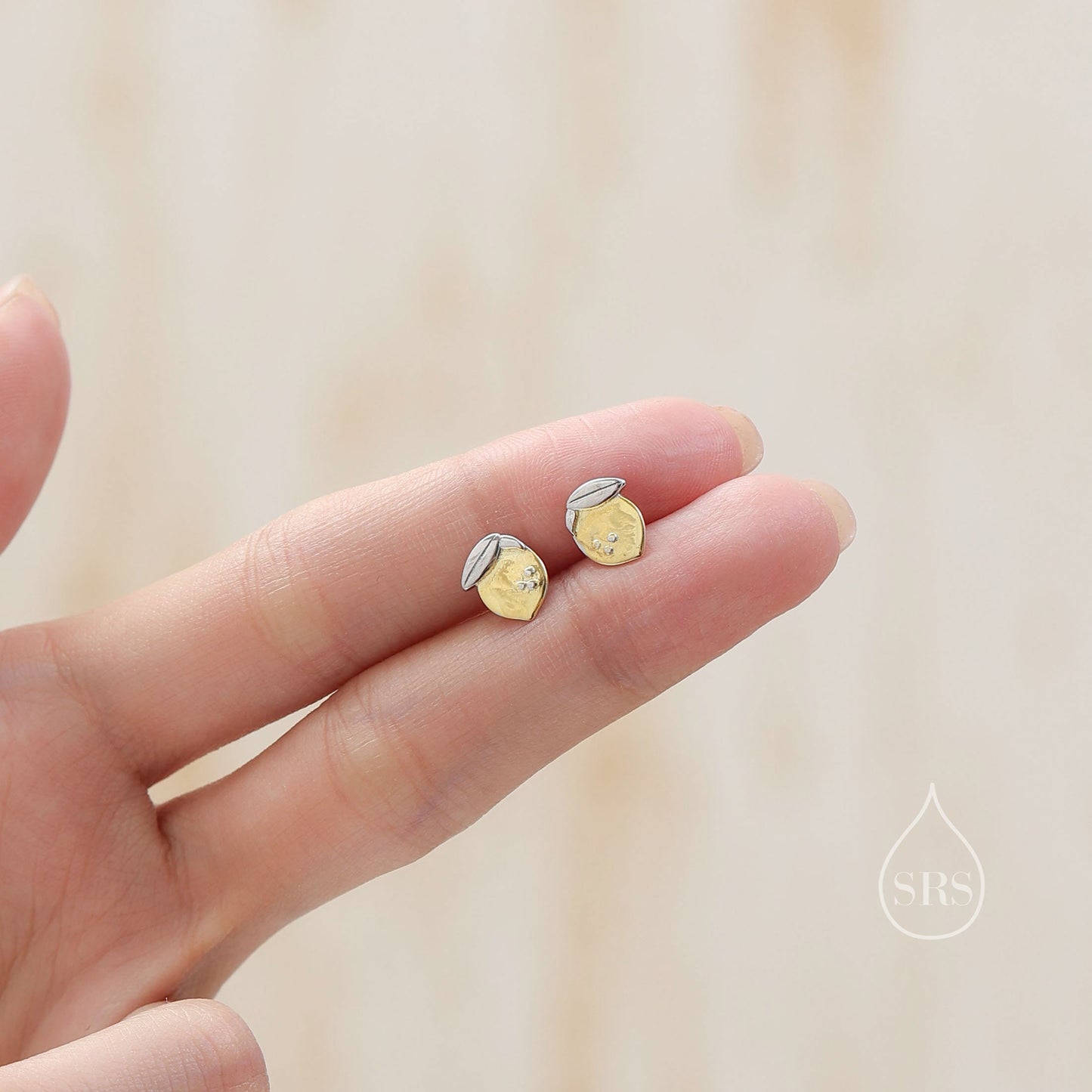 Lemon Stud Earrings in Sterling Silver, Silver and 14ct Yellow Gold Two Tone Earrings, Fruit Earrings, Summer Earrings
