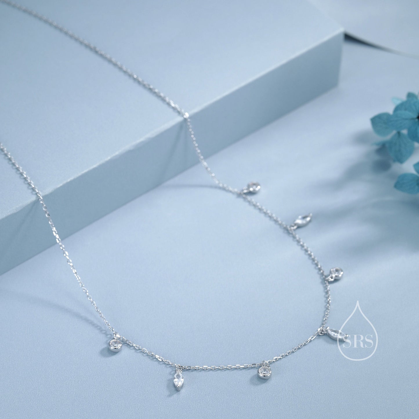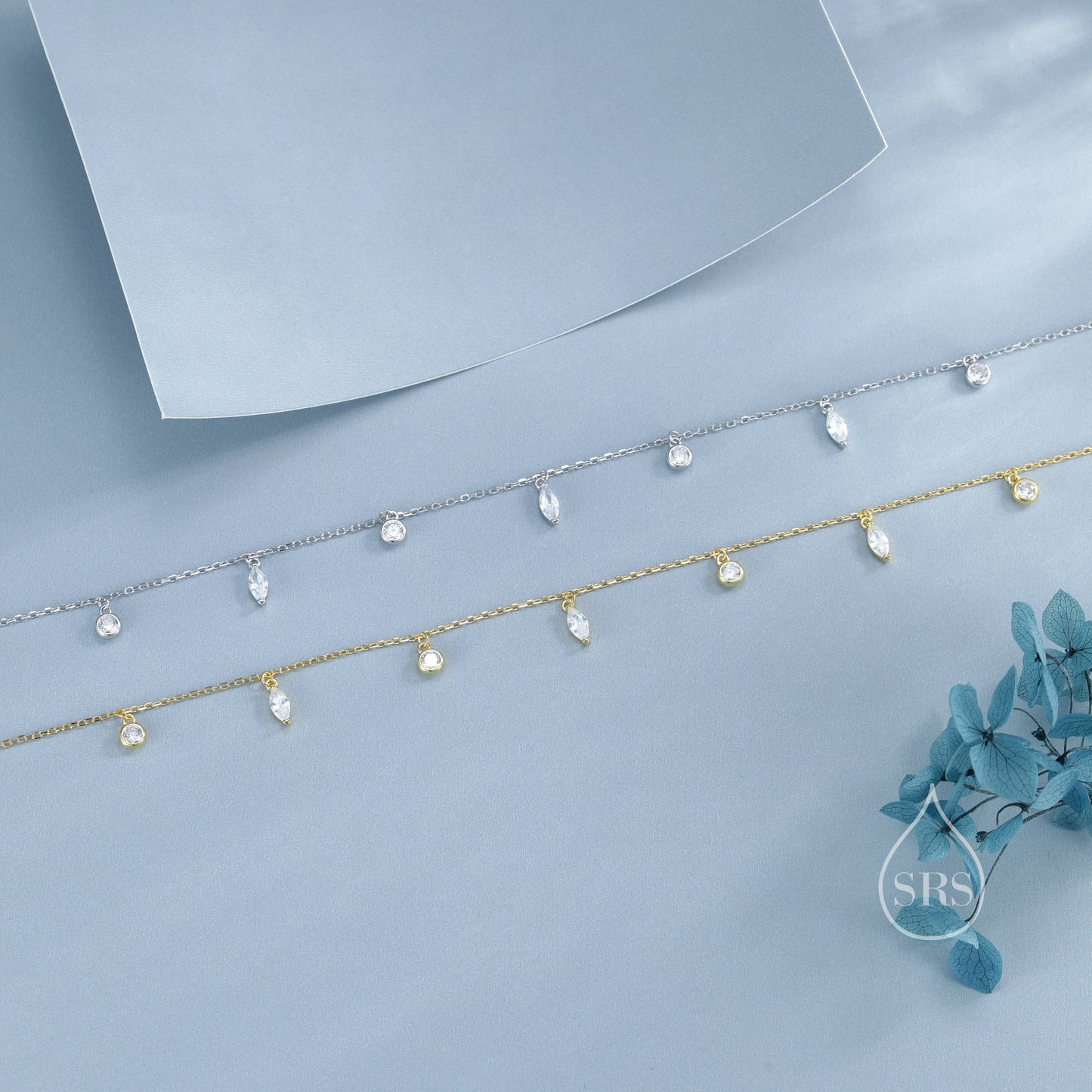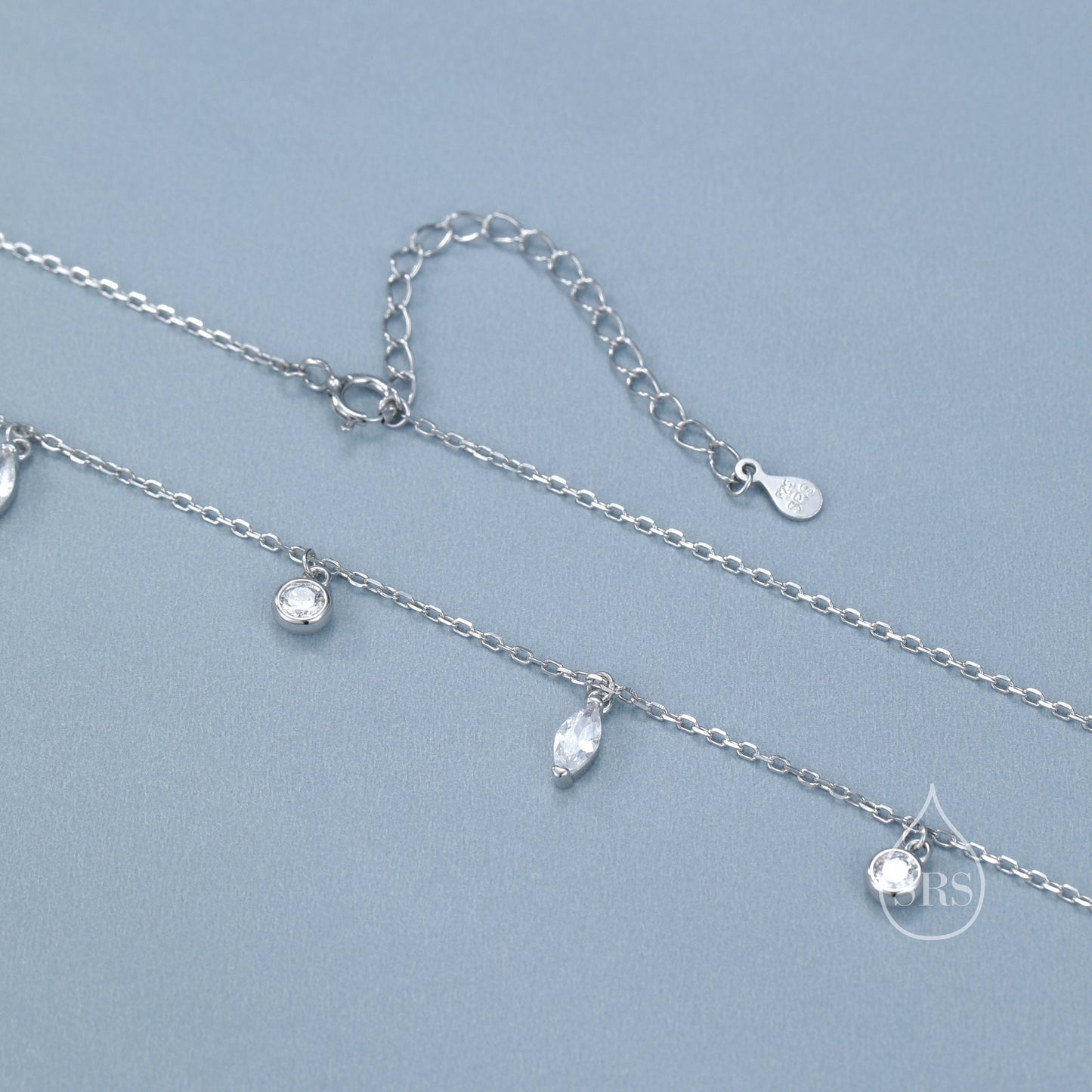 Marquise and Round CZ Dangle Necklace in Sterling Silver, Silver or Gold, Satellite Crystal Necklace, Solid Silver Motif Necklace