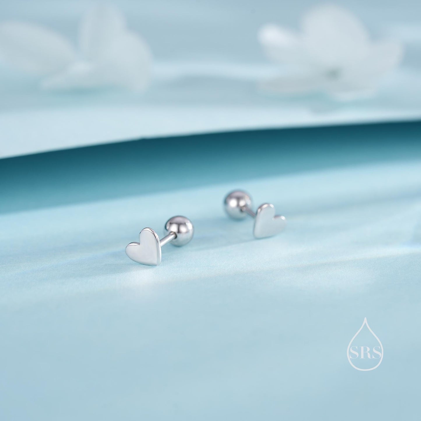 Mini Heart Internally Threaded Flat Back/Screw back(Barbell)/ Stud Earrings in Sterling Silver, Piercing Jewellery, Heart Flat Back Earrings