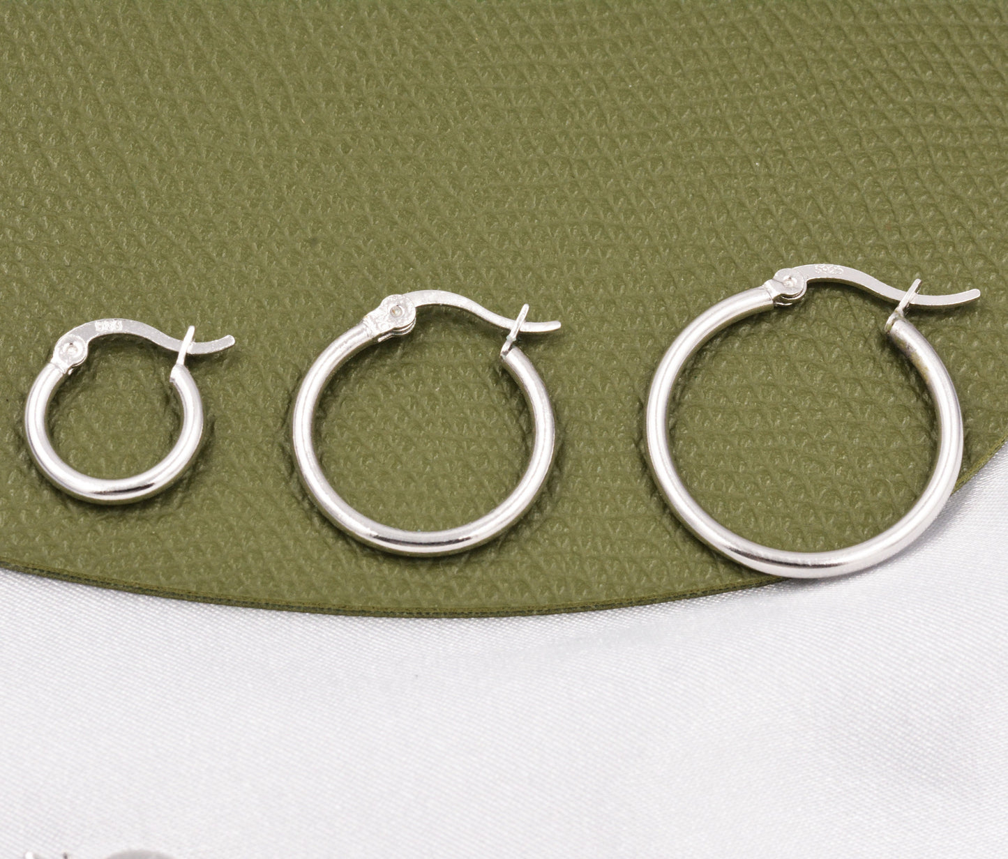 Minimalist Creole Hoop Earrings in Sterling Silver, 9mm 16mm 20mm, Lever Hoop Earrings, Simple Silver Hoops