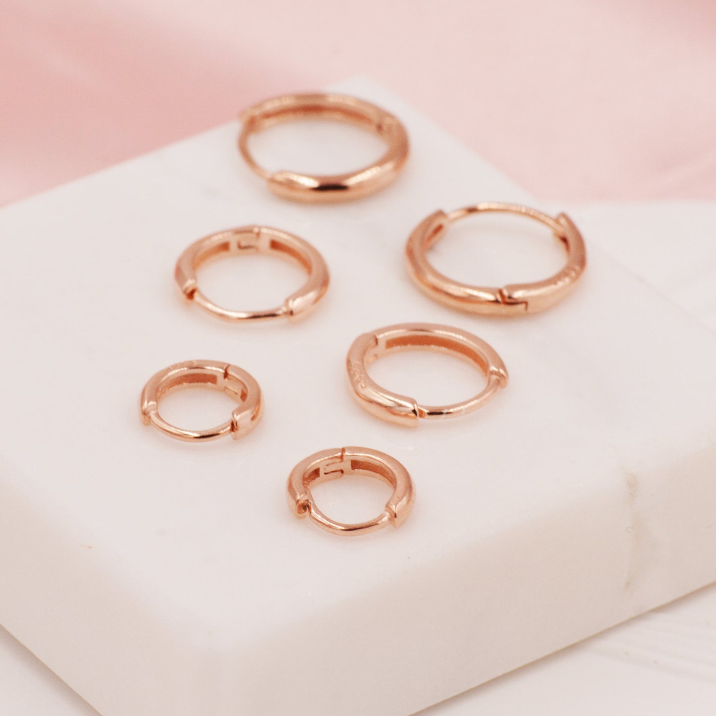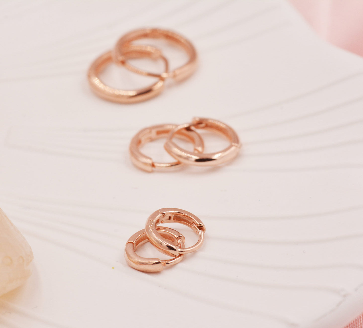 Minimalist Huggie Hoops in Sterling Silver, 6mm, 8mm and 10mm Skinny Hoops, Rose Gold or Gold, Simple Hoop Earrings