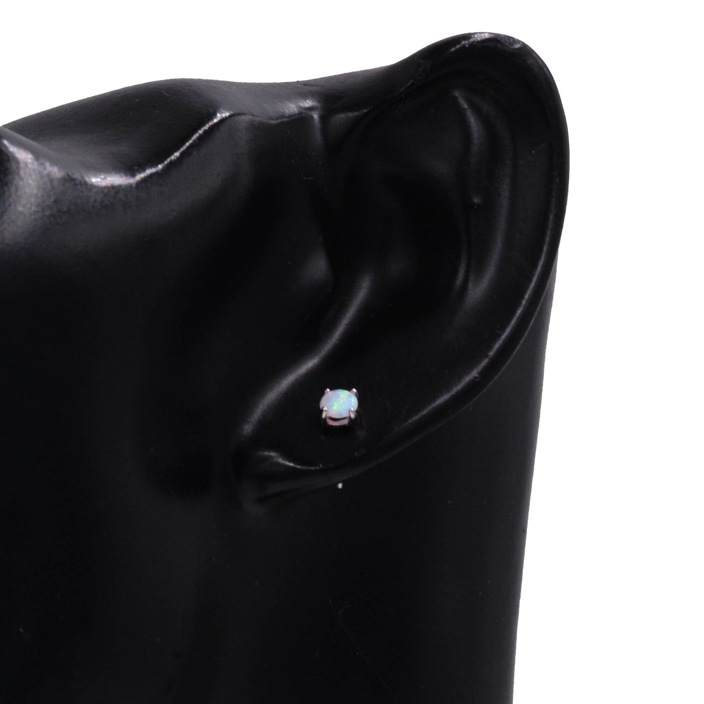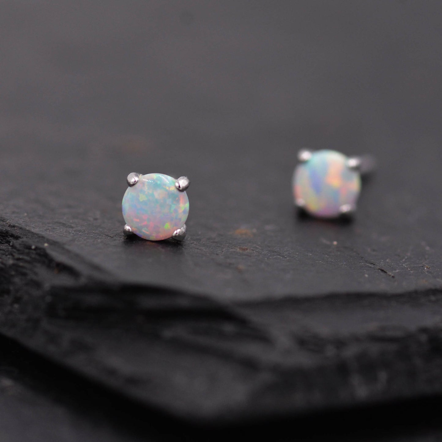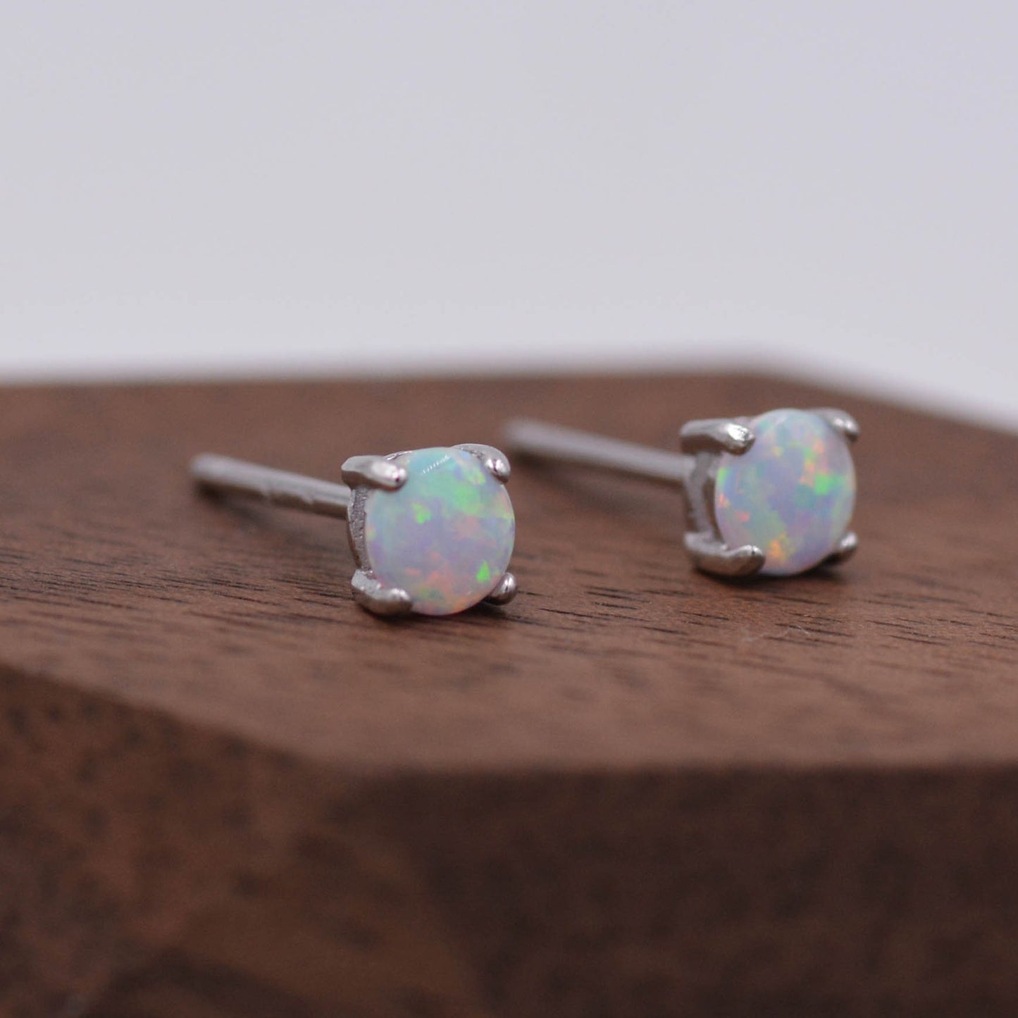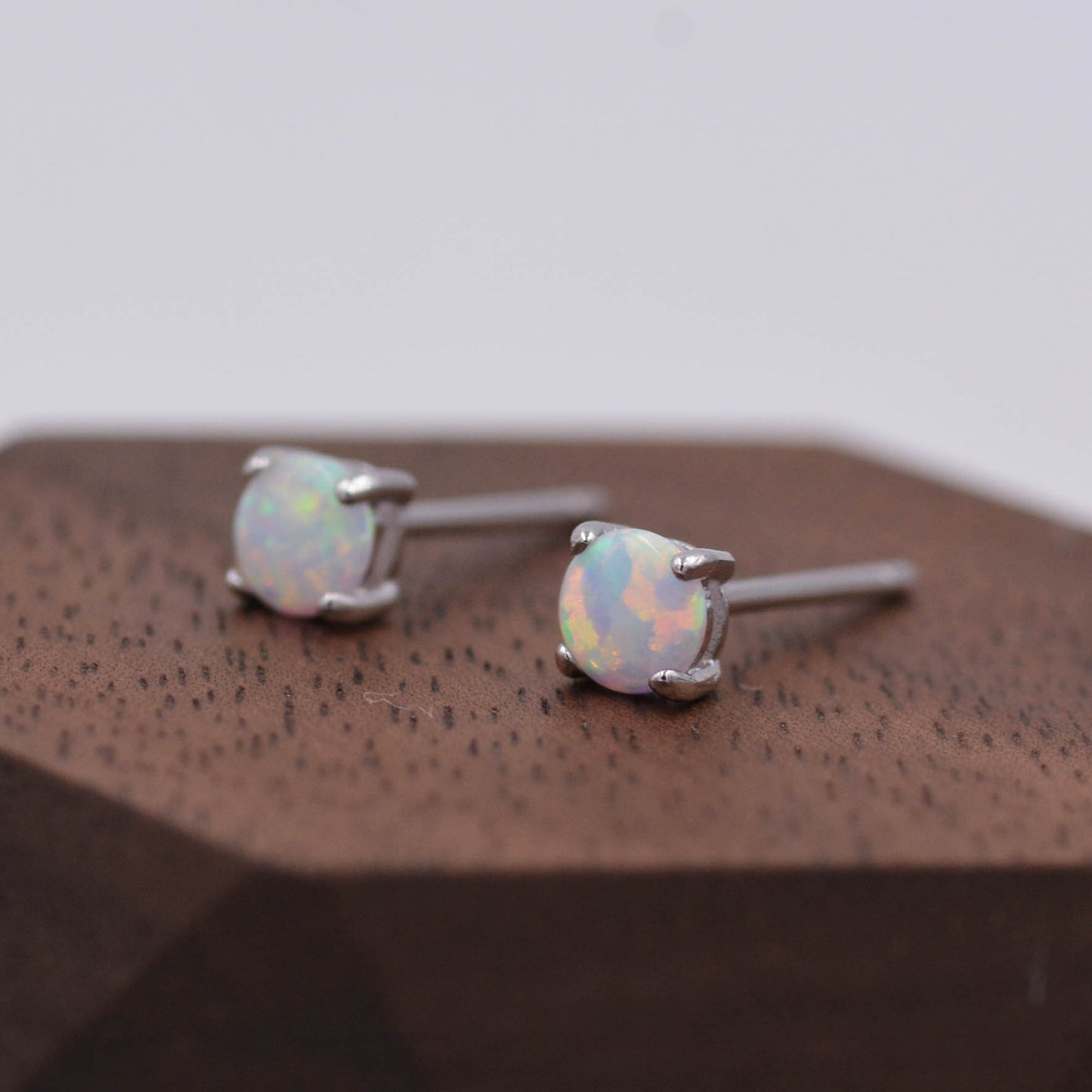 Minimalist Opal Stud Earrings in Sterling Silver, Simulated White Opal, Tiny Circle Dot Jewellery