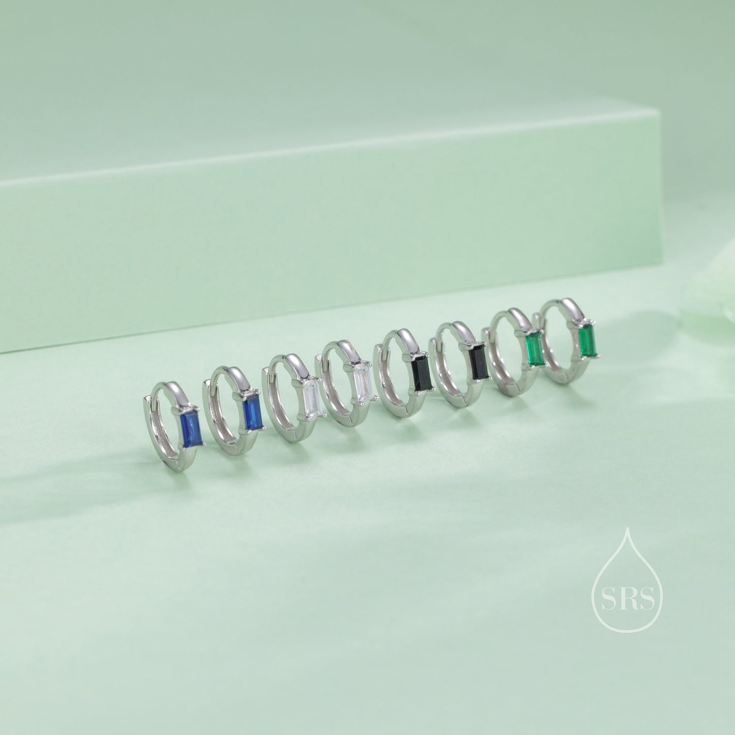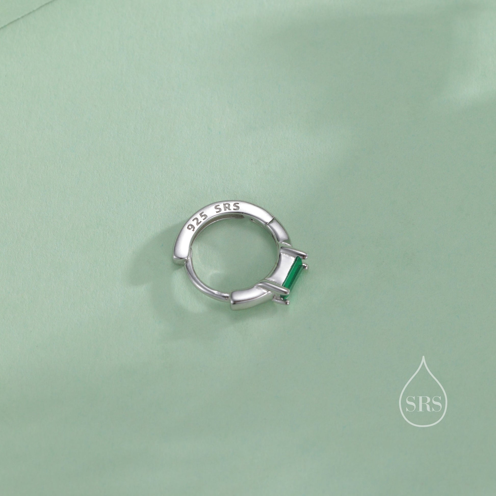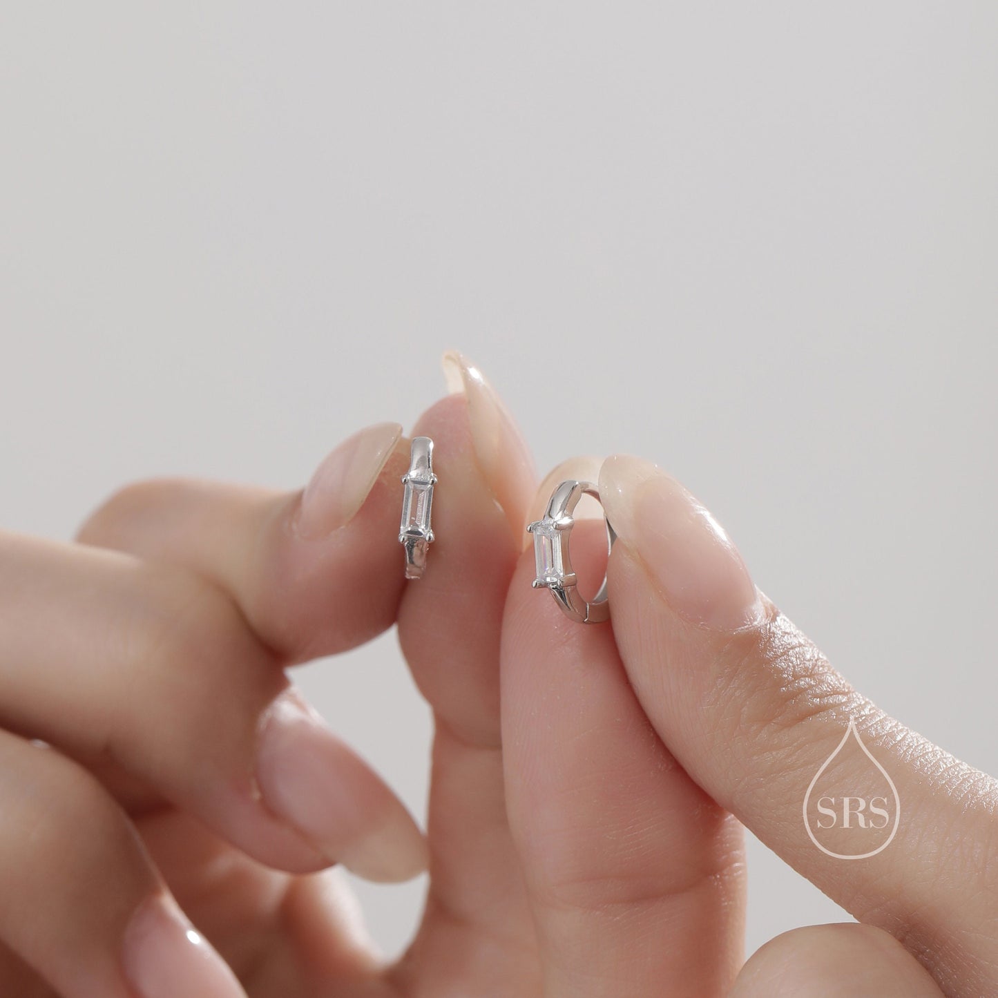Minimalist Single Baguette Cut CZ Huggie Hoop in Sterling Silver, Silver or Gold, Minimalist Simple Hoop Earrings