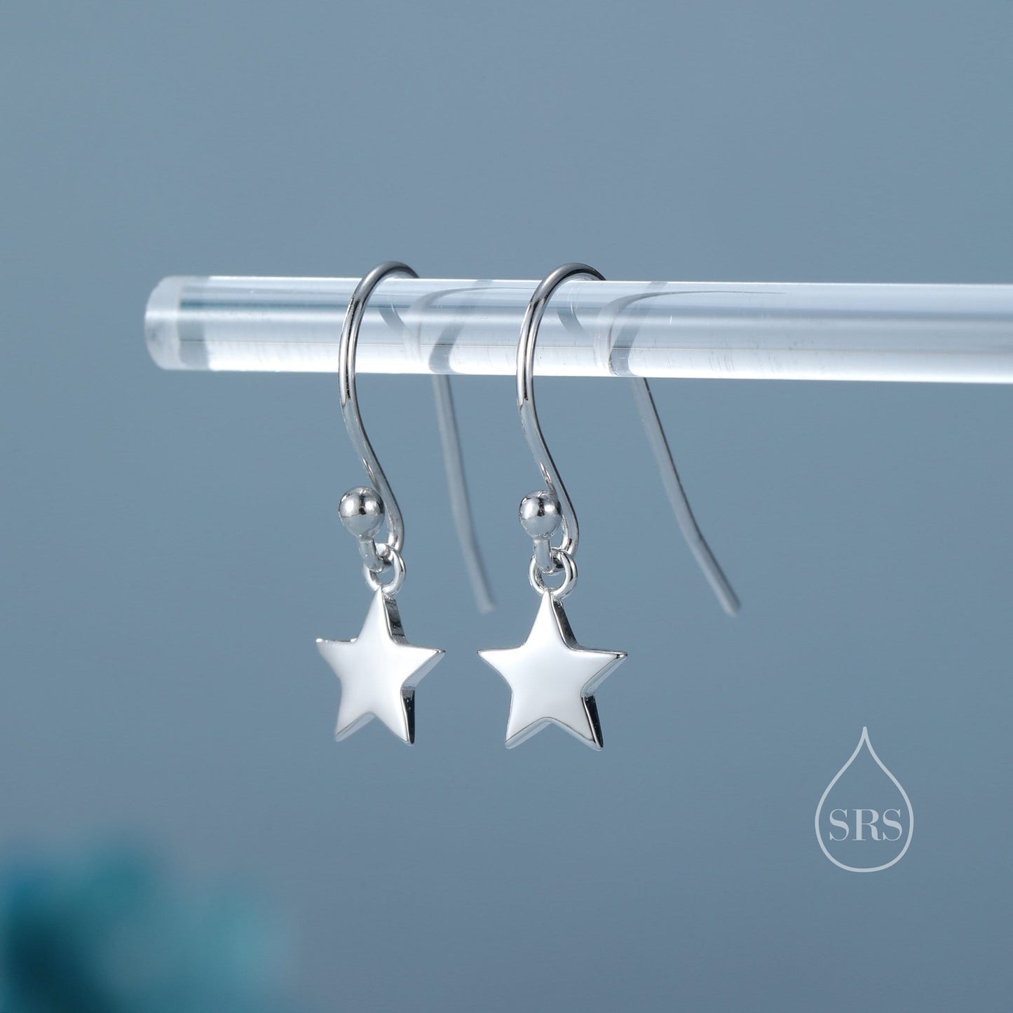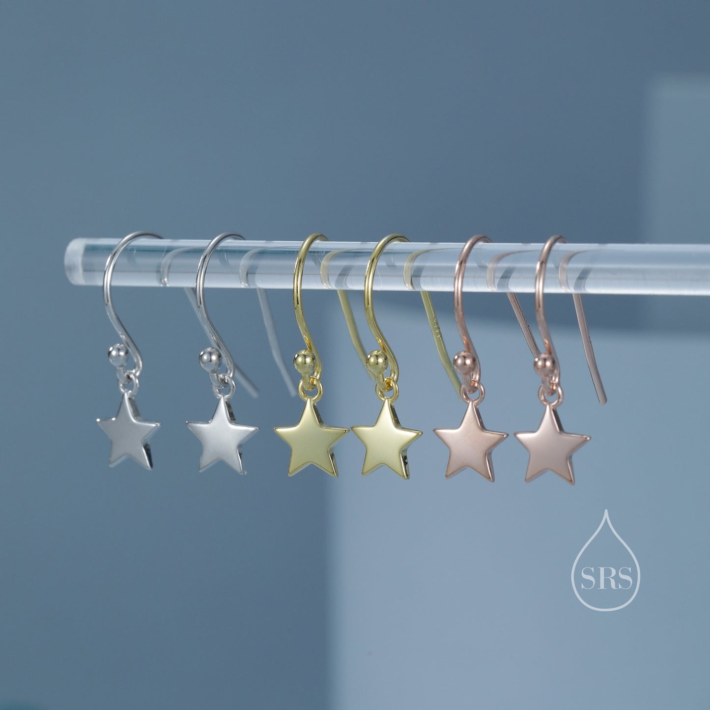 Minimalist Star Dangle Drop Hook Earrings in Sterling Silver, Silver or Gold or Rose Gold, Tiny Star Dangle Earrings