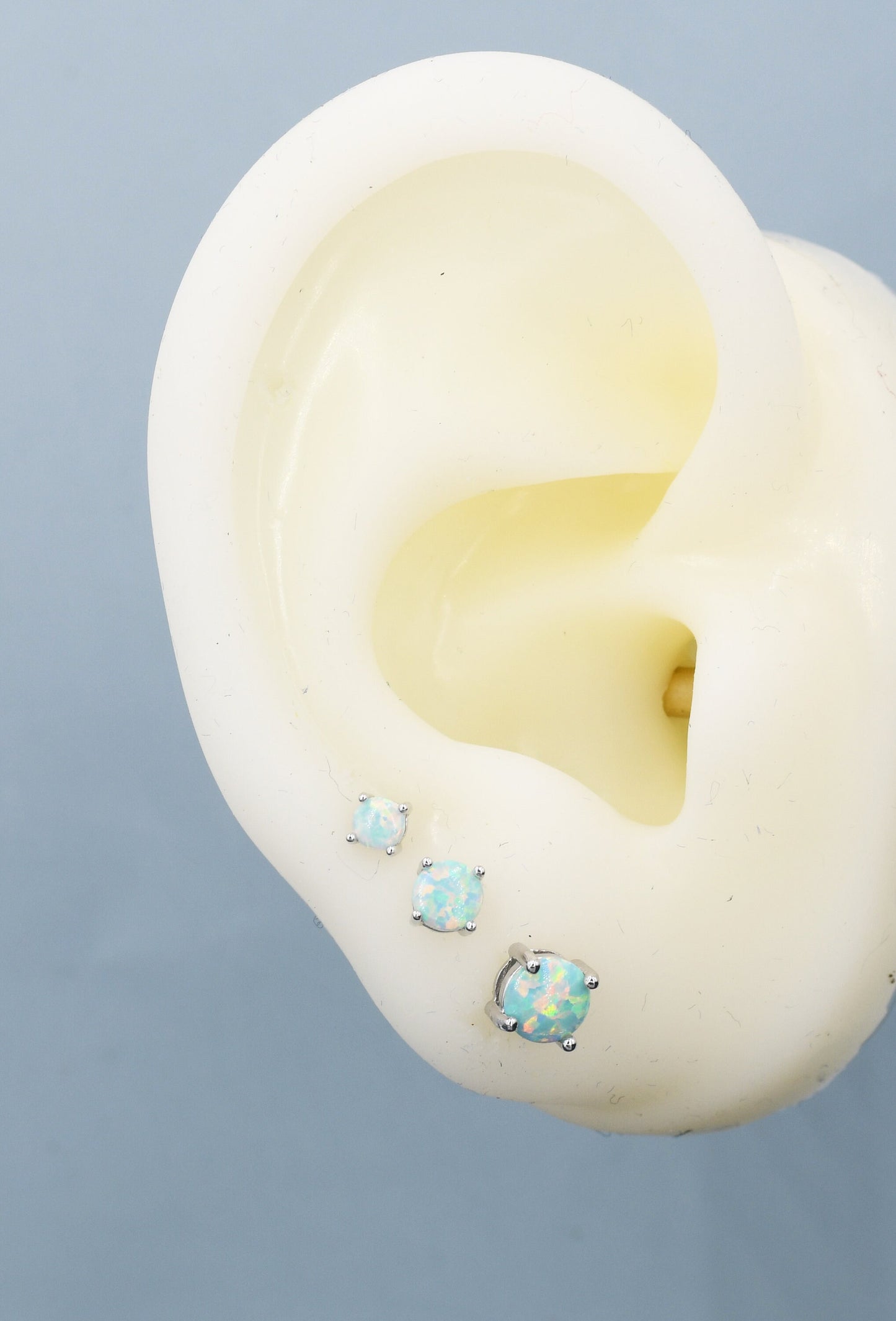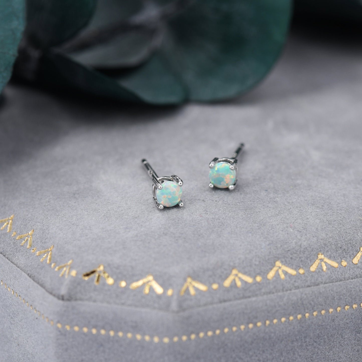 Mint Green Opal Stud Earrings in Sterling Silver - 3 sizes 3mm 4mm 5mm - Lab Opal Stud Earrings - Semi Precious Gemstone