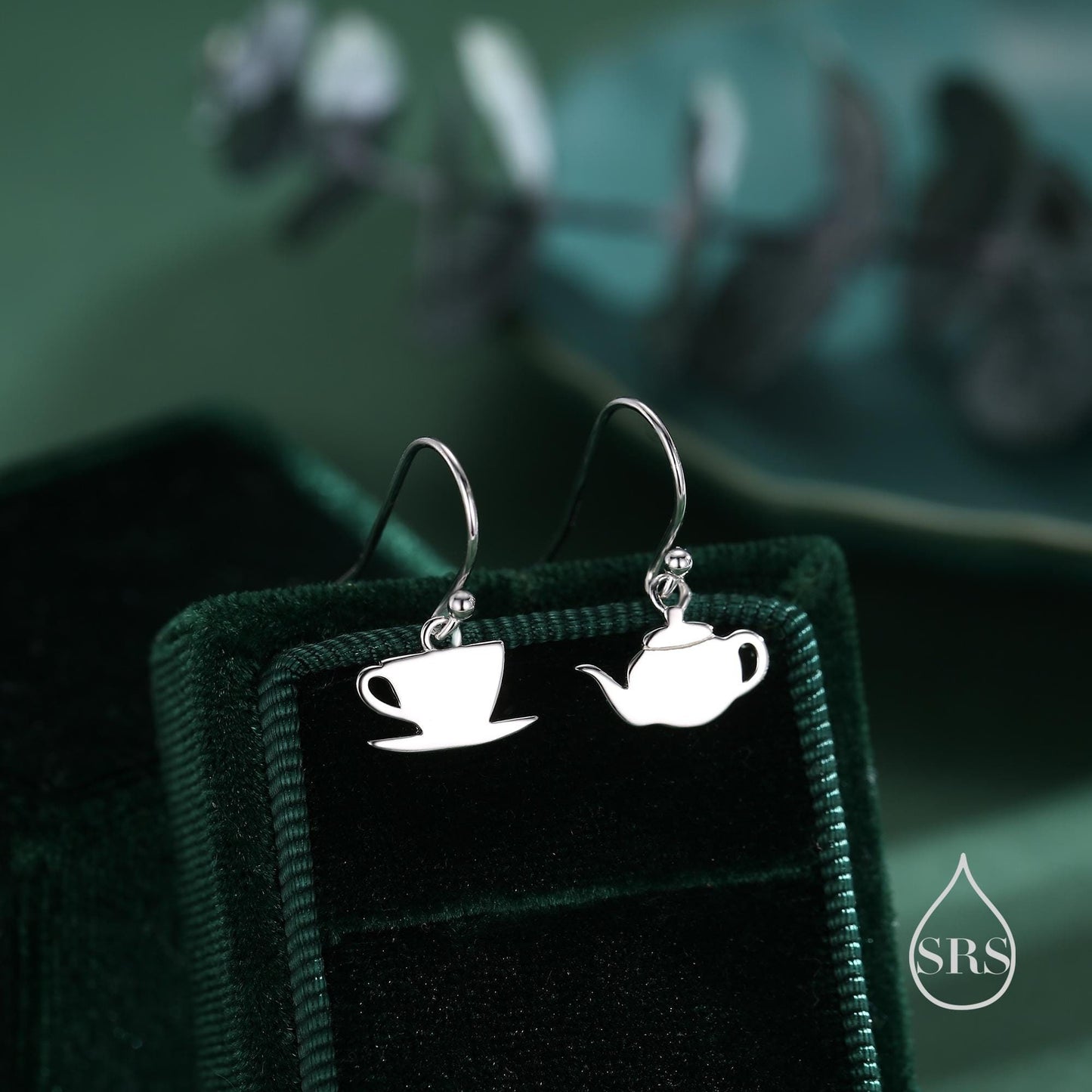 Mismatched Teapot and Tea Drop Hook Earrings in Sterling Silver, Silver or Gold or Rose Gold, Asymmetric Teacup Earrings,