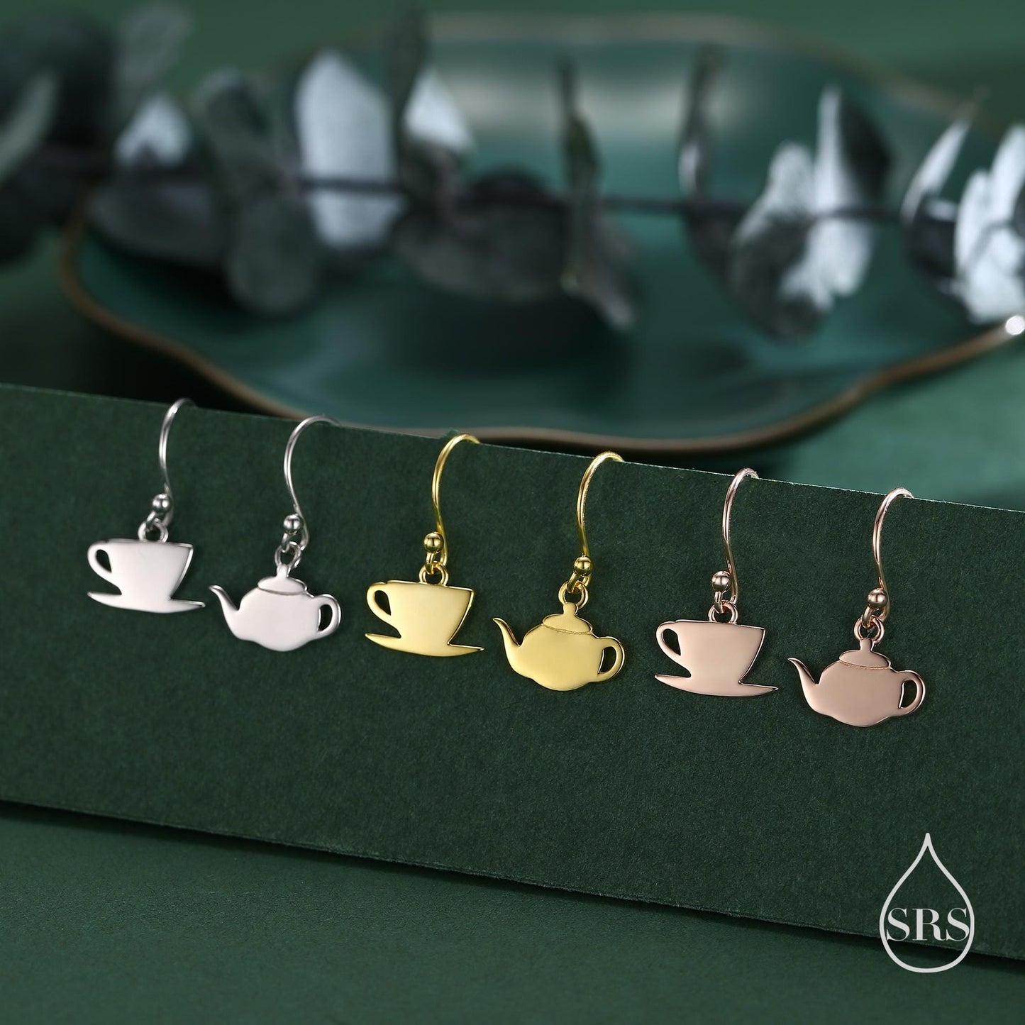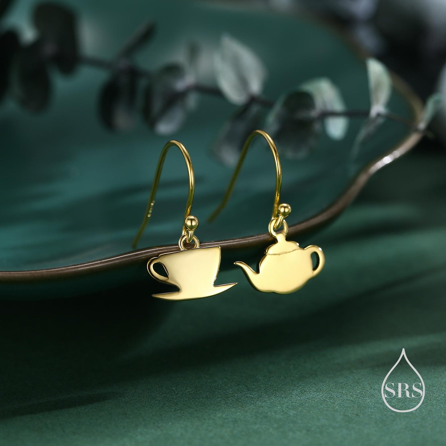 Mismatched Teapot and Tea Drop Hook Earrings in Sterling Silver, Silver or Gold or Rose Gold, Asymmetric Teacup Earrings