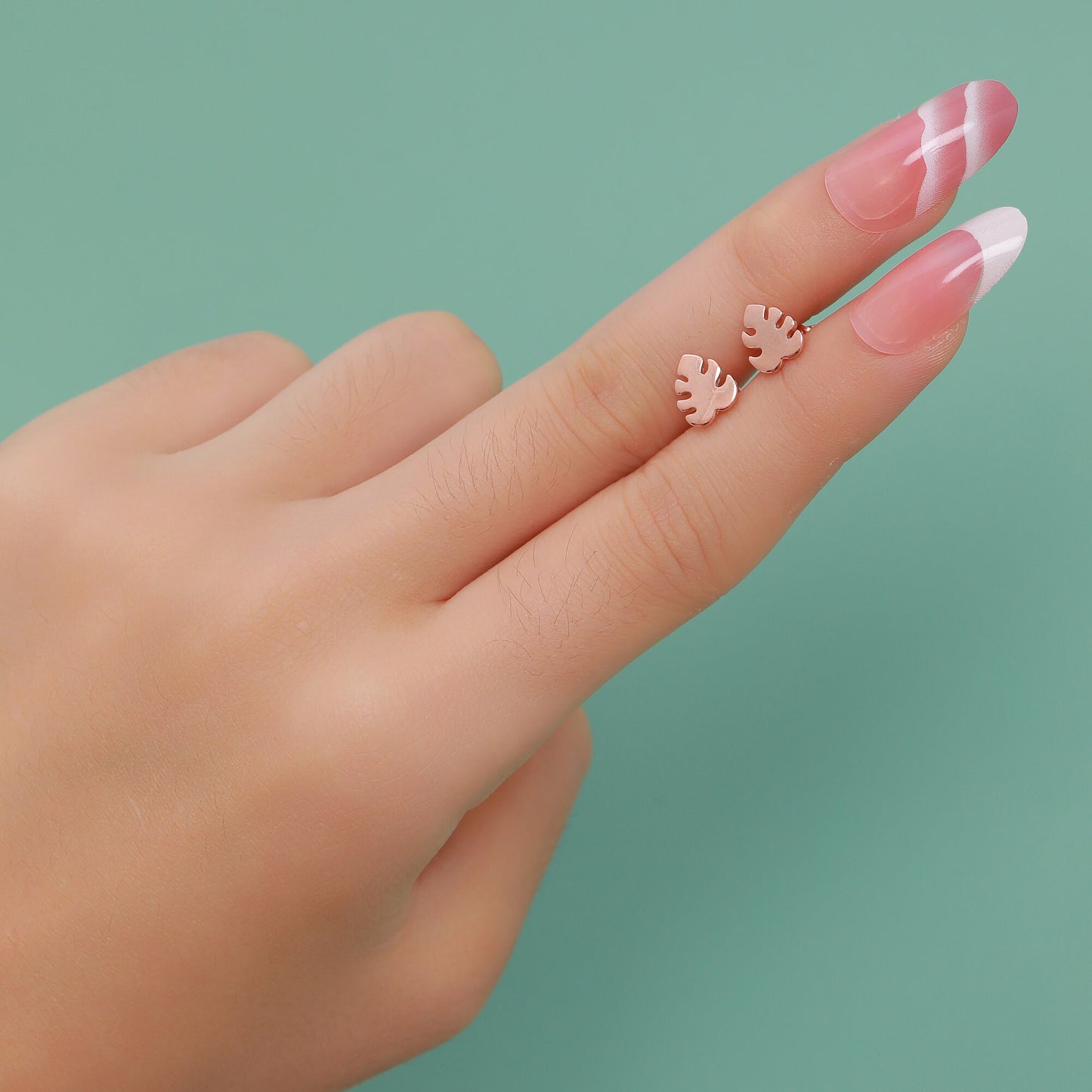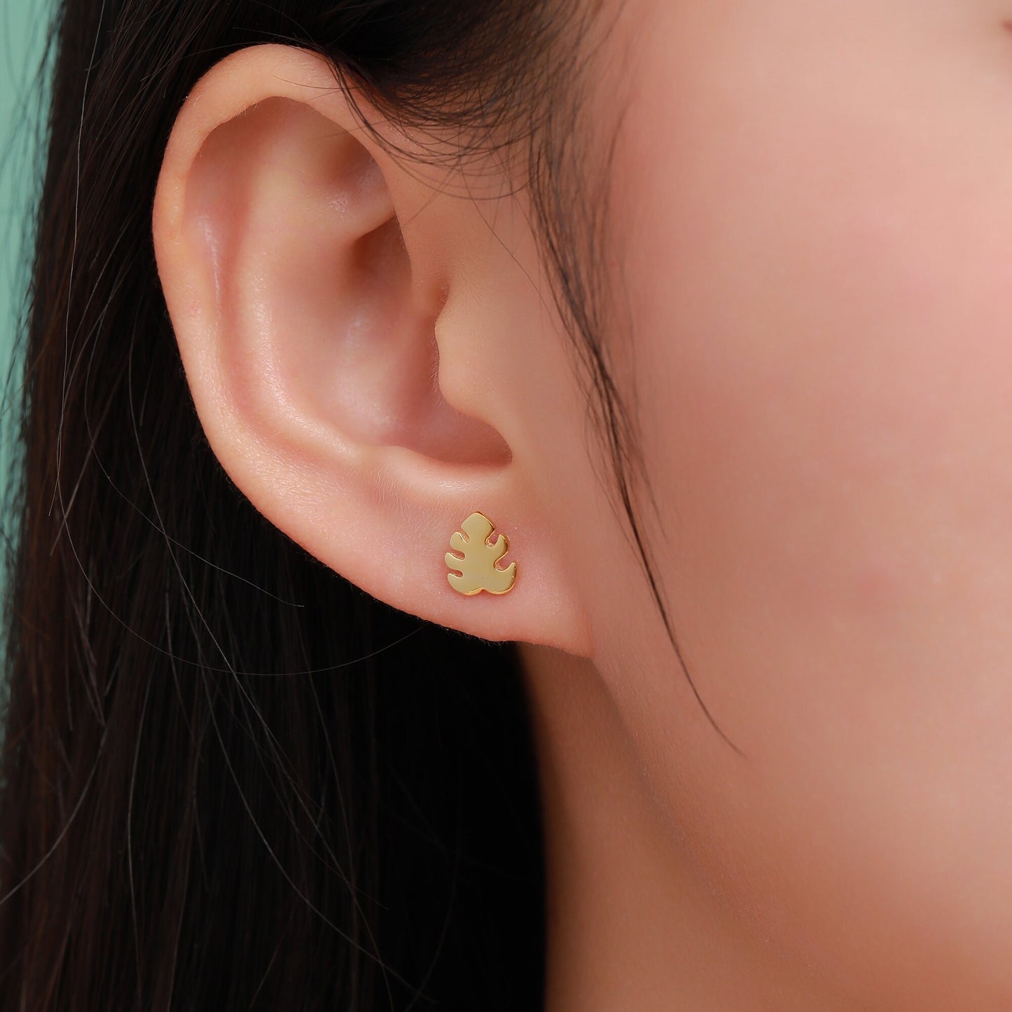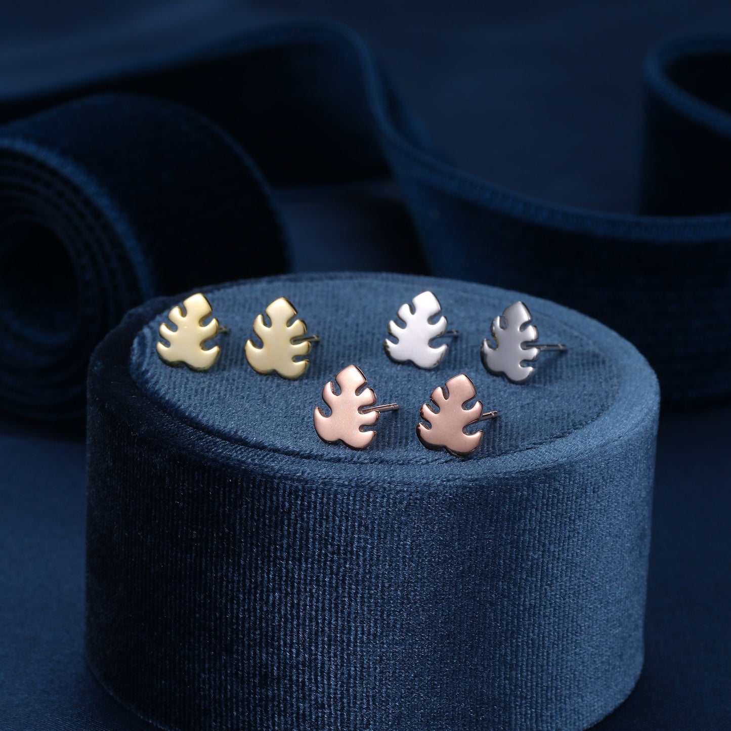 Monstera Earrings in Sterling Silver, Silver, Gold and Rose Gold, Monstera Leaf Stud Earrings, Leaf Earrings, Plant Earrings, Nature
