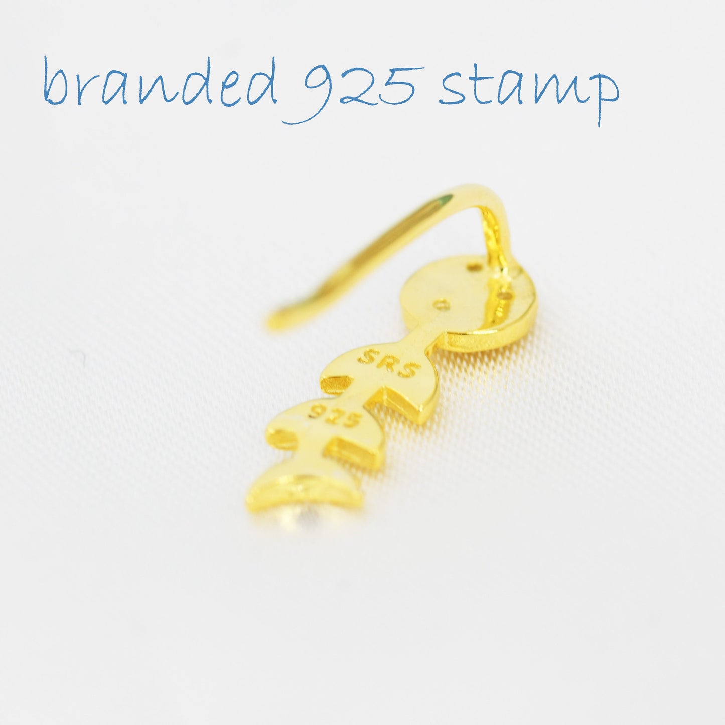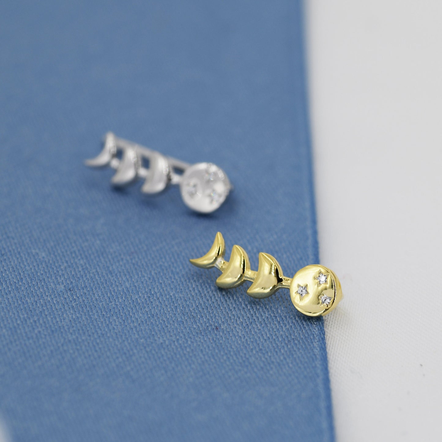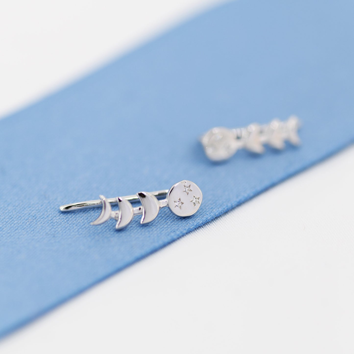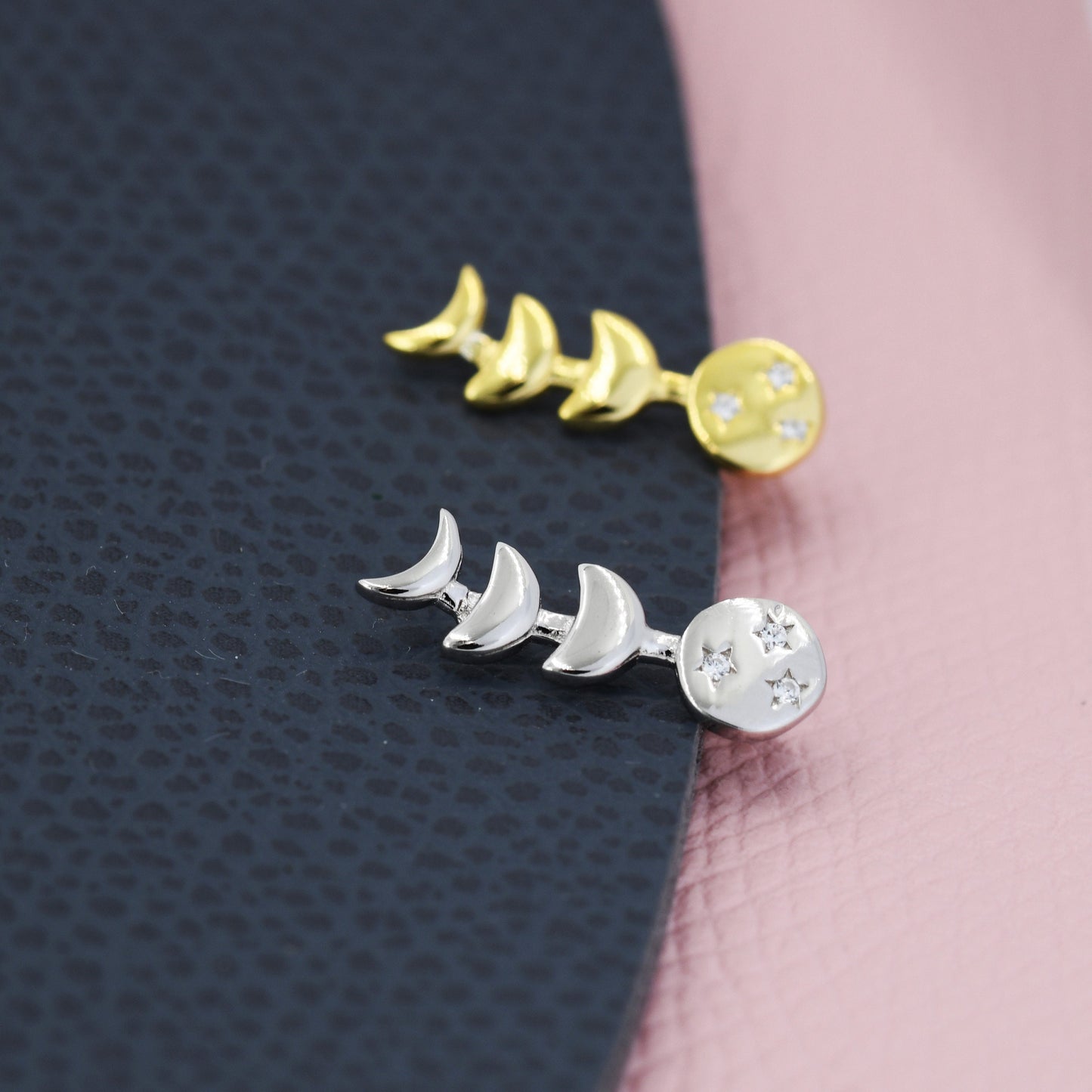 Moon Phase Crawler Earrings in Sterling Silver, Silver or Gold, Moon and Star Climber Earrings, Ear Climbers, Celestial Earrings
