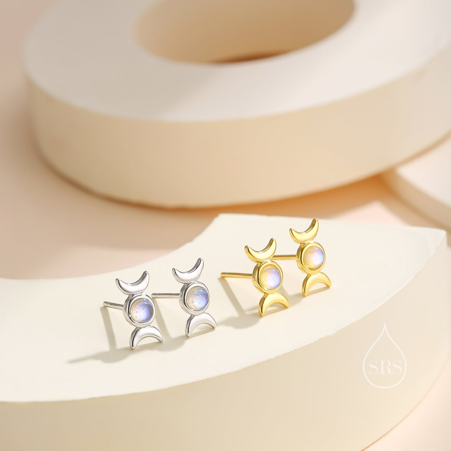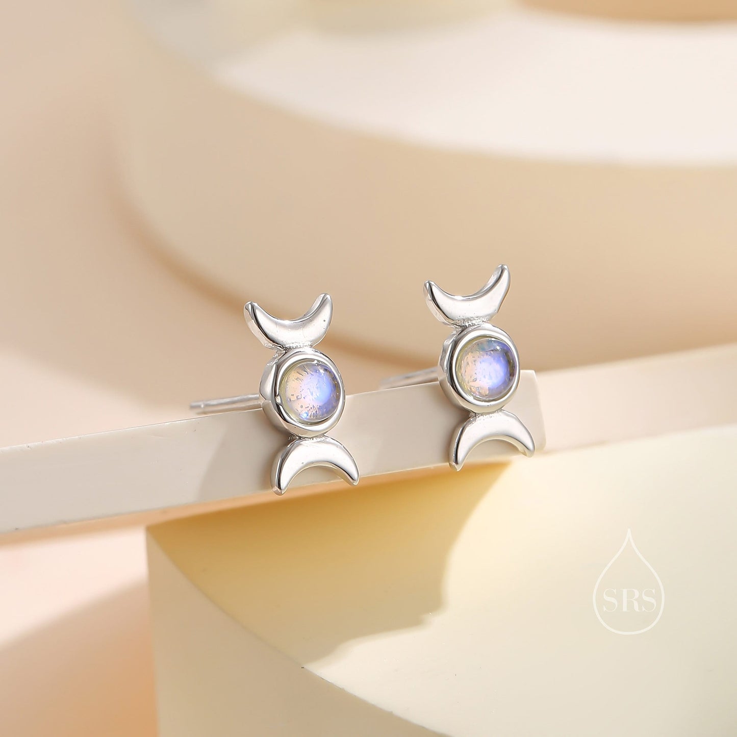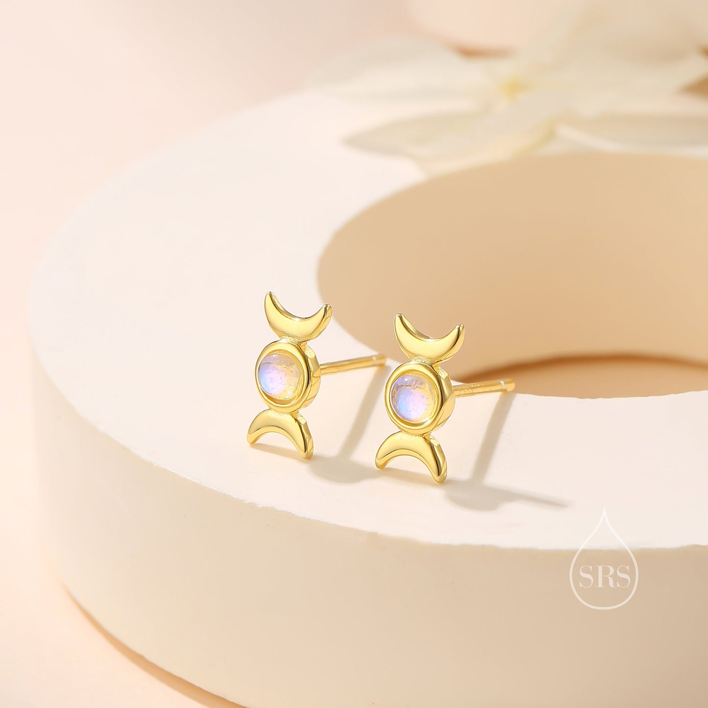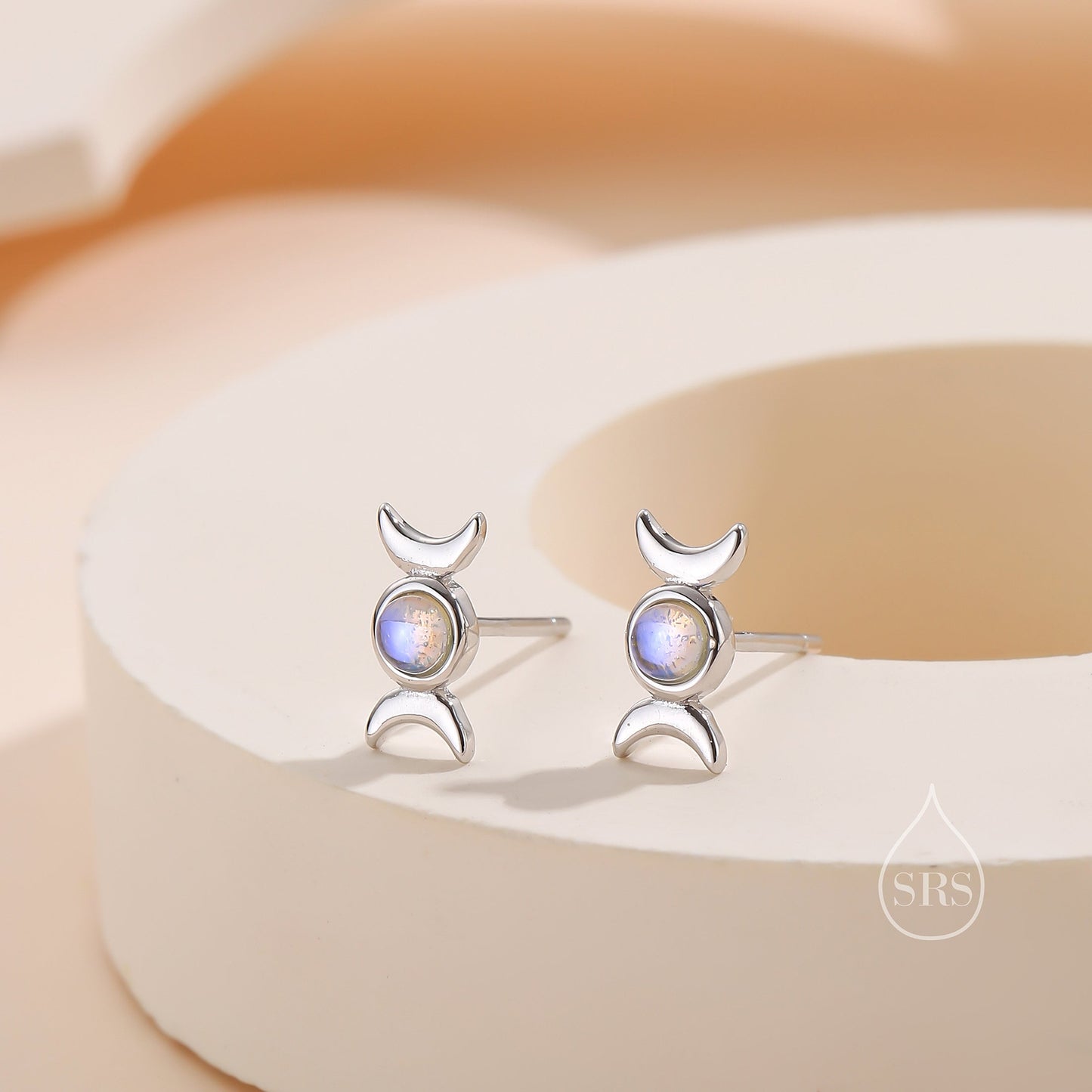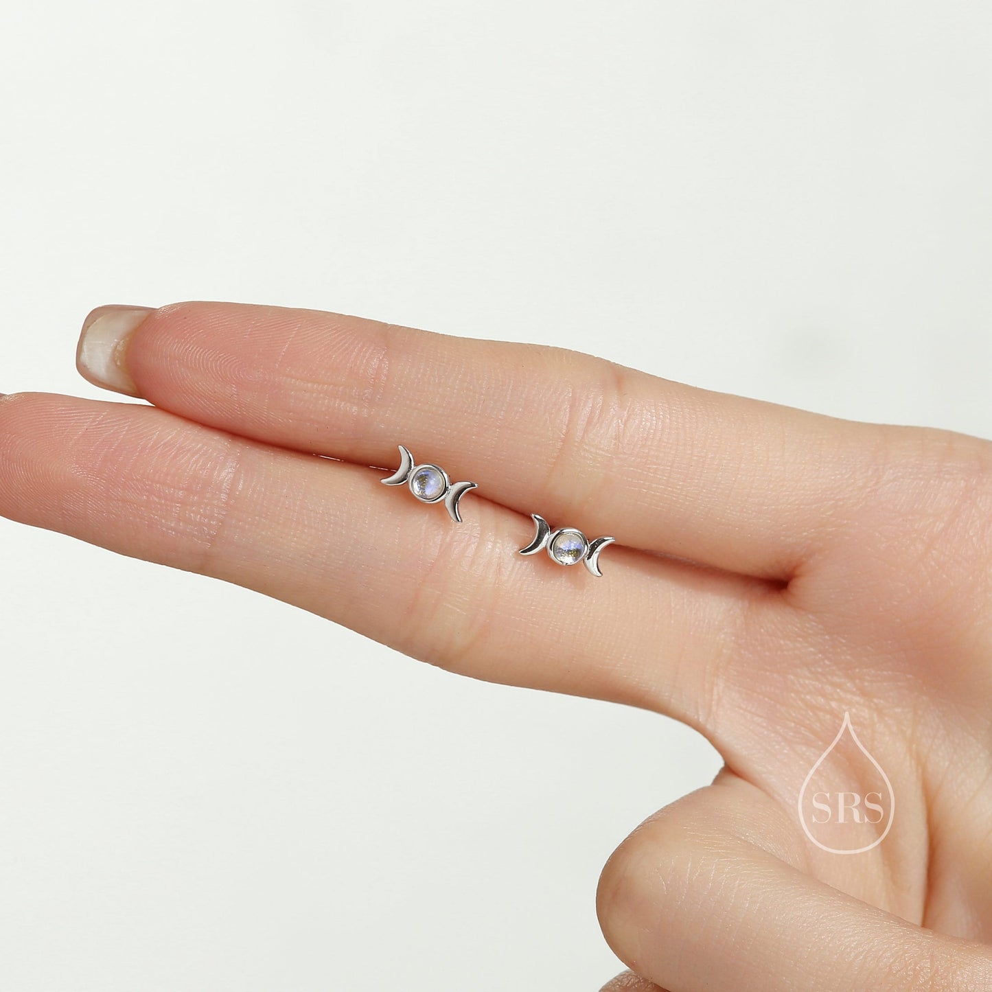Moon Phase Moonstone Stud Earrings in Sterling Silver, Silver or Gold, Delicate Moon Earrings, Moonstone Earrings, Celestial Earrings
