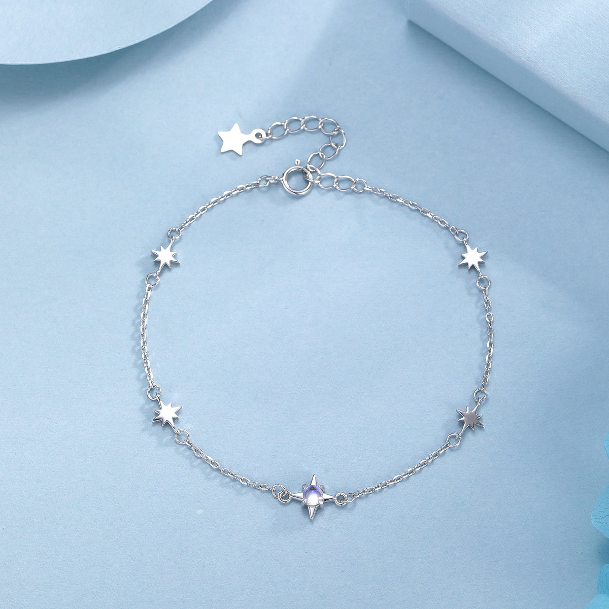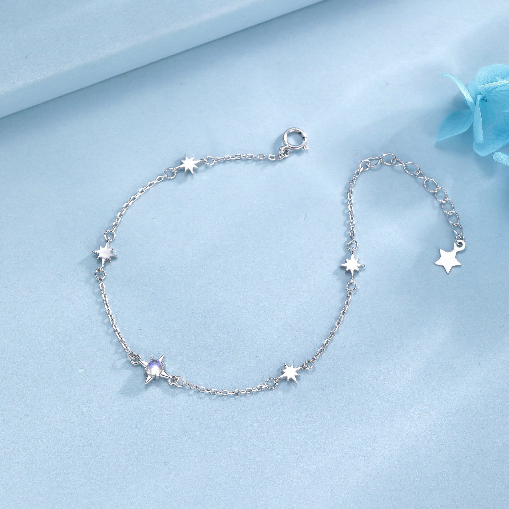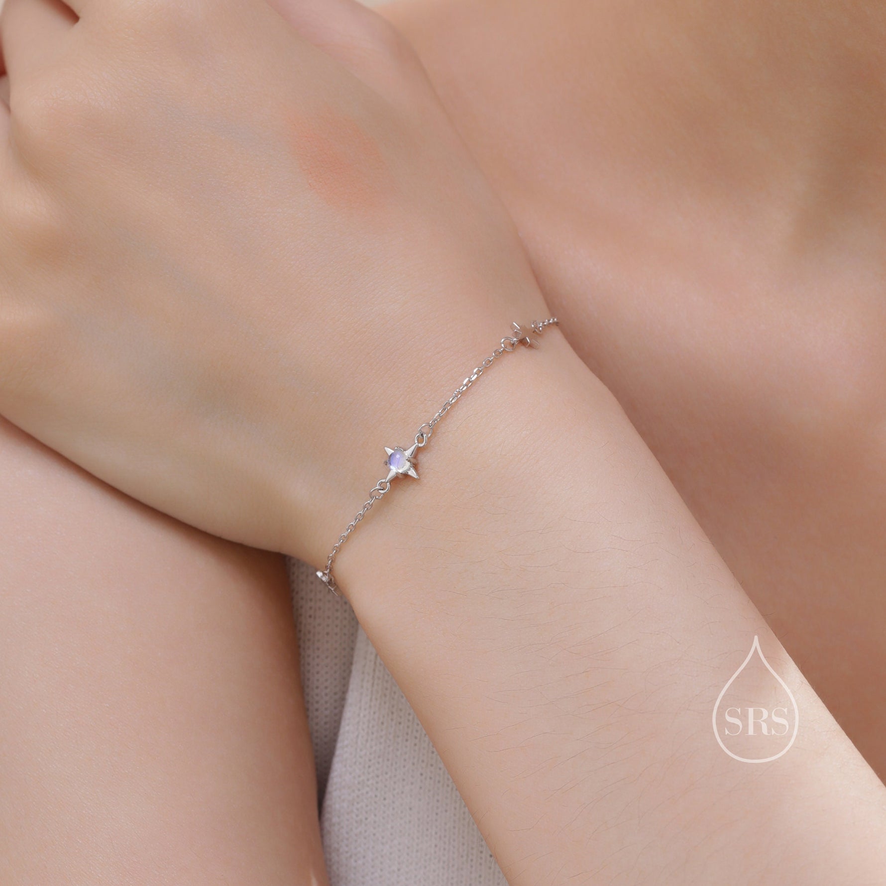 Moonstone Starburst Bracelet in Sterling Silver, Silver or Gold, Dainty Star Motif Bracelet, Starburst Bracelet