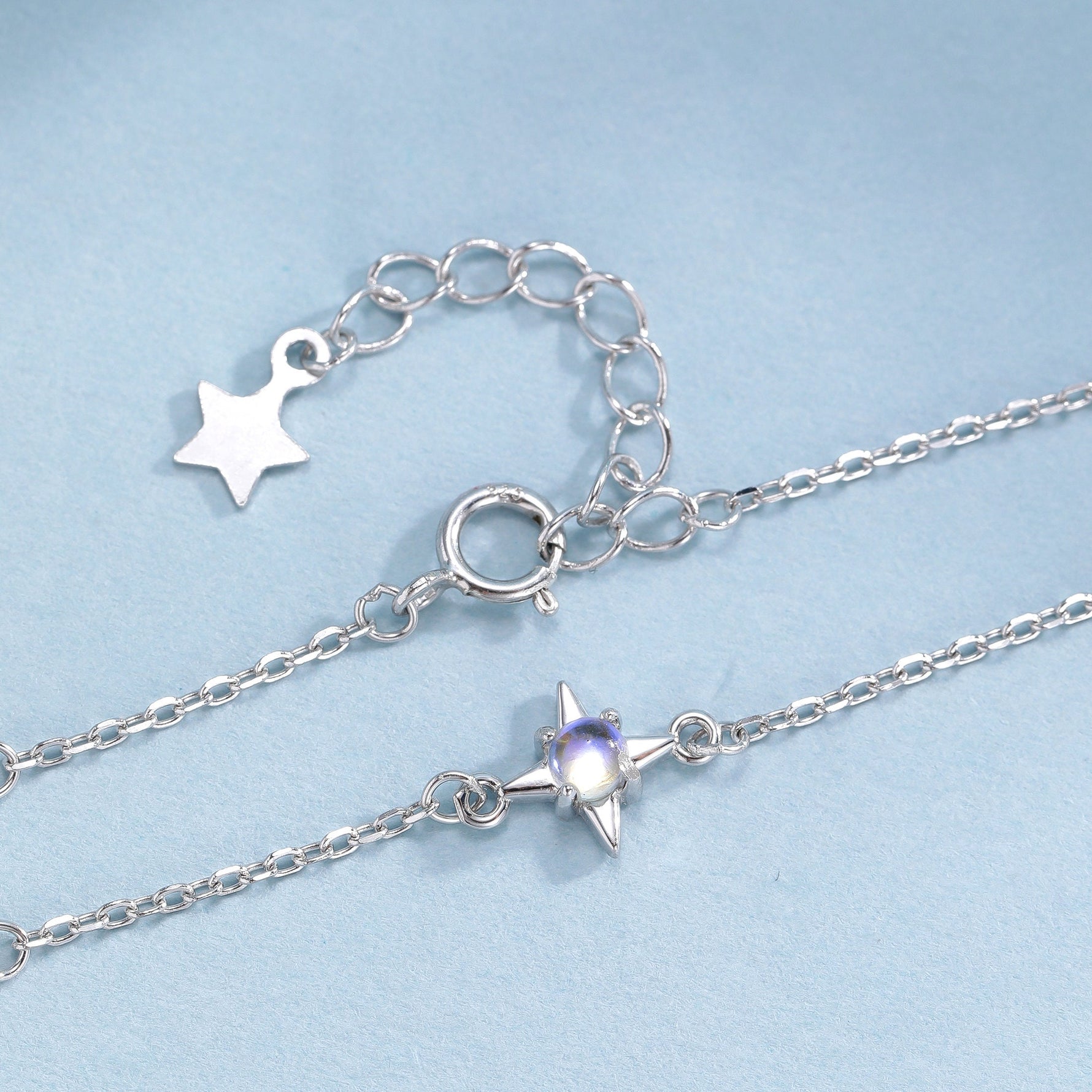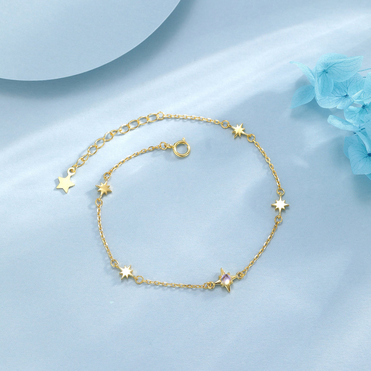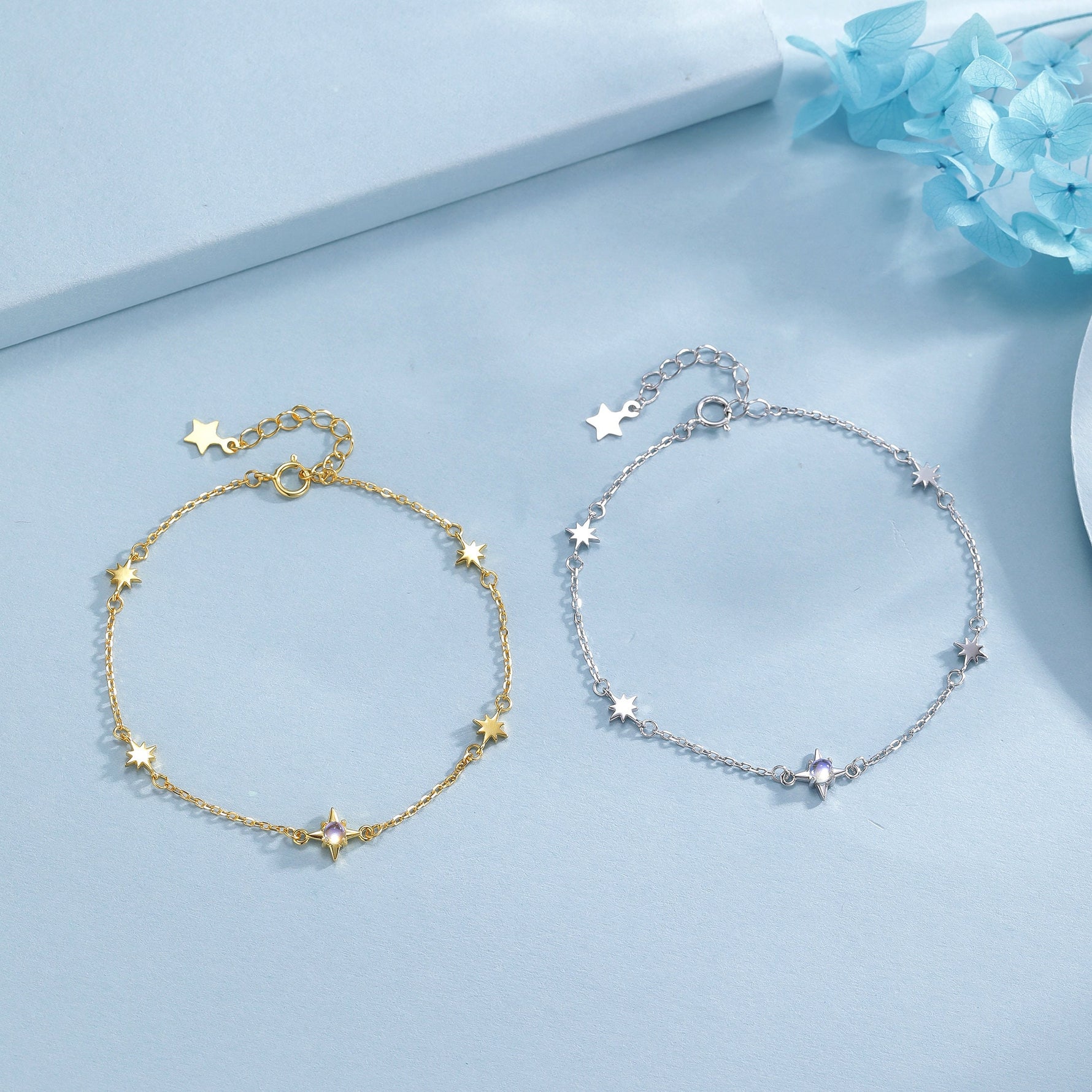 Moonstone Starburst Bracelet in Sterling Silver, Silver or Gold, Dainty Star Motif Bracelet, Starburst Bracelet