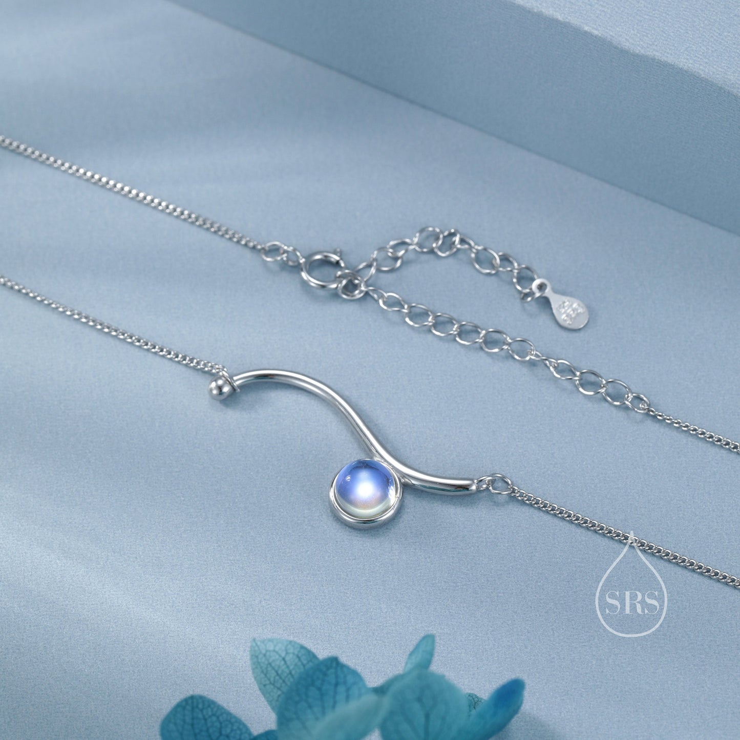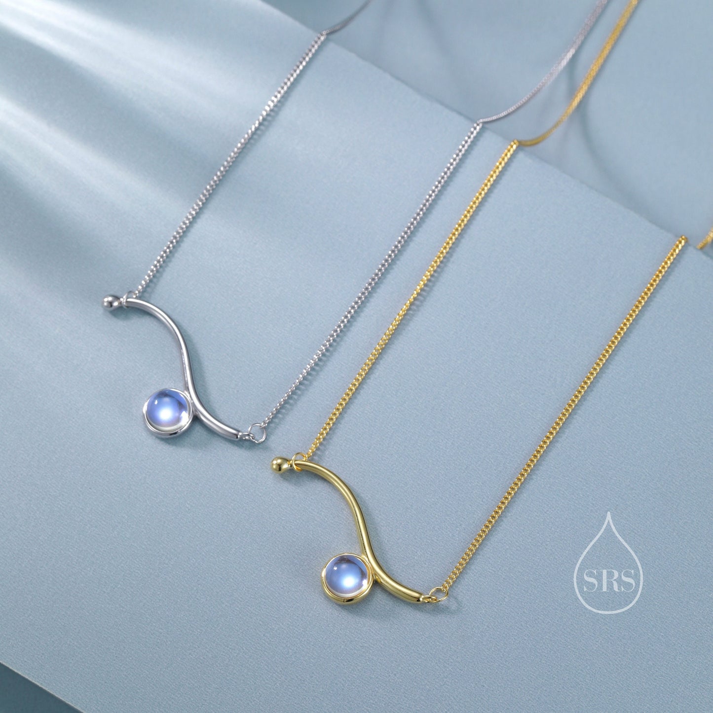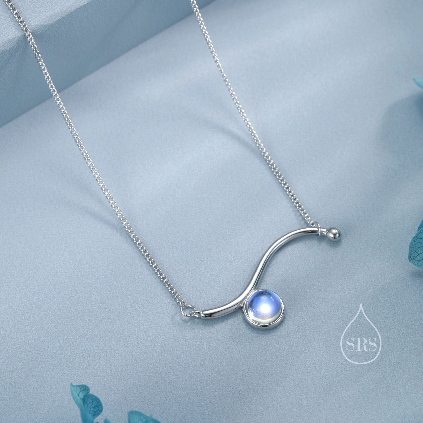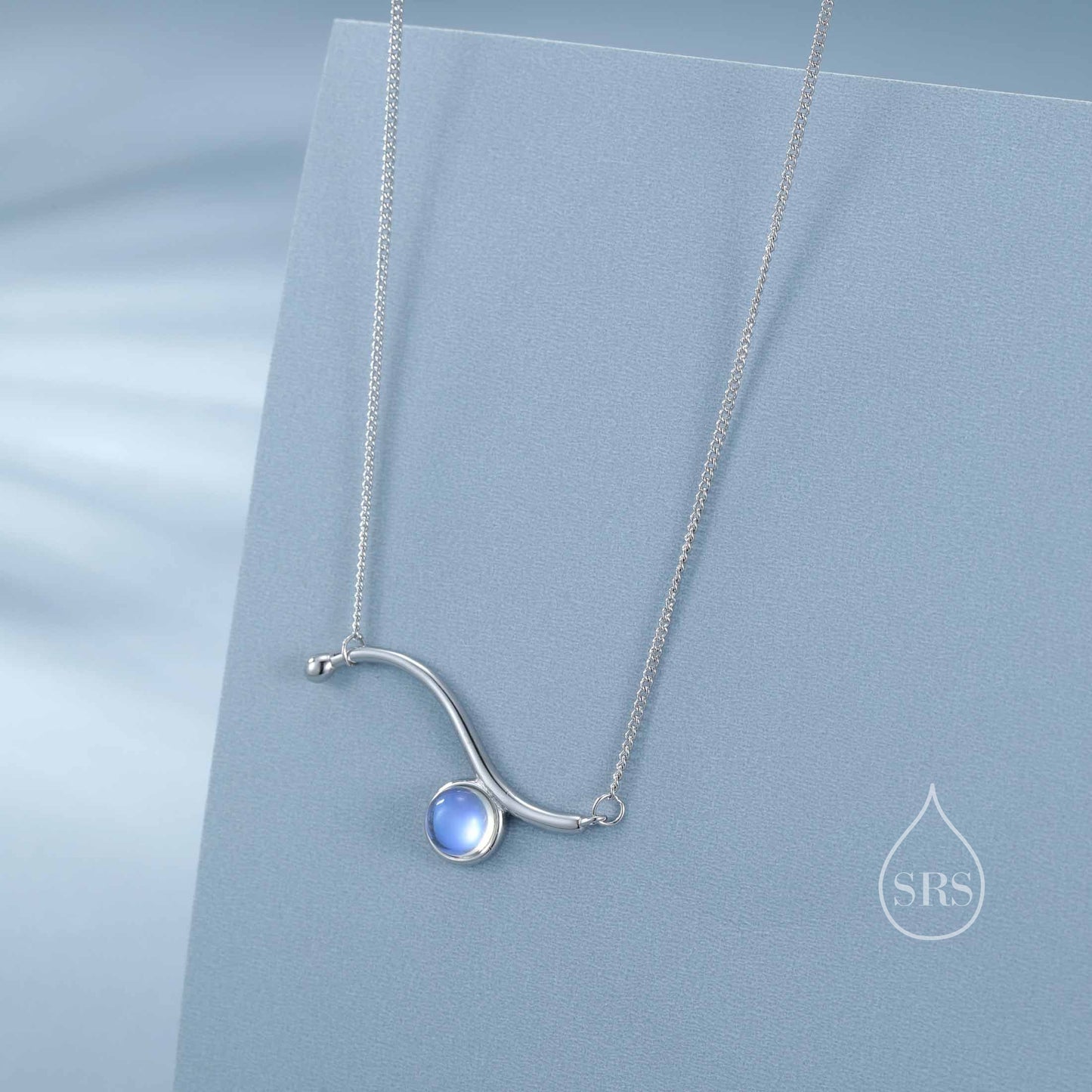 Moonstone Wave Pendant Necklace in Sterling Silver, Silver or Gold, Moonstone Wave Necklace, Lab Moonstone Necklace