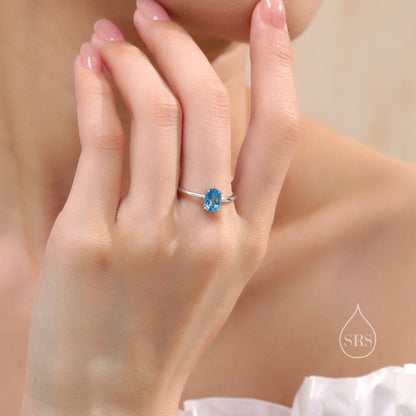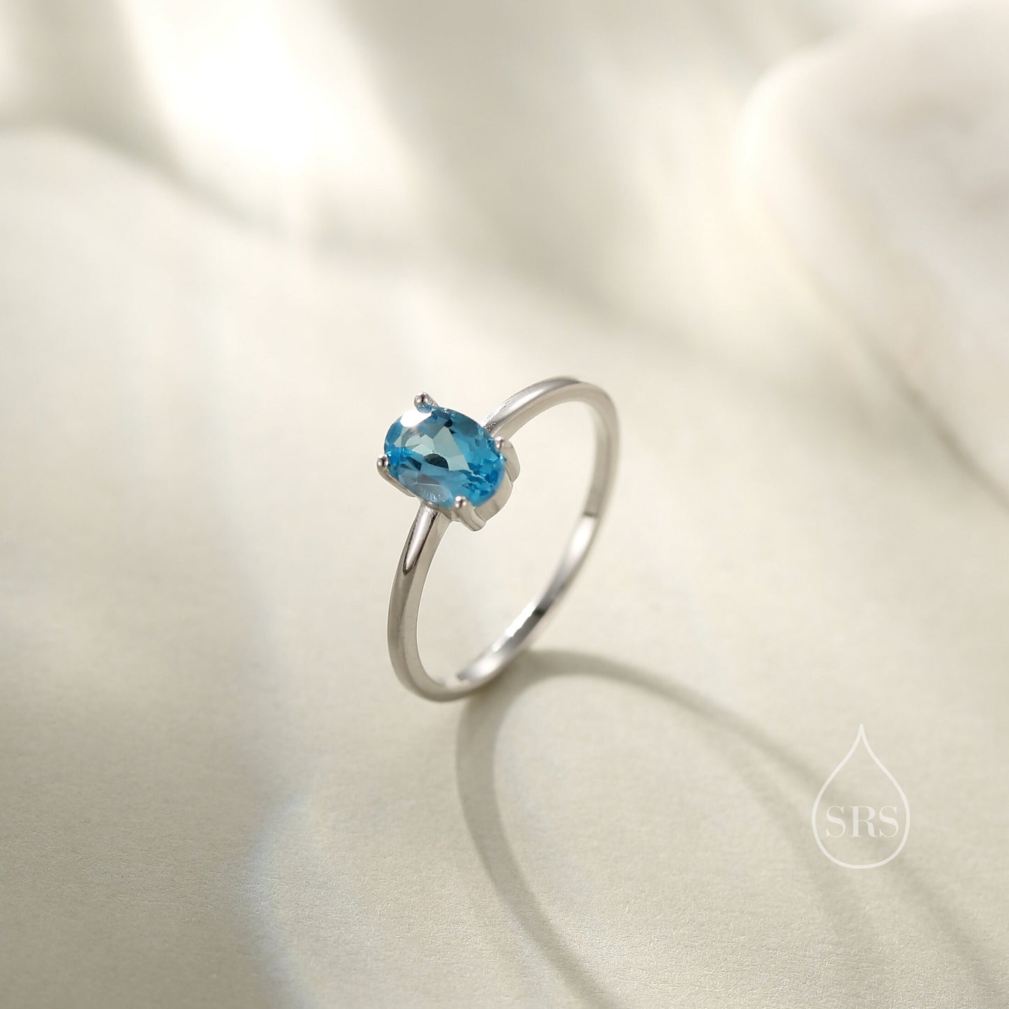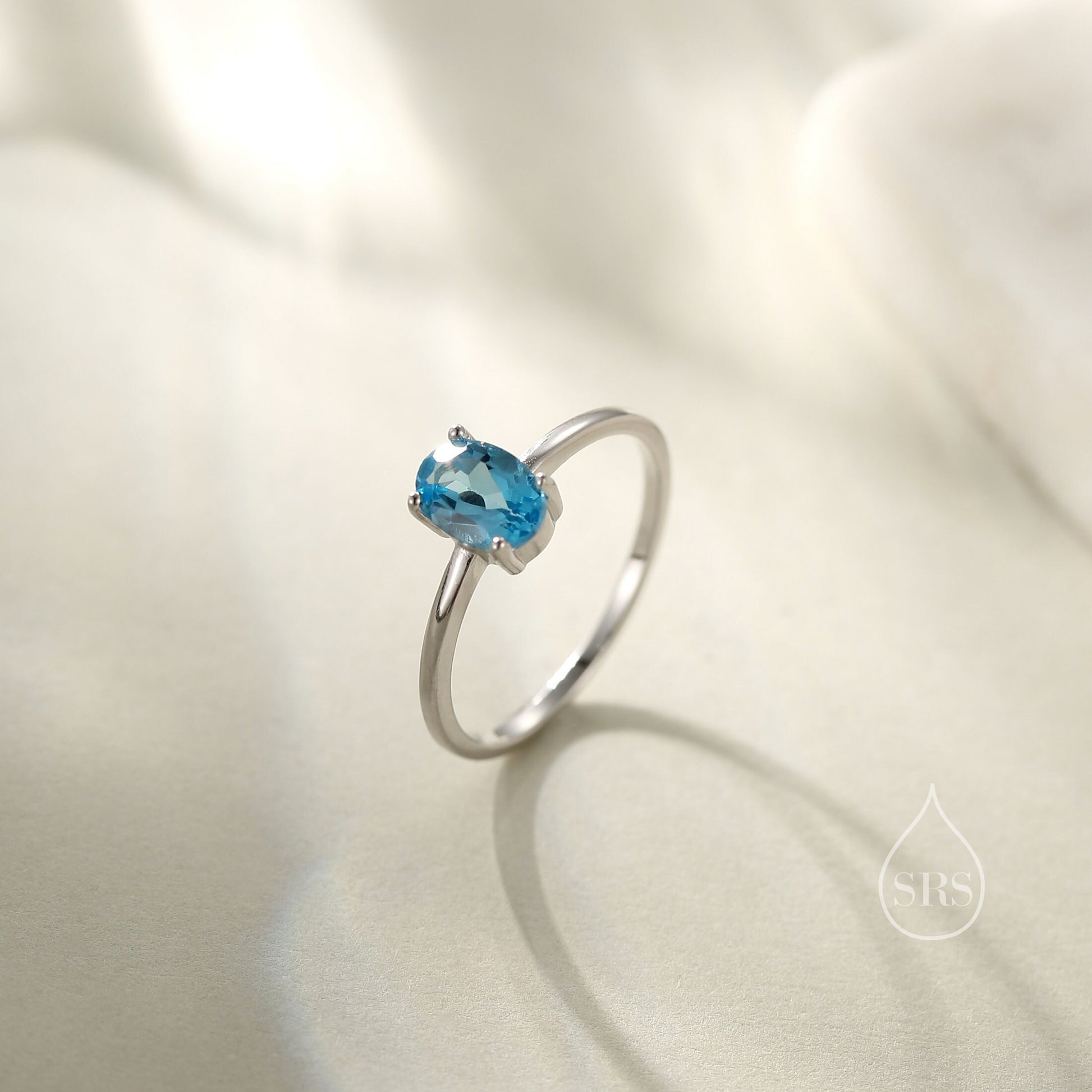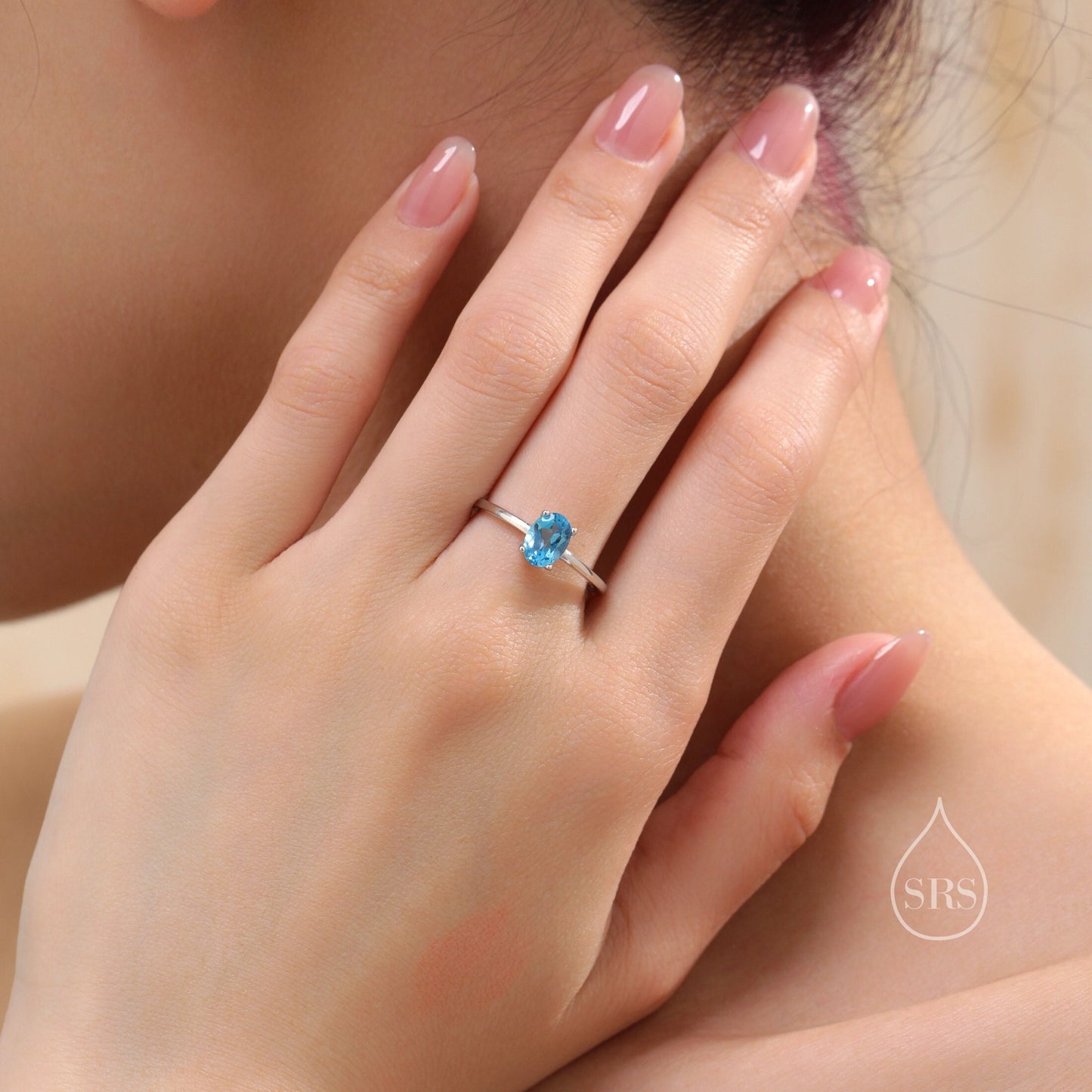 Natural 1 Carat Swiss Blue Topaz Oval Ring in Sterling Silver, 5x7mm, Prong Set Oval Cut, US Size 5 6 7 8, Genuine 1ct Blue Topaz Ring